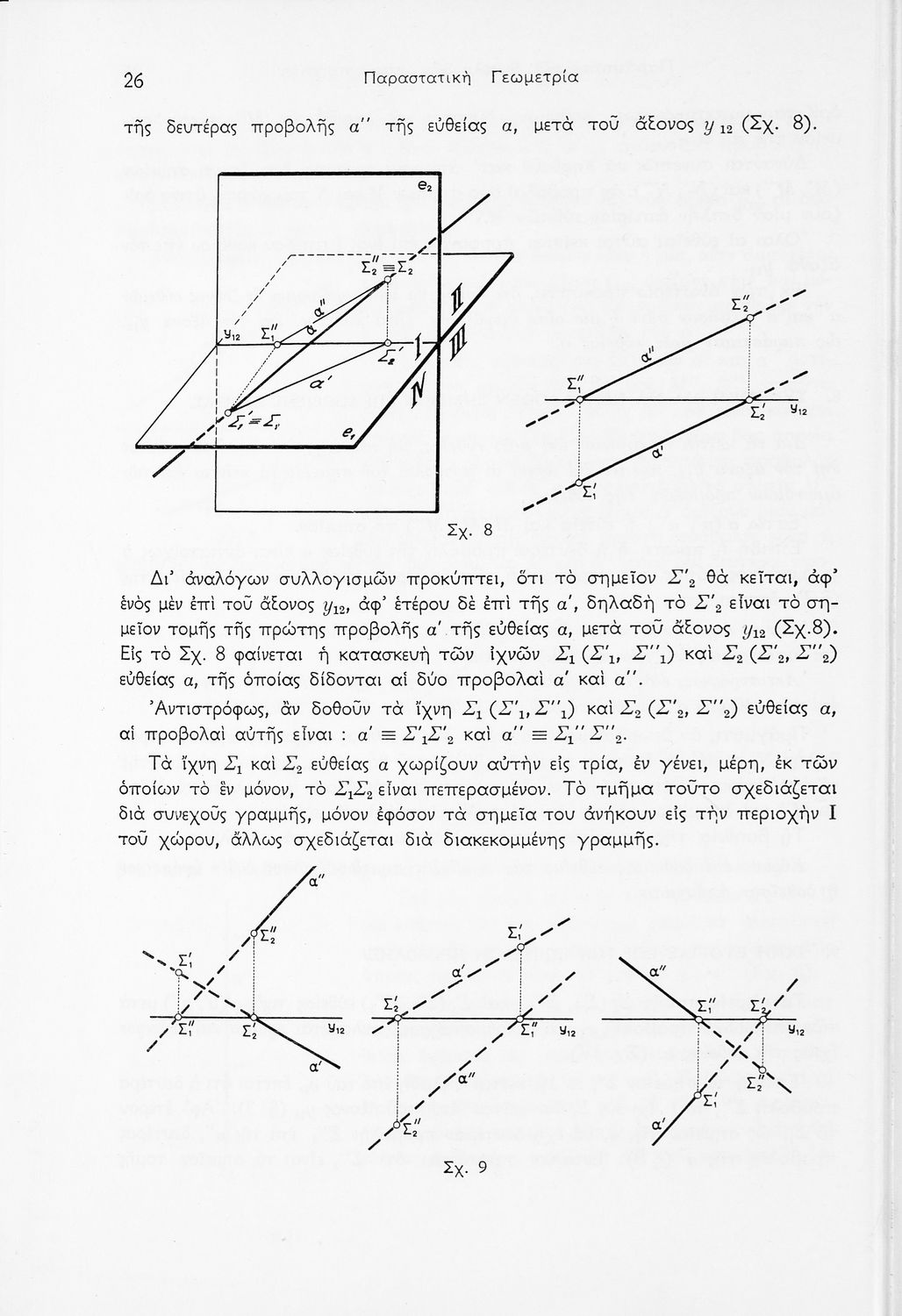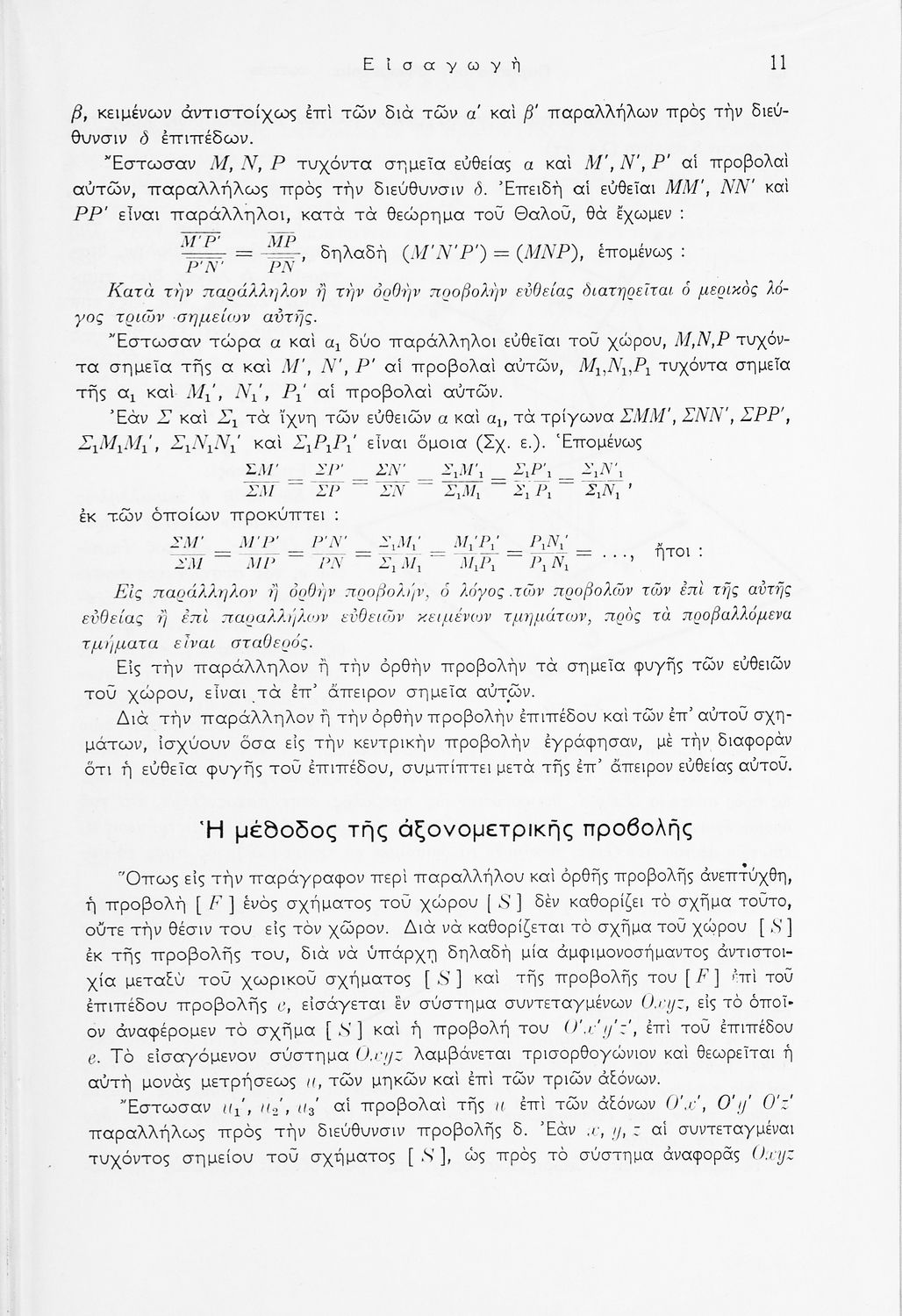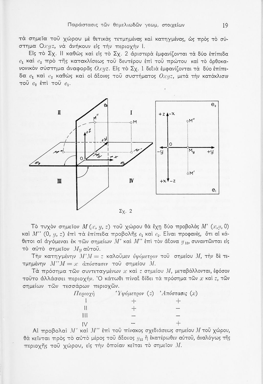 Παρουσίαση περιεχομένου: Σχολικό εγχειρίδιο Παραστατικής Γεωμετρίας για τις Ε΄ και ΣΤ΄ Γυμνασίου χωρισμένο σε θεωρία και ασκήσεις που περιλαμβάνει παράρτημα με έγχρωμα διαγράμματα σε Χ, Ψ, Ζ άξονα. Ο συγγραφέας ήταν καθηγητής στο ΕΜΠ. Φέρει το σύμβολο της δικτατορίας.