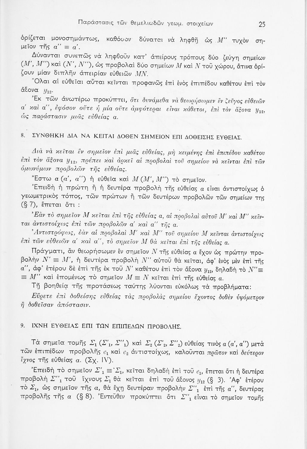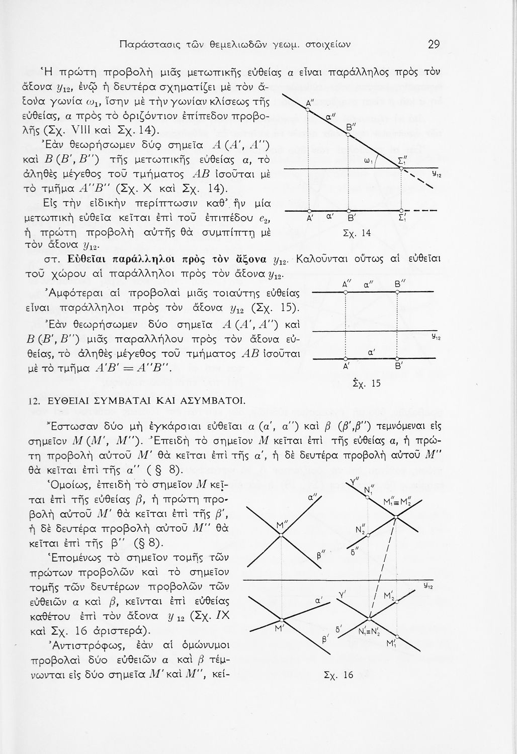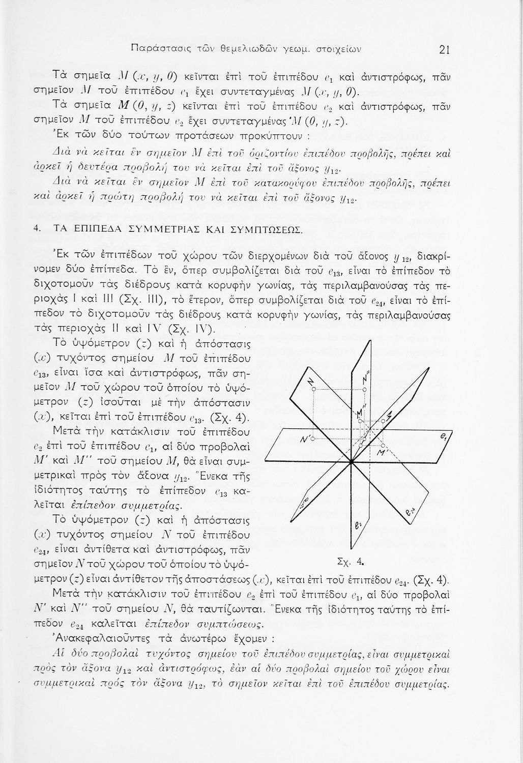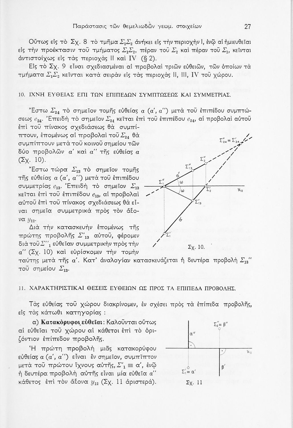 Παρουσίαση περιεχομένου: Σχολικό εγχειρίδιο Παραστατικής Γεωμετρίας για τις Ε΄ και ΣΤ΄ Γυμνασίου χωρισμένο σε θεωρία και ασκήσεις που περιλαμβάνει παράρτημα με έγχρωμα διαγράμματα σε Χ, Ψ, Ζ άξονα. Ο συγγραφέας ήταν καθηγητής στο ΕΜΠ. Φέρει το σύμβολο της δικτατορίας.