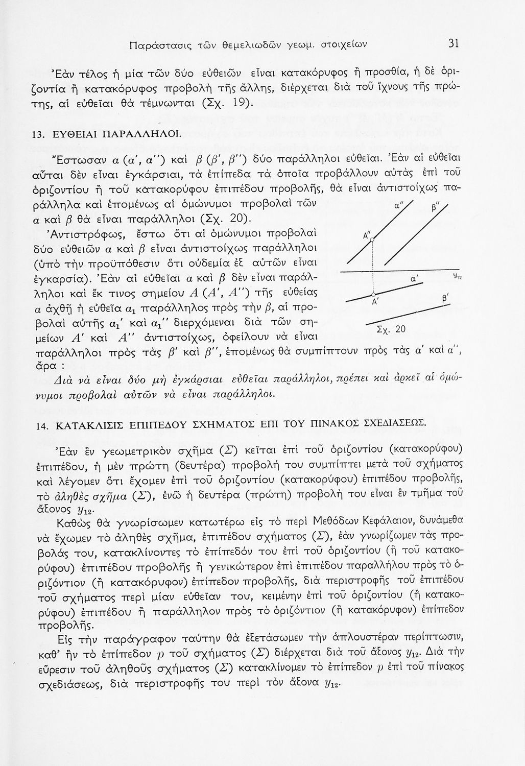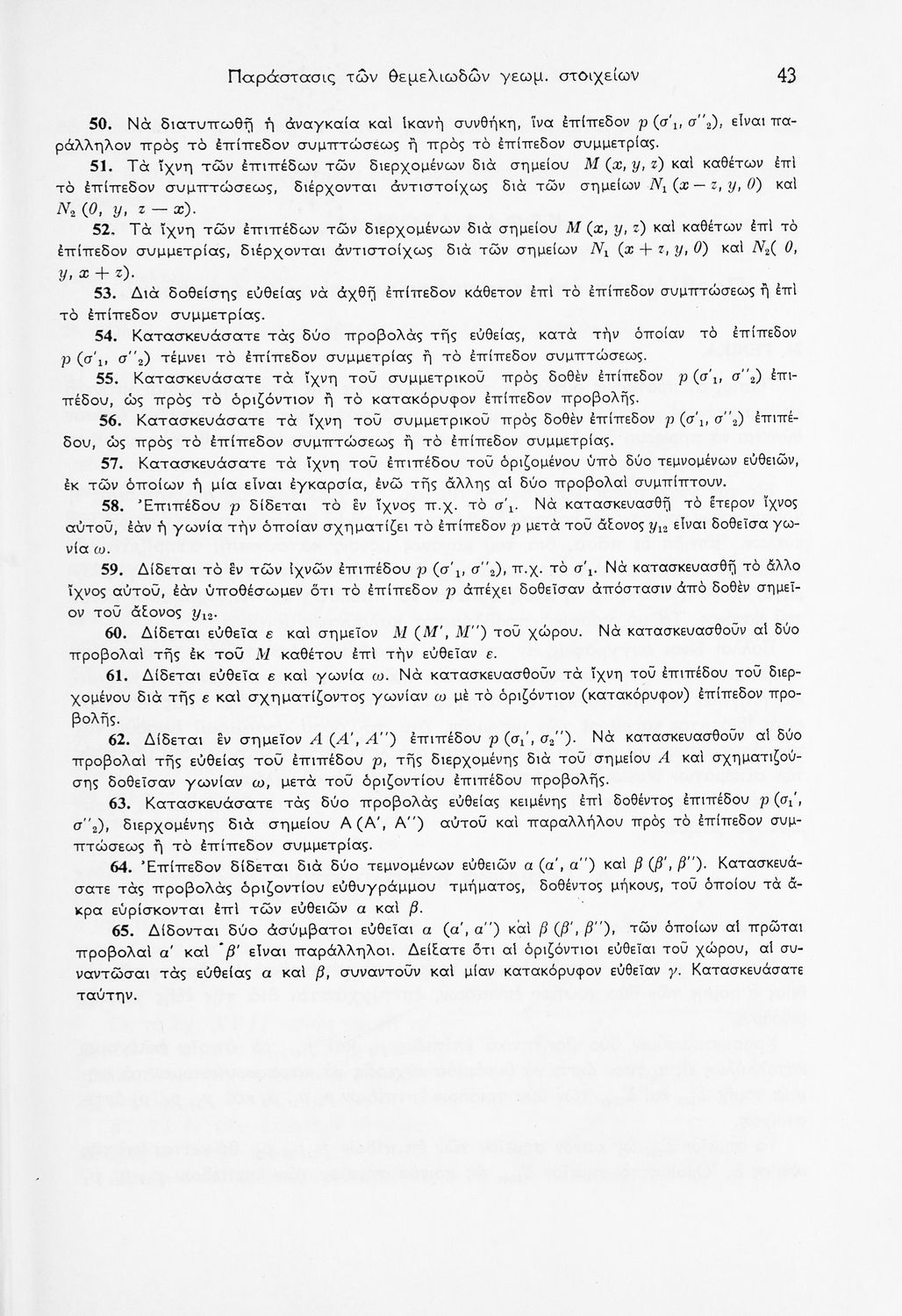 Σχολικό εγχειρίδιο Παραστατικής Γεωμετρίας για τις Ε΄ και ΣΤ΄ Γυμνασίου χωρισμένο σε θεωρία και ασκήσεις που περιλαμβάνει παράρτημα με έγχρωμα διαγράμματα σε Χ, Ψ, Ζ άξονα. Ο συγγραφέας ήταν καθηγητής στο ΕΜΠ. Φέρει το σύμβολο της δικτατορίας.