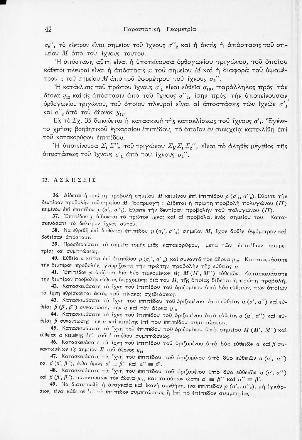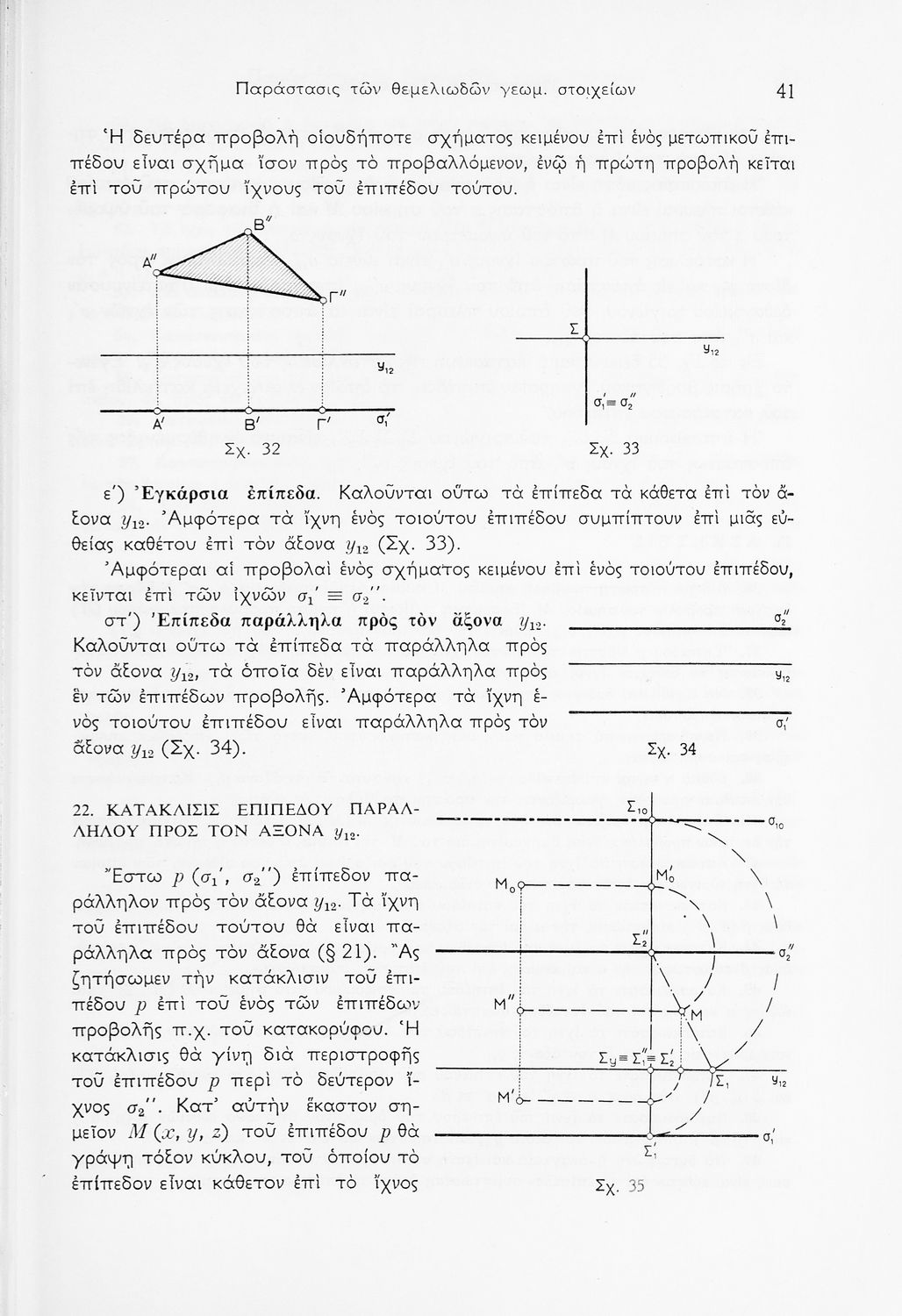 Παρουσίαση περιεχομένου: Σχολικό εγχειρίδιο Παραστατικής Γεωμετρίας για τις Ε΄ και ΣΤ΄ Γυμνασίου χωρισμένο σε θεωρία και ασκήσεις που περιλαμβάνει παράρτημα με έγχρωμα διαγράμματα σε Χ, Ψ, Ζ άξονα. Ο συγγραφέας ήταν καθηγητής στο ΕΜΠ. Φέρει το σύμβολο της δικτατορίας.