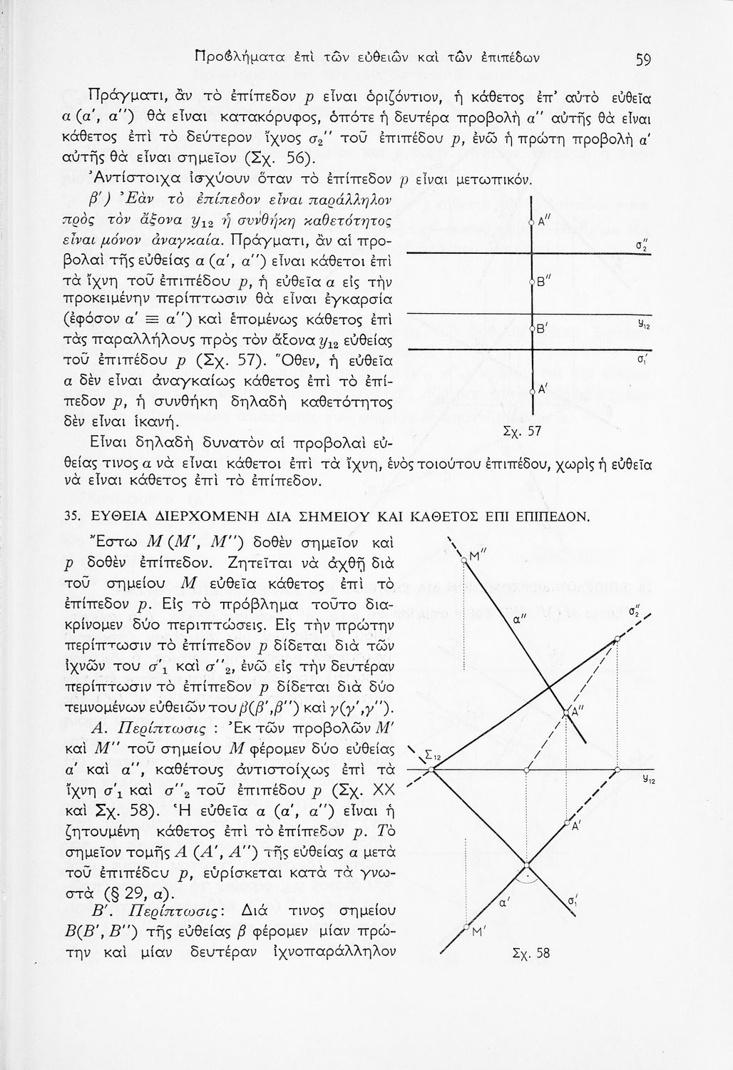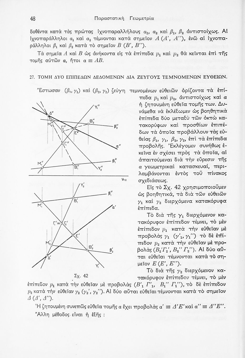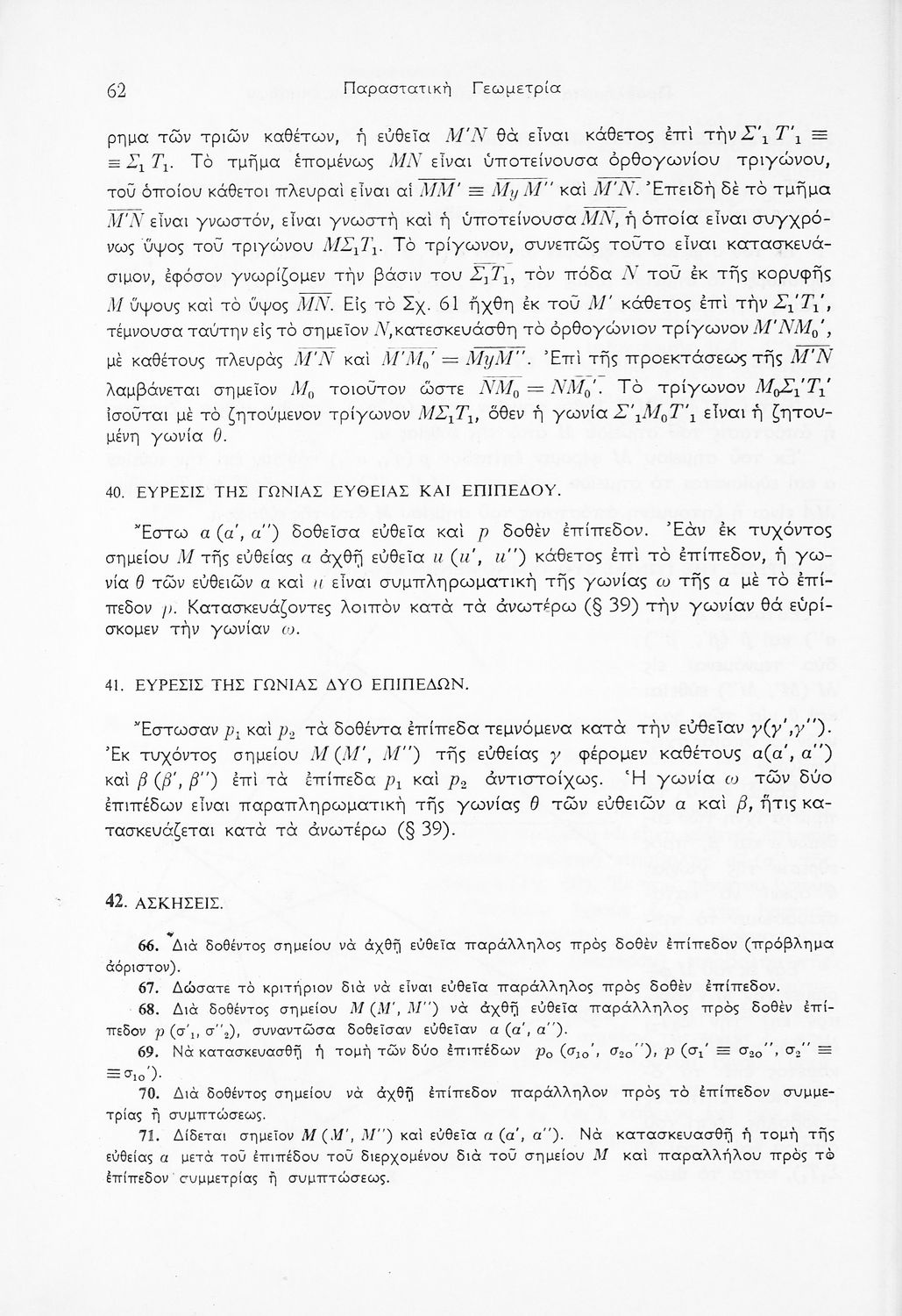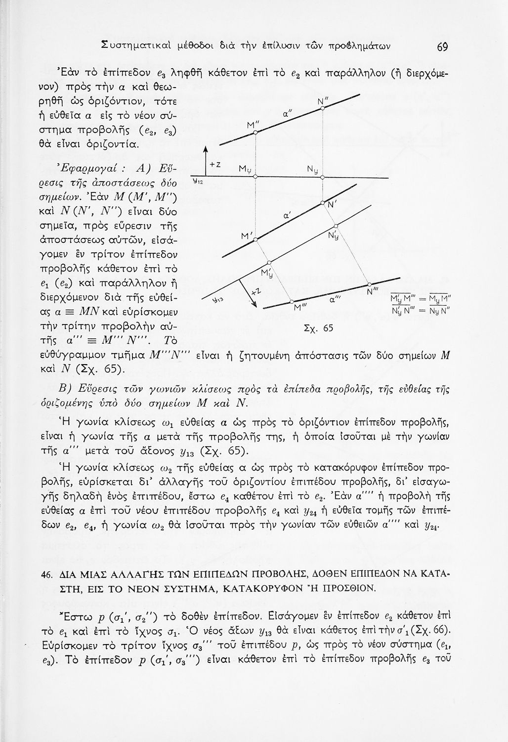 Παρουσίαση περιεχομένου: Σχολικό εγχειρίδιο Παραστατικής Γεωμετρίας για τις Ε΄ και ΣΤ΄ Γυμνασίου χωρισμένο σε θεωρία και ασκήσεις που περιλαμβάνει παράρτημα με έγχρωμα διαγράμματα σε Χ, Ψ, Ζ άξονα. Ο συγγραφέας ήταν καθηγητής στο ΕΜΠ. Φέρει το σύμβολο της δικτατορίας.