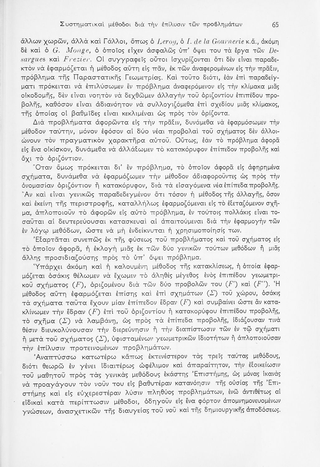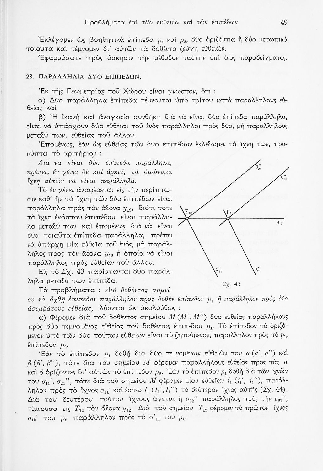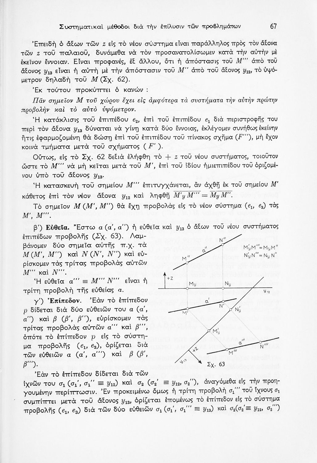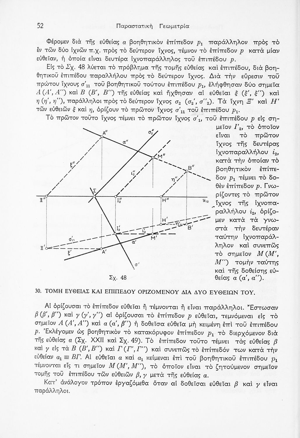 Παρουσίαση περιεχομένου: Σχολικό εγχειρίδιο Παραστατικής Γεωμετρίας για τις Ε΄ και ΣΤ΄ Γυμνασίου χωρισμένο σε θεωρία και ασκήσεις που περιλαμβάνει παράρτημα με έγχρωμα διαγράμματα σε Χ, Ψ, Ζ άξονα. Ο συγγραφέας ήταν καθηγητής στο ΕΜΠ. Φέρει το σύμβολο της δικτατορίας.