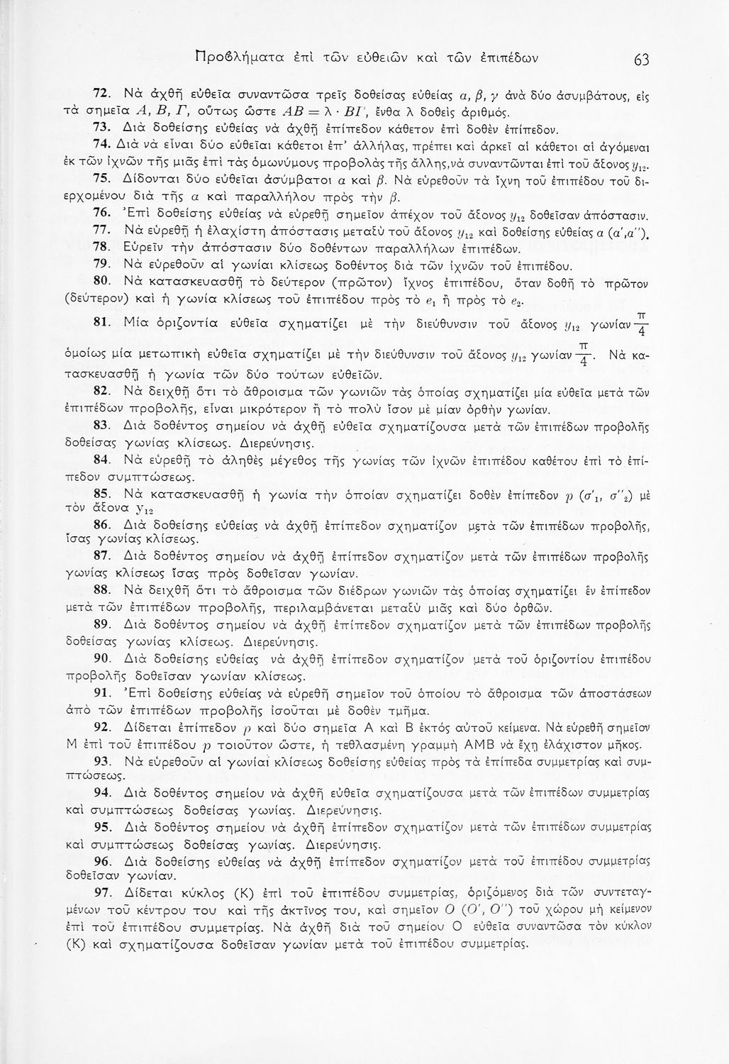 Σχολικό εγχειρίδιο Γεωμετρίας για τις Δ΄, Ε΄ και ΣΤ΄ Γυμνασίου που περιλαμβάνει αξιώματα, θεωρήματα και κατασκευές και είναι χωρισμένο σε γεωμετρία επιπέδου και γεωμετρία χώρου.