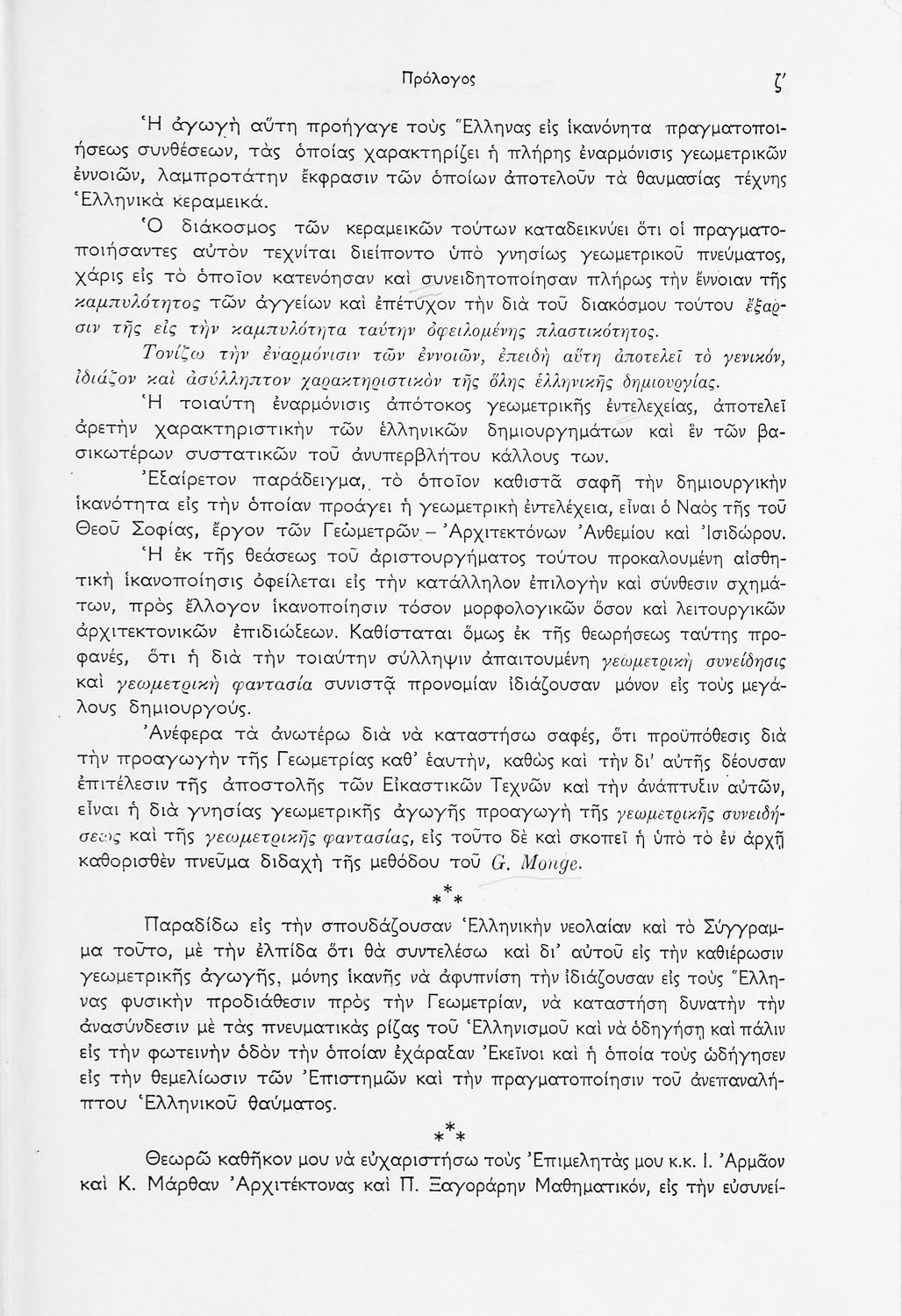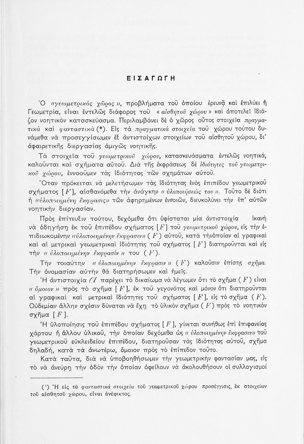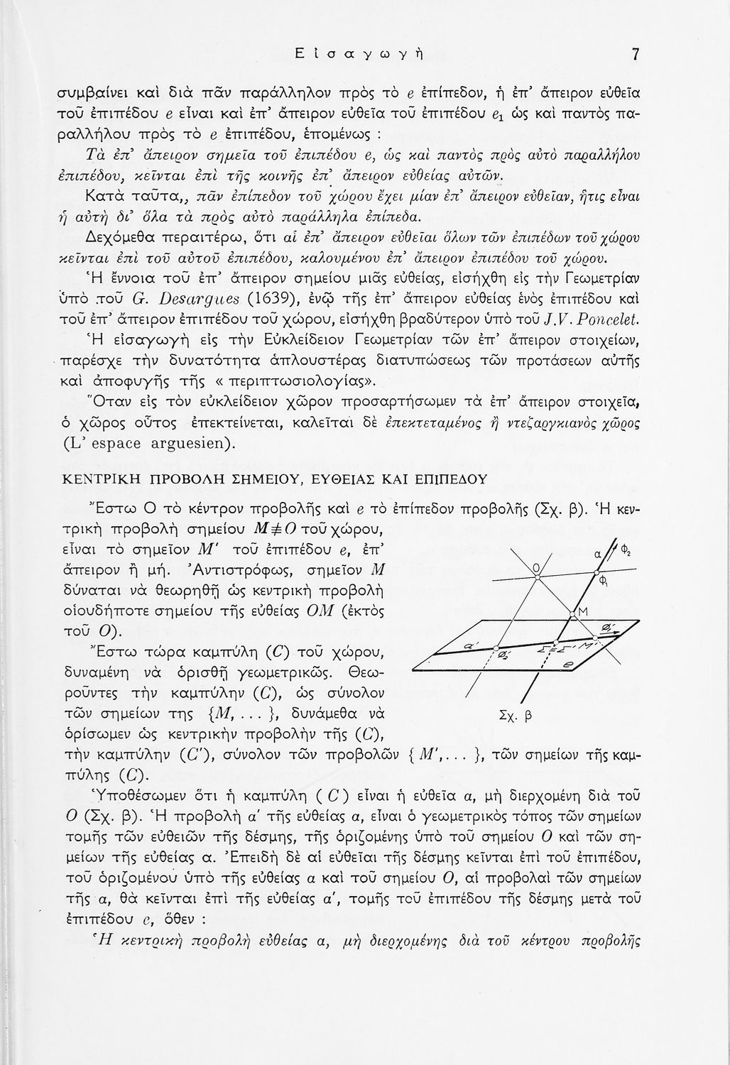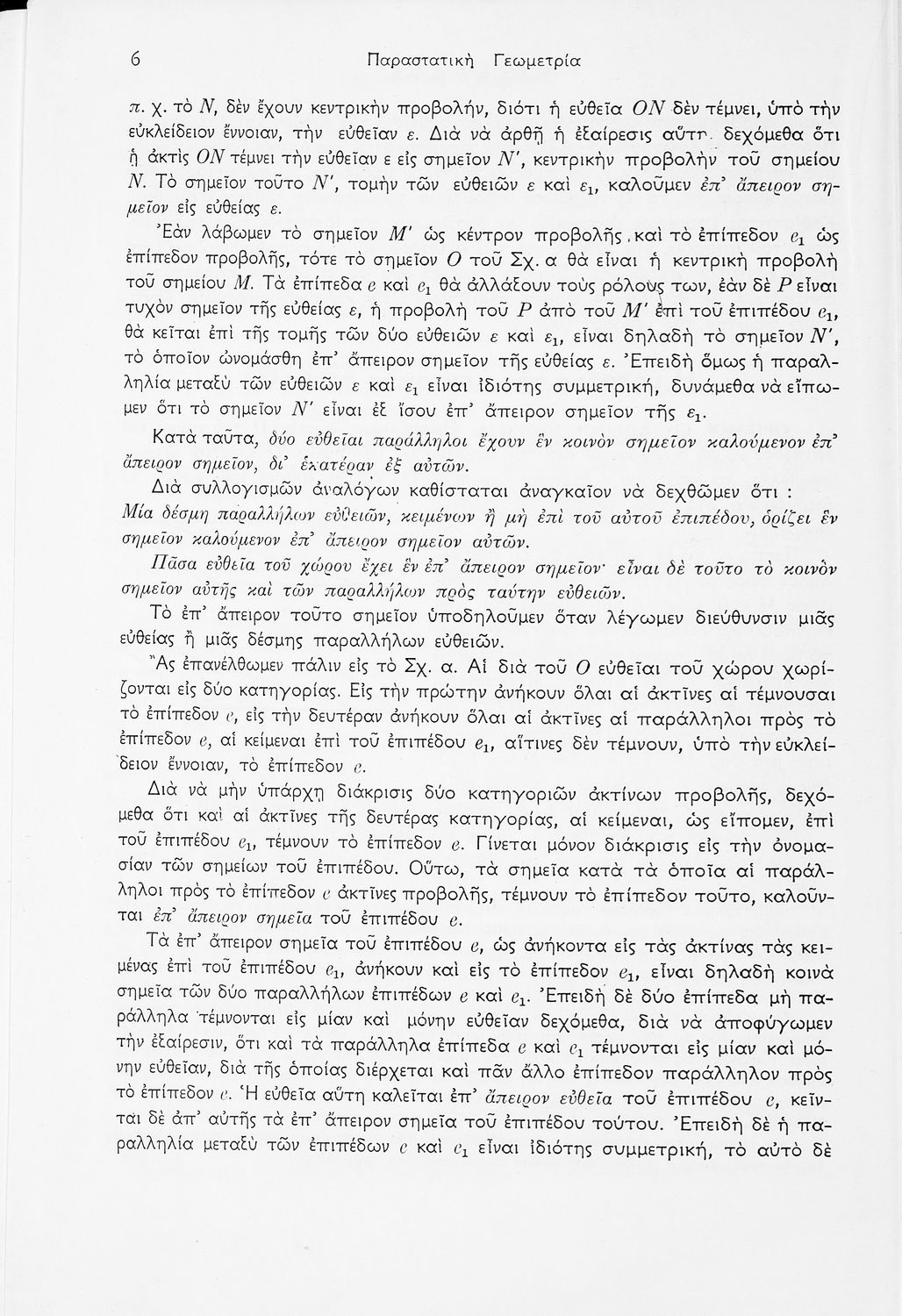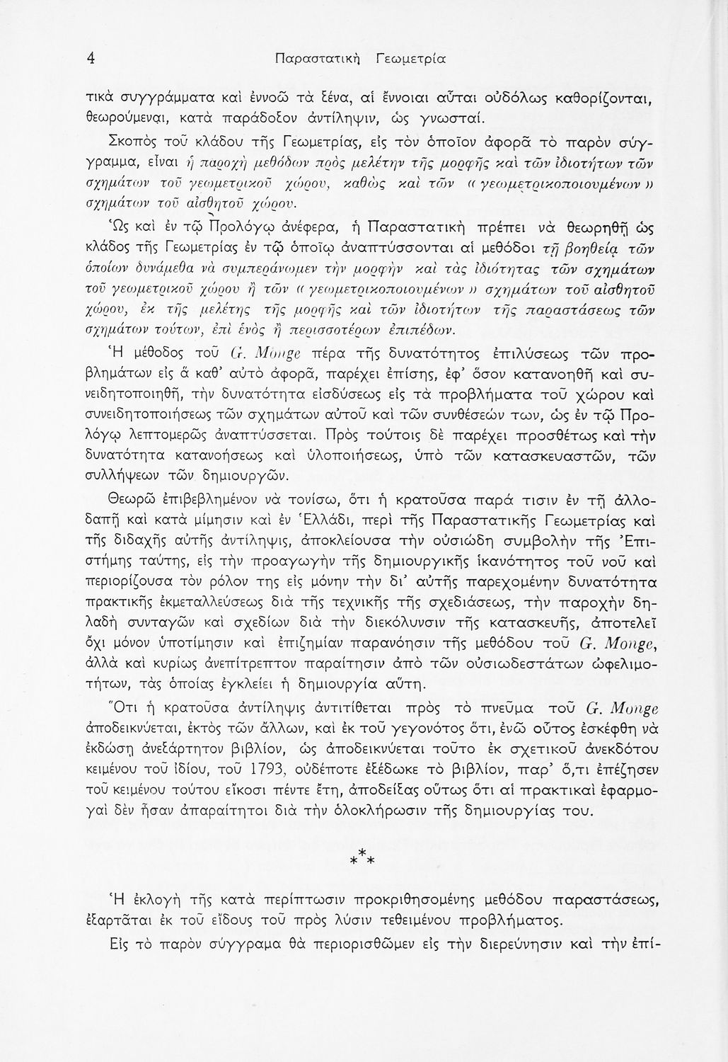 Σχολικό εγχειρίδιο Παραστατικής Γεωμετρίας για τις Ε΄ και ΣΤ΄ Γυμνασίου χωρισμένο σε θεωρία και ασκήσεις που περιλαμβάνει παράρτημα με έγχρωμα διαγράμματα σε Χ, Ψ, Ζ άξονα. Ο συγγραφέας ήταν καθηγητής στο ΕΜΠ. Φέρει το σύμβολο της δικτατορίας.