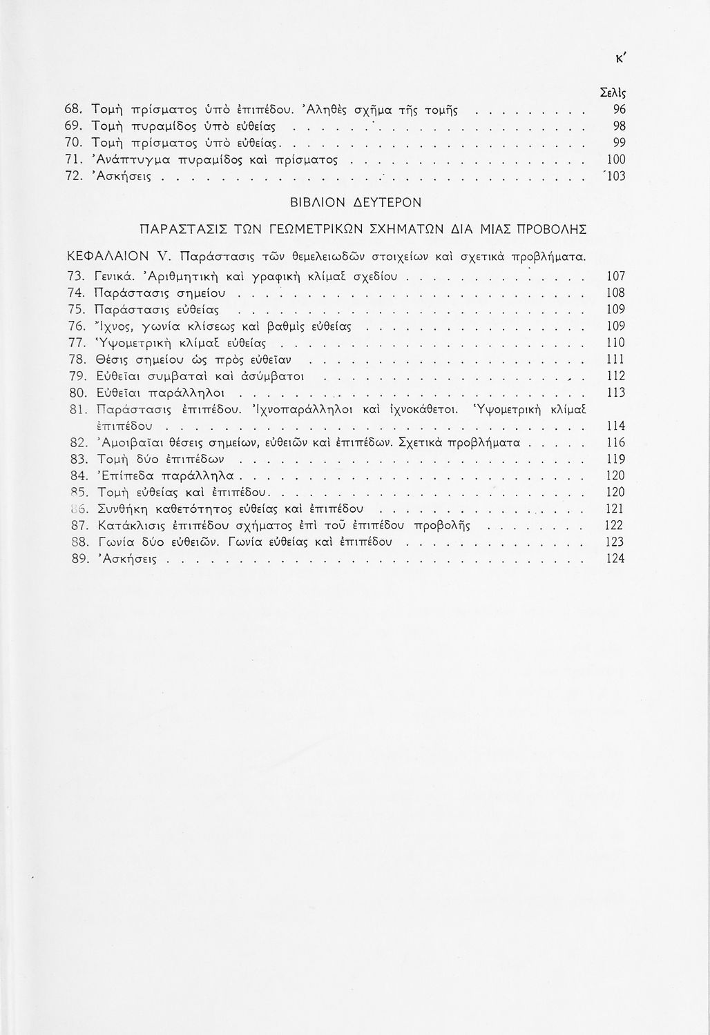 Σχολικό εγχειρίδιο Γεωμετρίας για τις Δ΄, Ε΄ και ΣΤ΄ Γυμνασίου που περιλαμβάνει αξιώματα, θεωρήματα και κατασκευές και είναι χωρισμένο σε γεωμετρία επιπέδου και γεωμετρία χώρου.