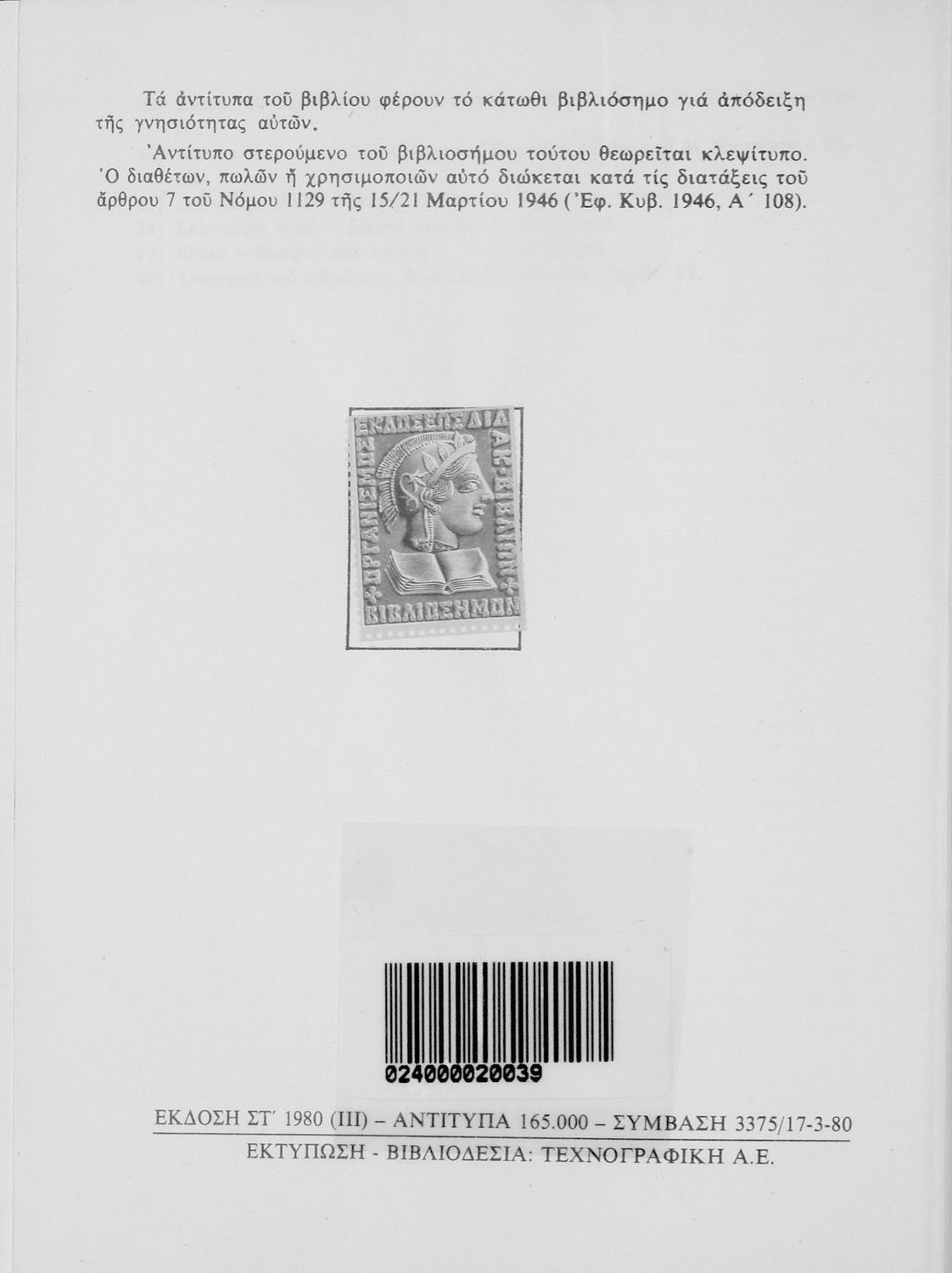 Εκδότης: Οργανισμός Εκδόσεως Διδακτικών Βιβλίων Έτος έκδοσης: 1980 Τόπος έκδοσης: Αθήνα Έκδοση: 6η Υπουργική απόφαση / Σύμβαση: 3375/17-3-1980 Έτος έγκρισης: 1980 |