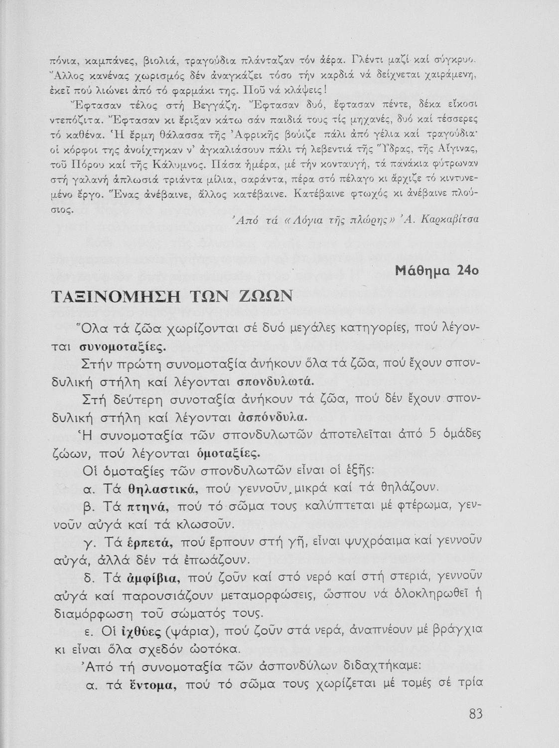 Σχολικό εγχειρίδιο της ΣΤ΄ Δημοτικού για το μάθημα της Φυσικής Ιστορίας στο Δημοτικό. Περιέχει πληροφορίες για την ζωολογία και τη ανθρωπολογία. Το βιβλίο έχει εικόνες, οι οποίες διευκολύνουν τη διδασκαλία. Ο λόγος των κειμένων είναι απλός και κατανοητός για τους μαθητές.