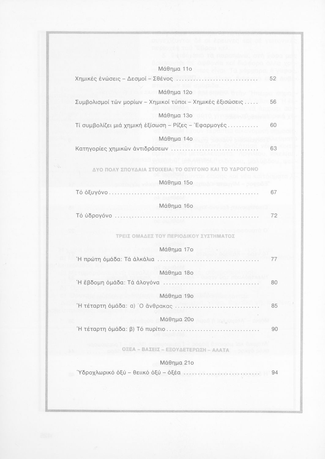 Παρουσίαση περιεχομένου: Σχολικό εγχειρίδιο Χημείας Β΄ Γυμνασίου που περιγράφει τη δομή των μορίων και των ατόμων, τις χημικές ενώσεις και εξισώσεις, και τις ομάδες του περιοδικού συστήματος. Περιέχει και στοιχεία ορυκτολογίας.