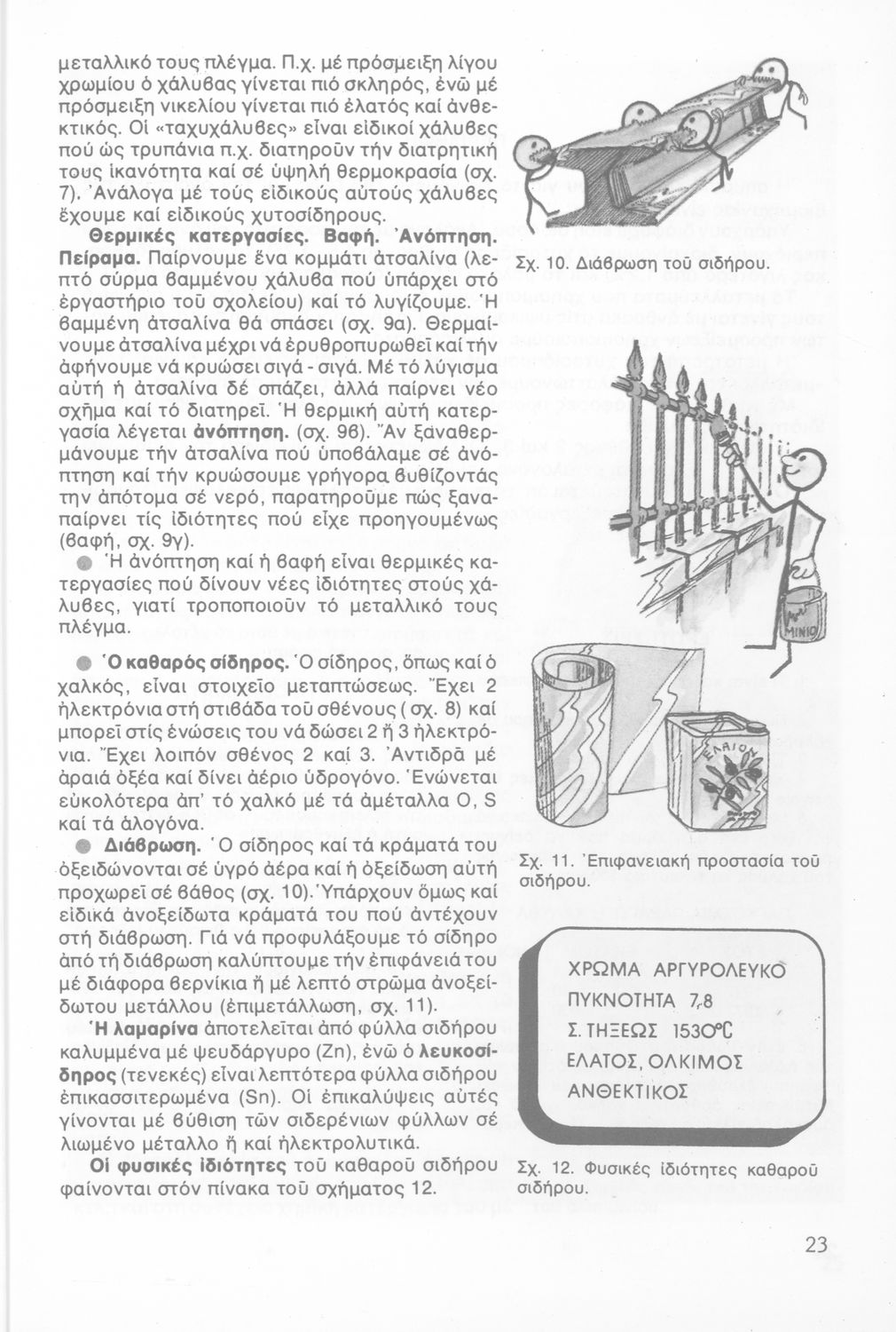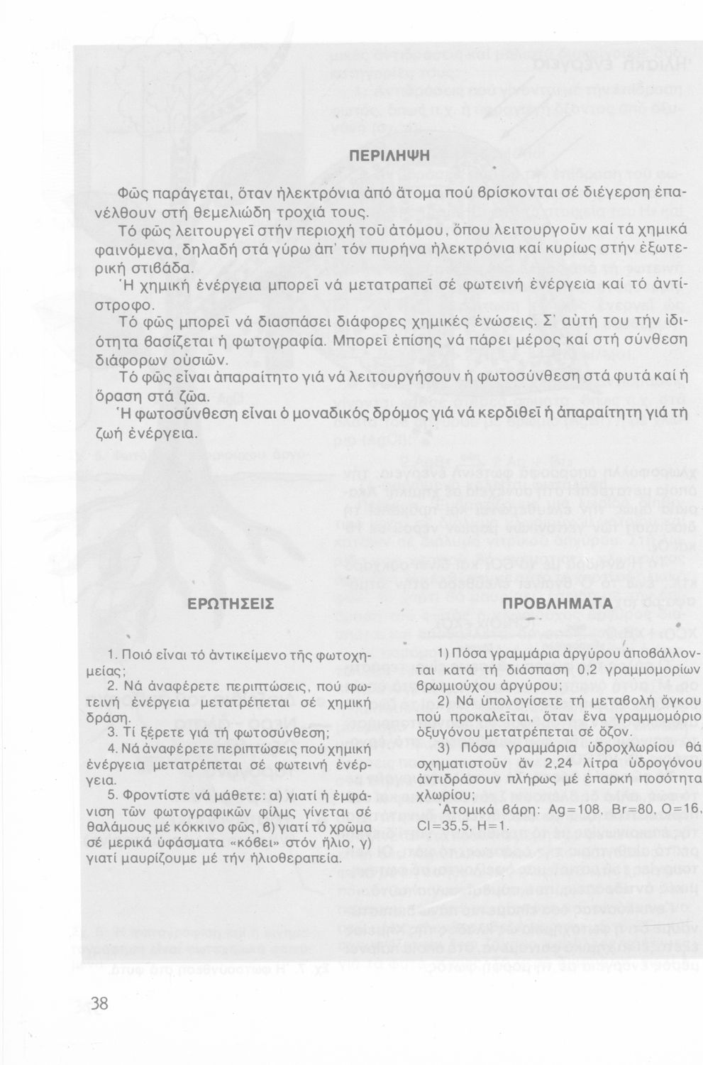 Σχολικό εγχειρίδιο Χημείας Γ΄ Γυμνασίου στο οποίο περιγράφονται τα είδη της χημικής ενέργειας (θερμοχημεία, ηλεκτροχημεία), προσδιορίζονται στοιχεία και ενώσεις οργανικής χημείας, στοιχεία και ιδιότητες μετάλλων και αναλύει τον τρόπο με τον οποίο η Χημεία συμβάλλει στη σύγχρονη ζωή του ανθρώπου.