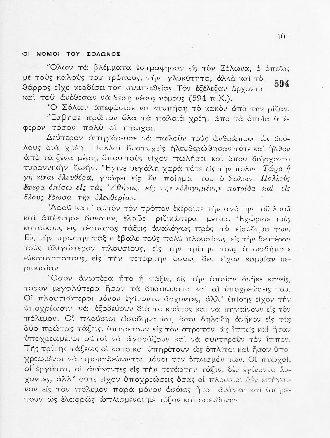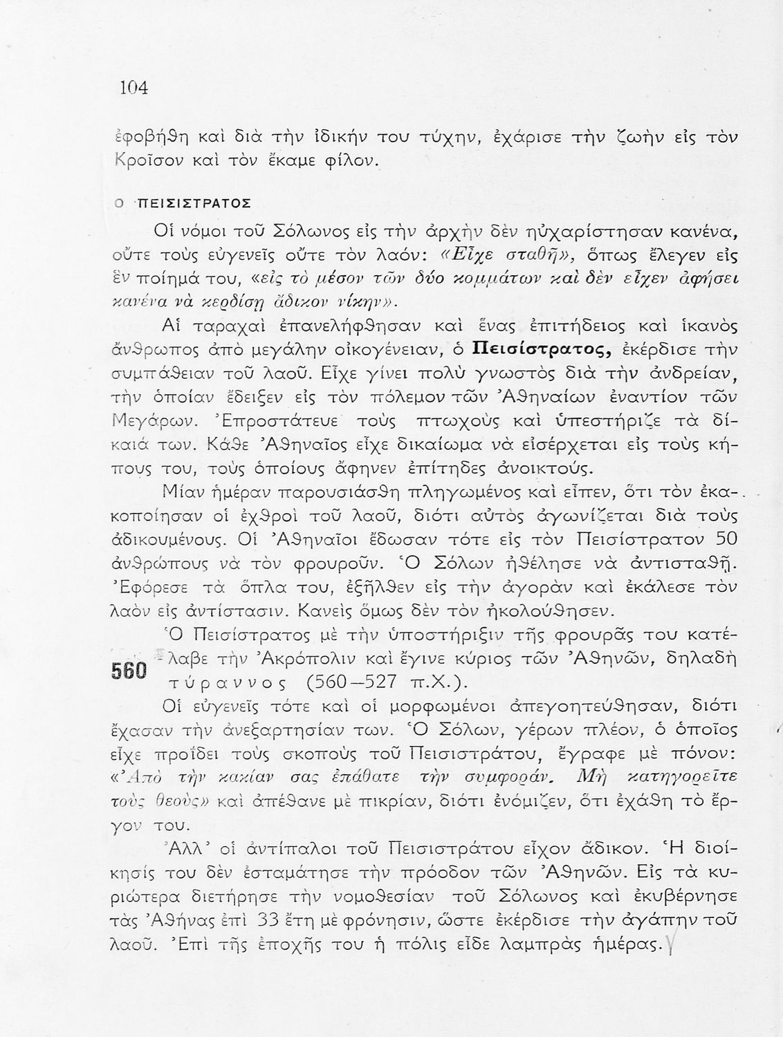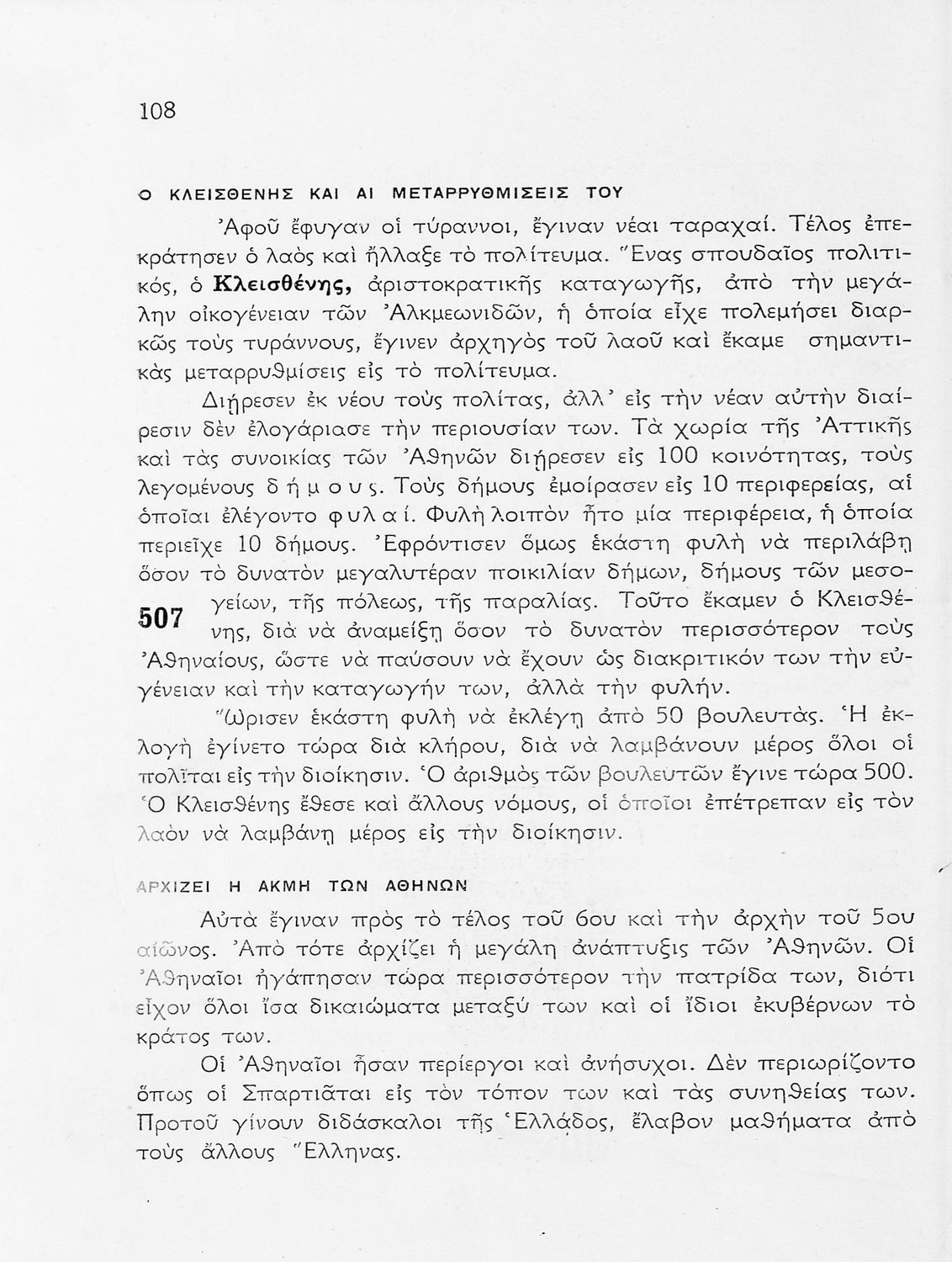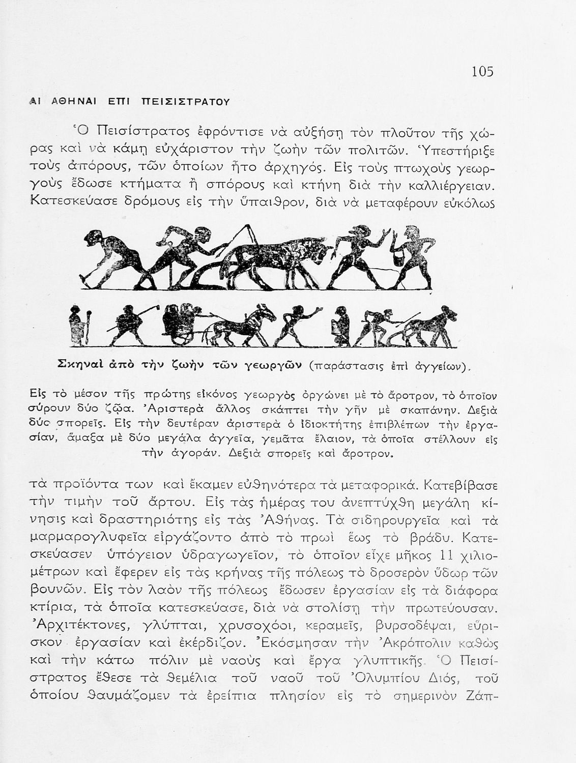 Σχολικό εγχειρίδιο Ιστορίας Α΄ Γυμνασίου και Αστικού Σχολείου που καλύπτει την περίοδο από τους προϊστορικούς χρόνους ως τις μεταρρυθμίσεις του Κλεισθένη. Περιέχει και εκτενή αναφορά στην ανάπτυξη των γραμμάτων, των τεχνών και του εμπορίου.