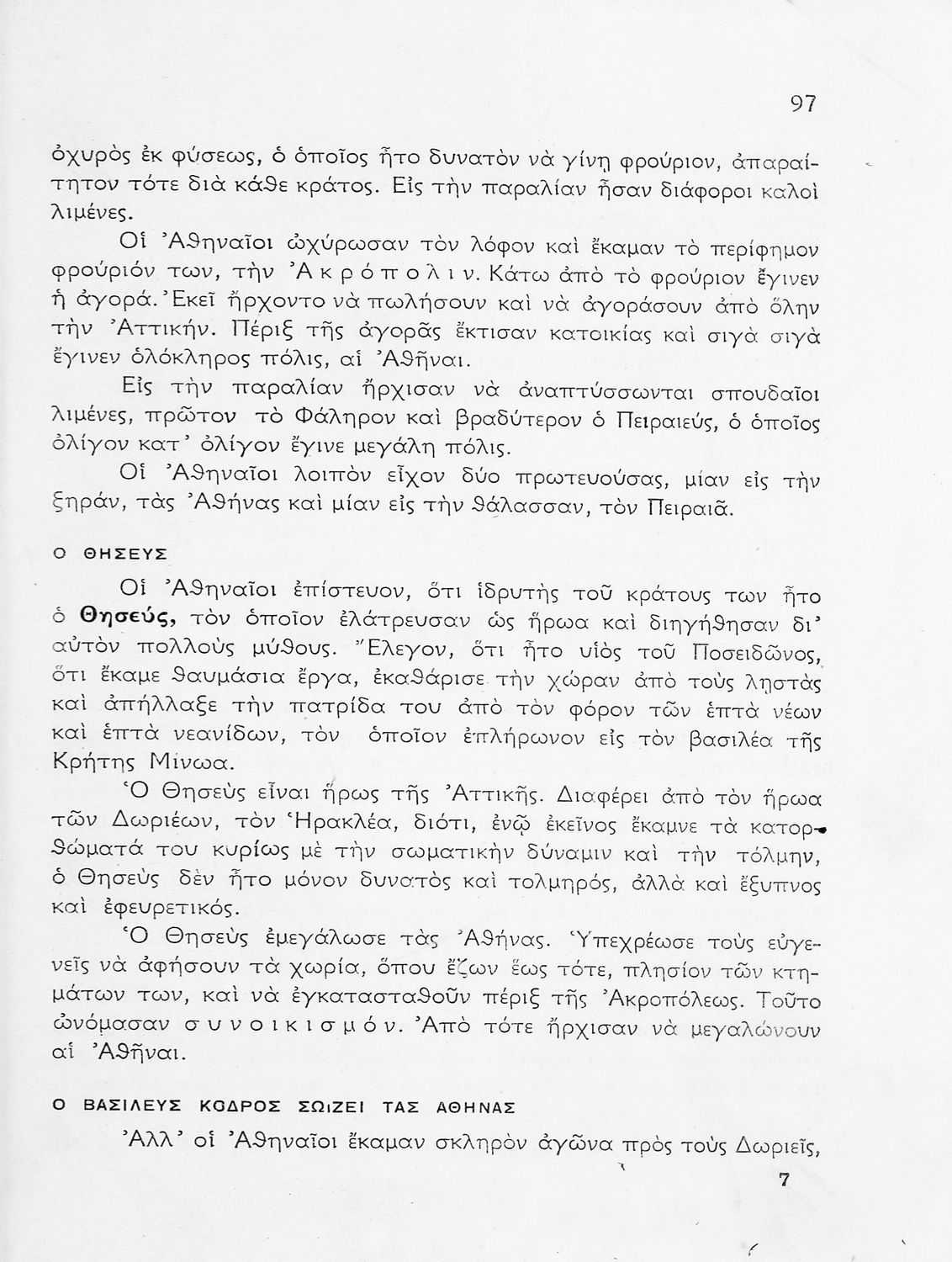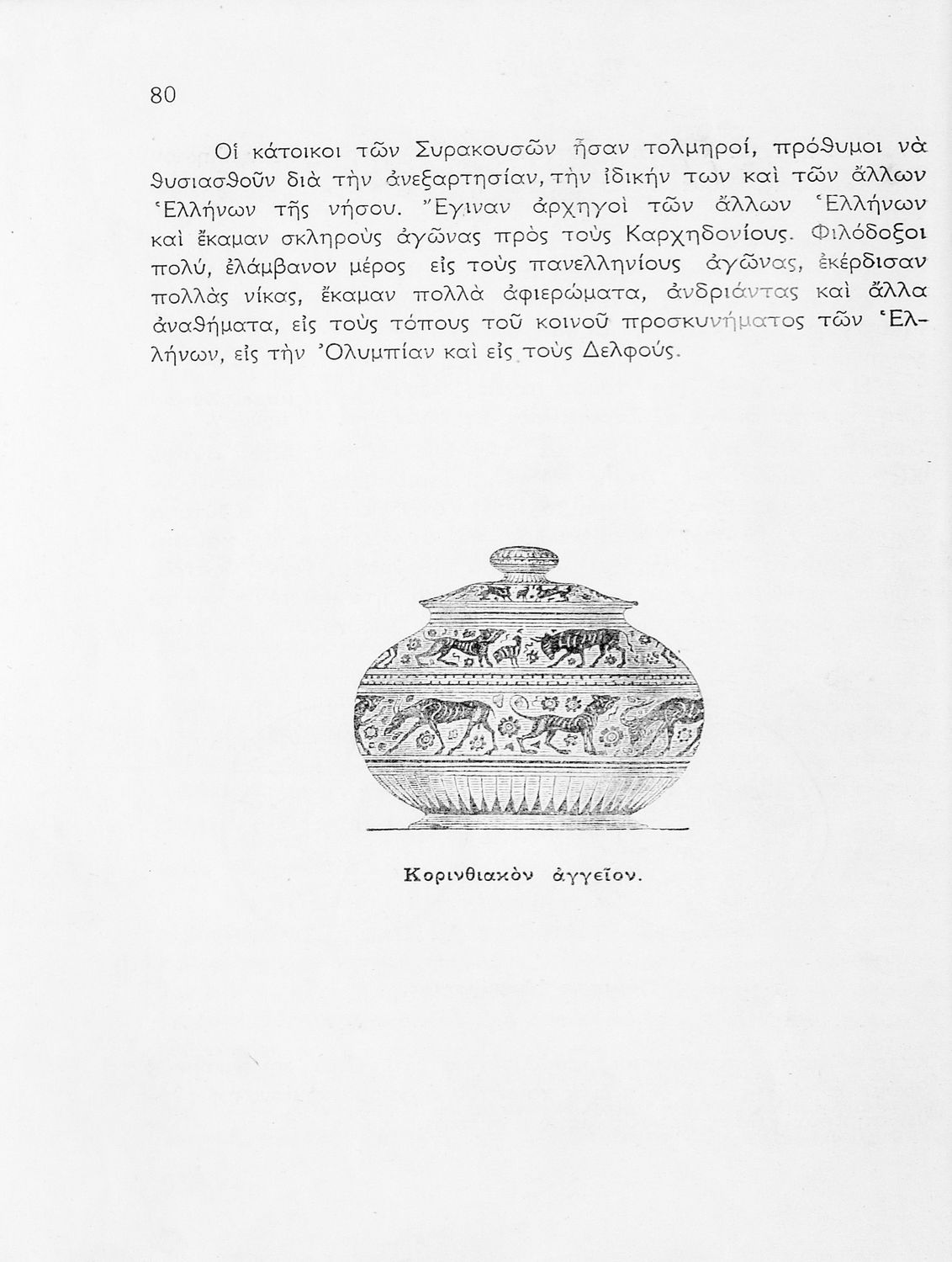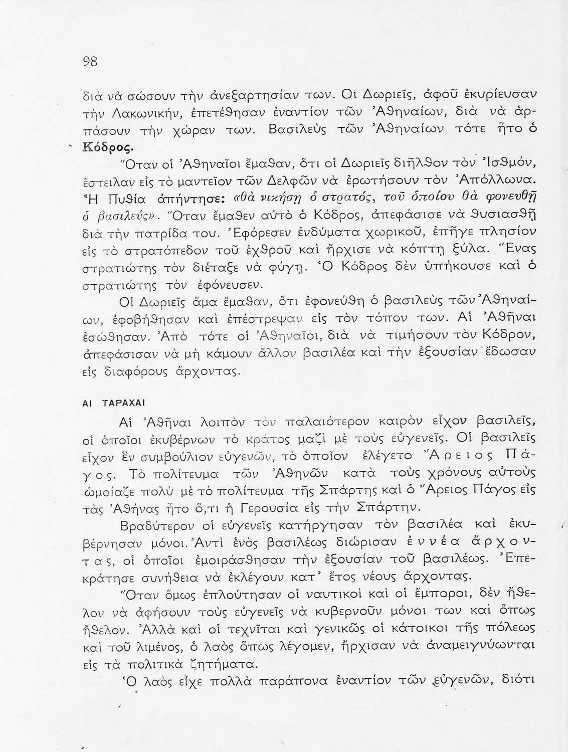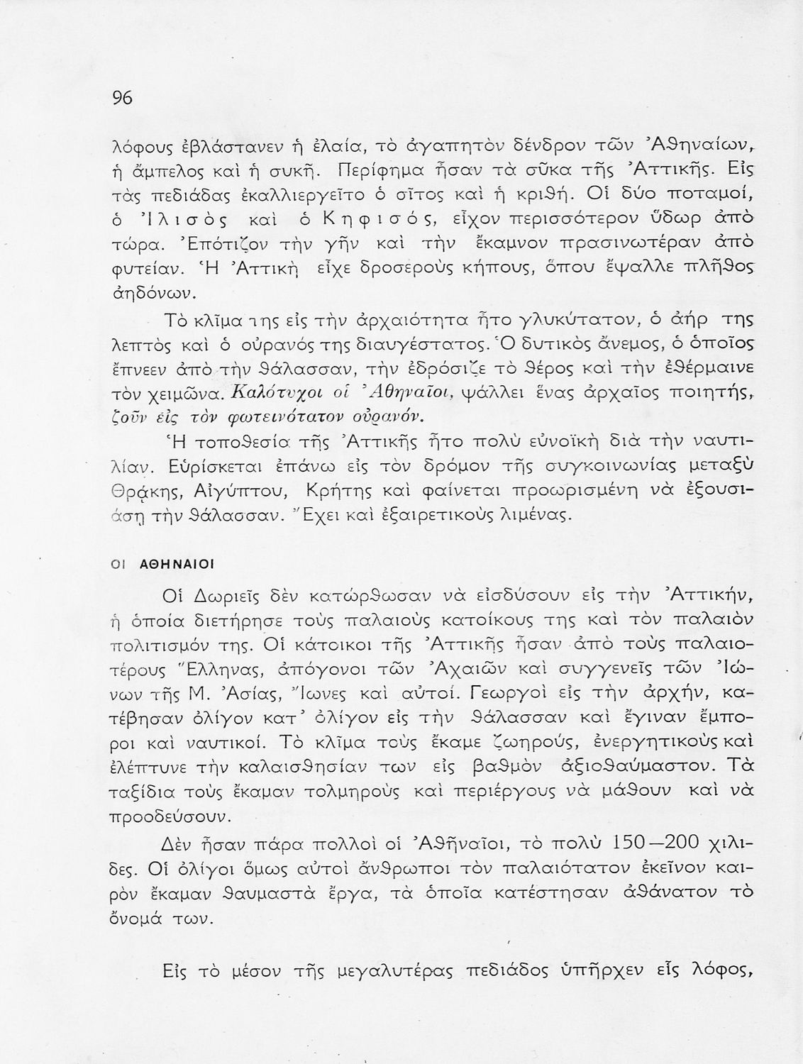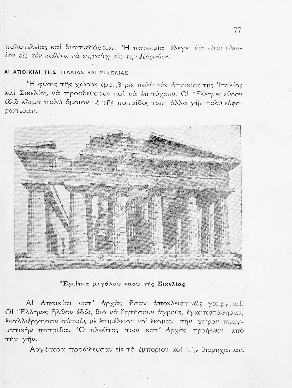 Σχολικό εγχειρίδιο Ιστορίας Α΄ Γυμνασίου και Αστικού Σχολείου που καλύπτει την περίοδο από τους προϊστορικούς χρόνους ως τις μεταρρυθμίσεις του Κλεισθένη. Περιέχει και εκτενή αναφορά στην ανάπτυξη των γραμμάτων, των τεχνών και του εμπορίου.