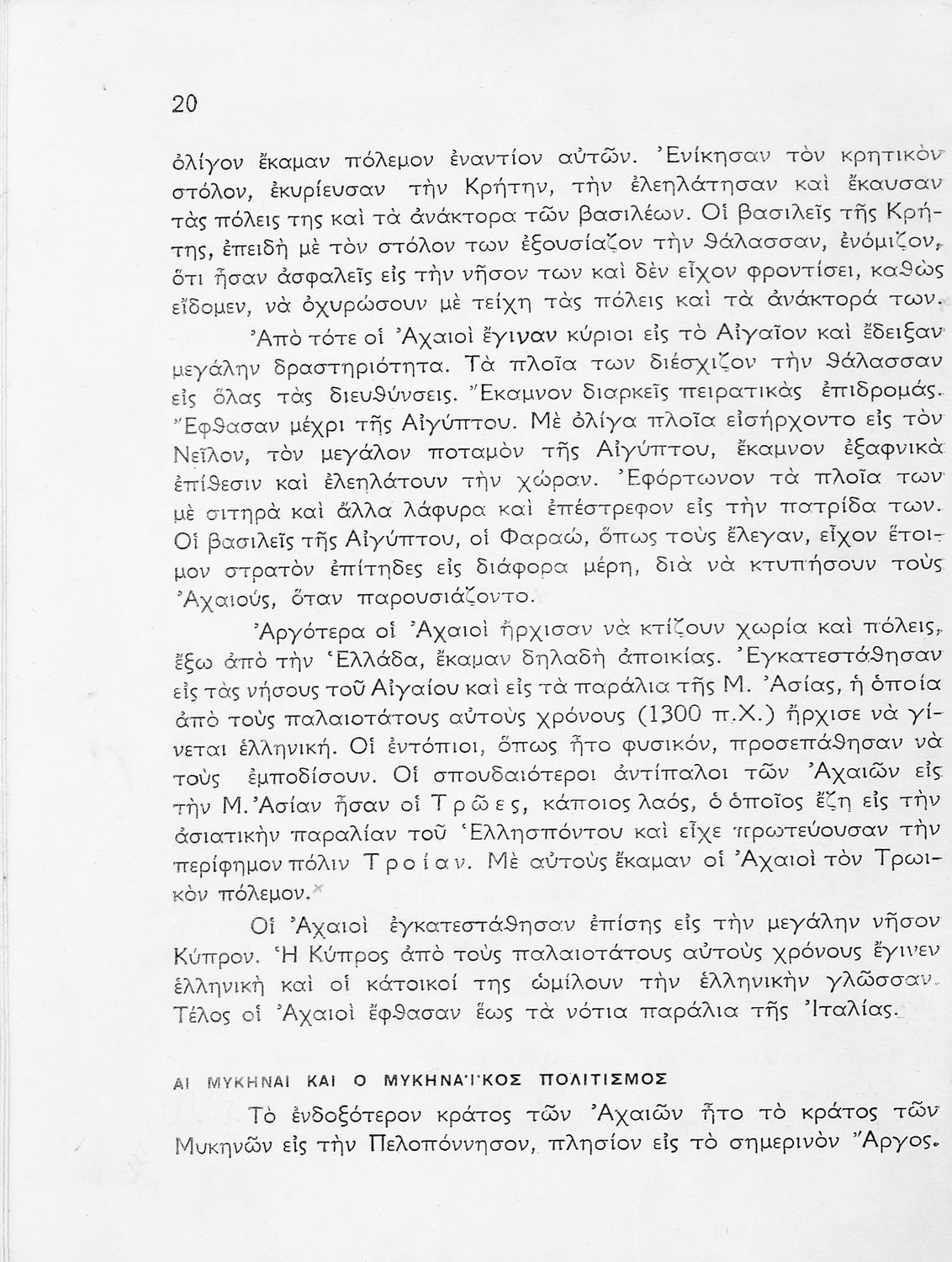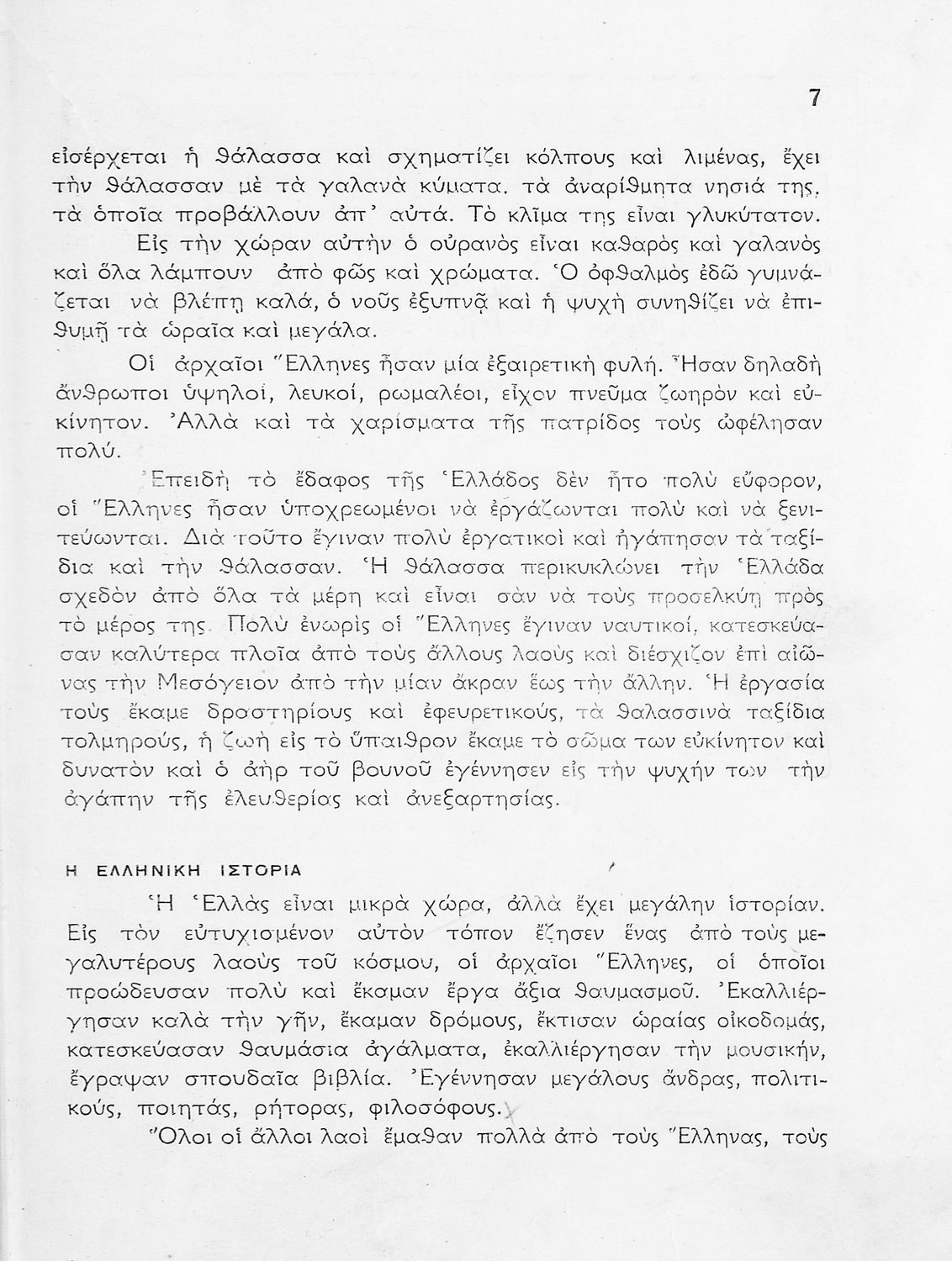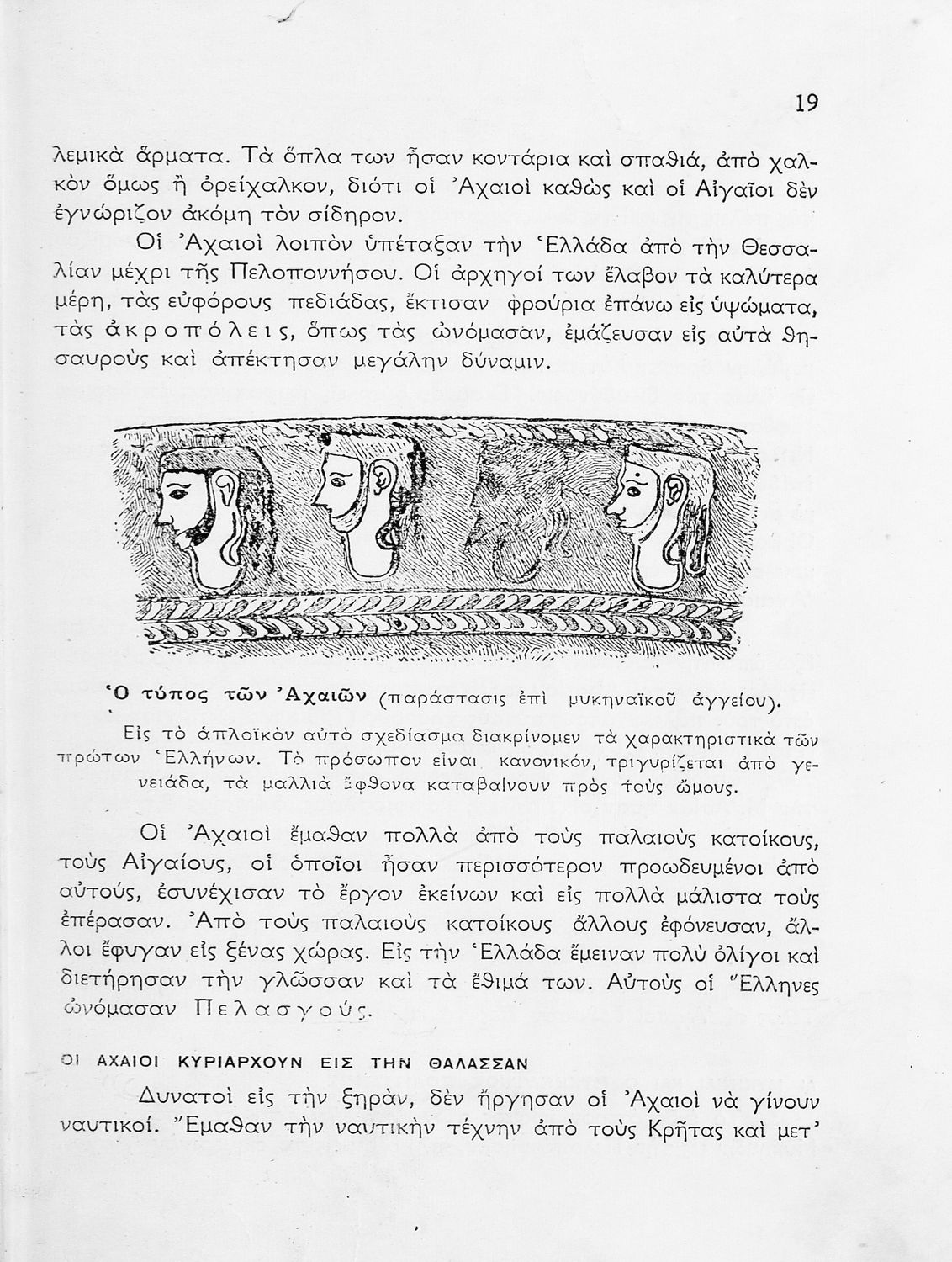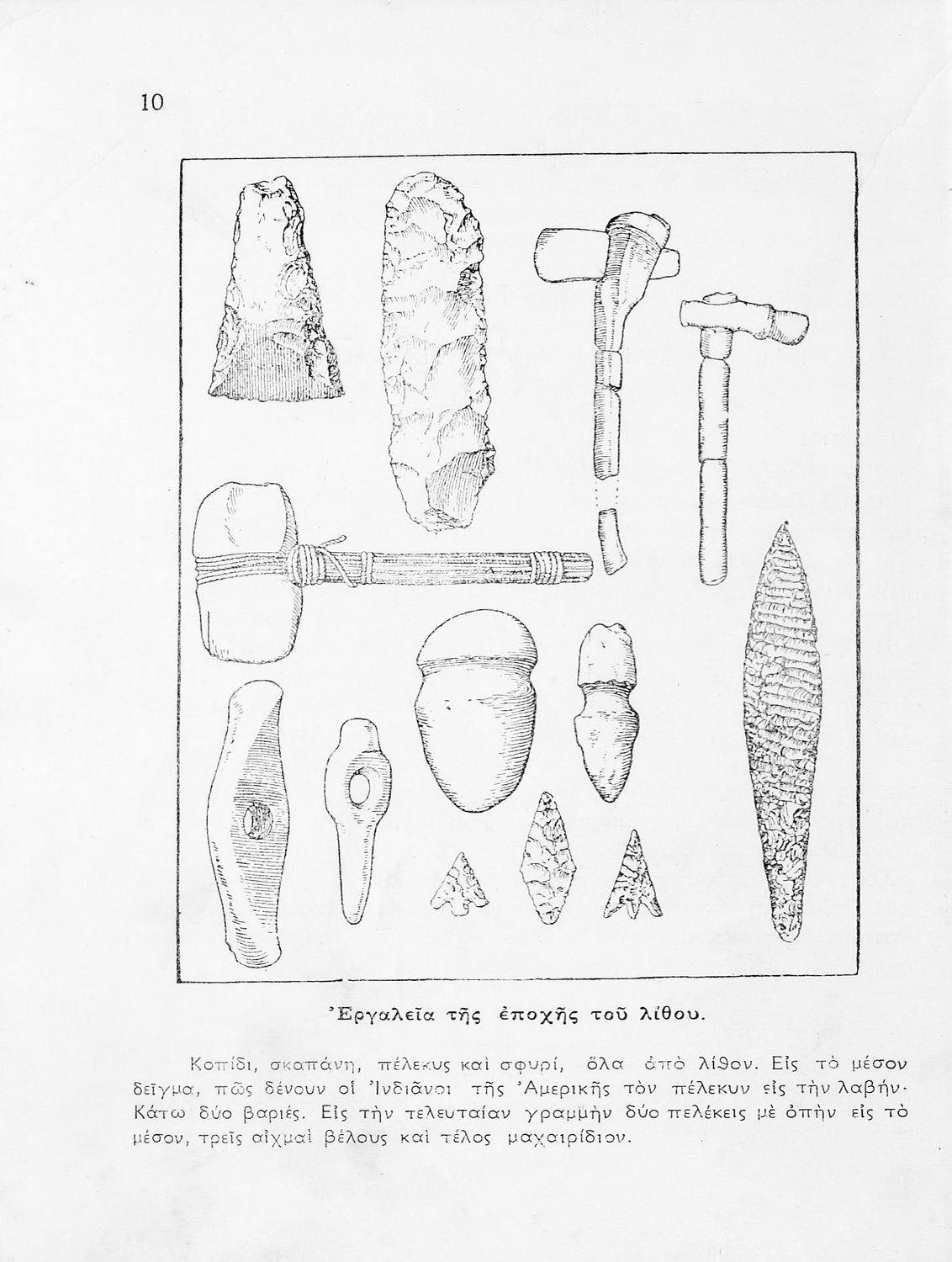 Σχολικό εγχειρίδιο Ιστορίας Α΄ Γυμνασίου και Αστικού Σχολείου που καλύπτει την περίοδο από τους προϊστορικούς χρόνους ως τις μεταρρυθμίσεις του Κλεισθένη. Περιέχει και εκτενή αναφορά στην ανάπτυξη των γραμμάτων, των τεχνών και του εμπορίου.