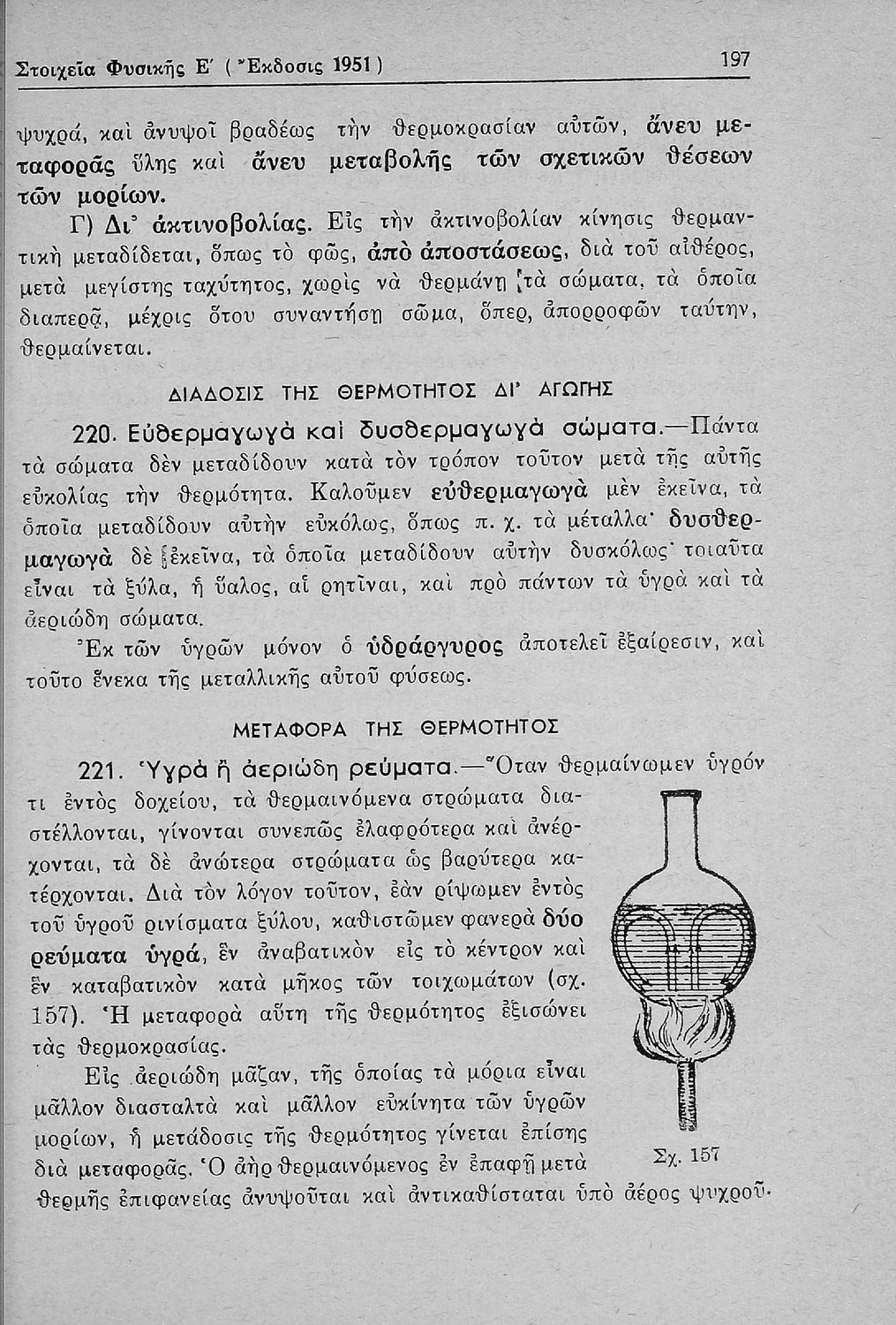 Σχολικό εγχειρίδιο της Ε΄ Γυμνασίου για το μάθημα της Φυσικής στο Γυμνάσιο . Παρέχει βασικές γνώσεις της φυσικής επιστήμης. Αναλύει τις κινήσεις, τη μηχανική, τη βαρύτητα, την υδροστατική πίεση, την αεροστατική, την θερμότητα, τη μετεωρολογία, την ακουστική. Αναφέρεται στην πρακτική εφαρμογή της φυσικής στην καθημερινότητά. Επίσης, περιλαμβάνει πολλά από τα όργανα, που χρησιμοποιούνται στη φυσική. Περιέχει εικόνες και σχεδιαγράμματα τα οποία βοηθούν τη διδασκαλία.