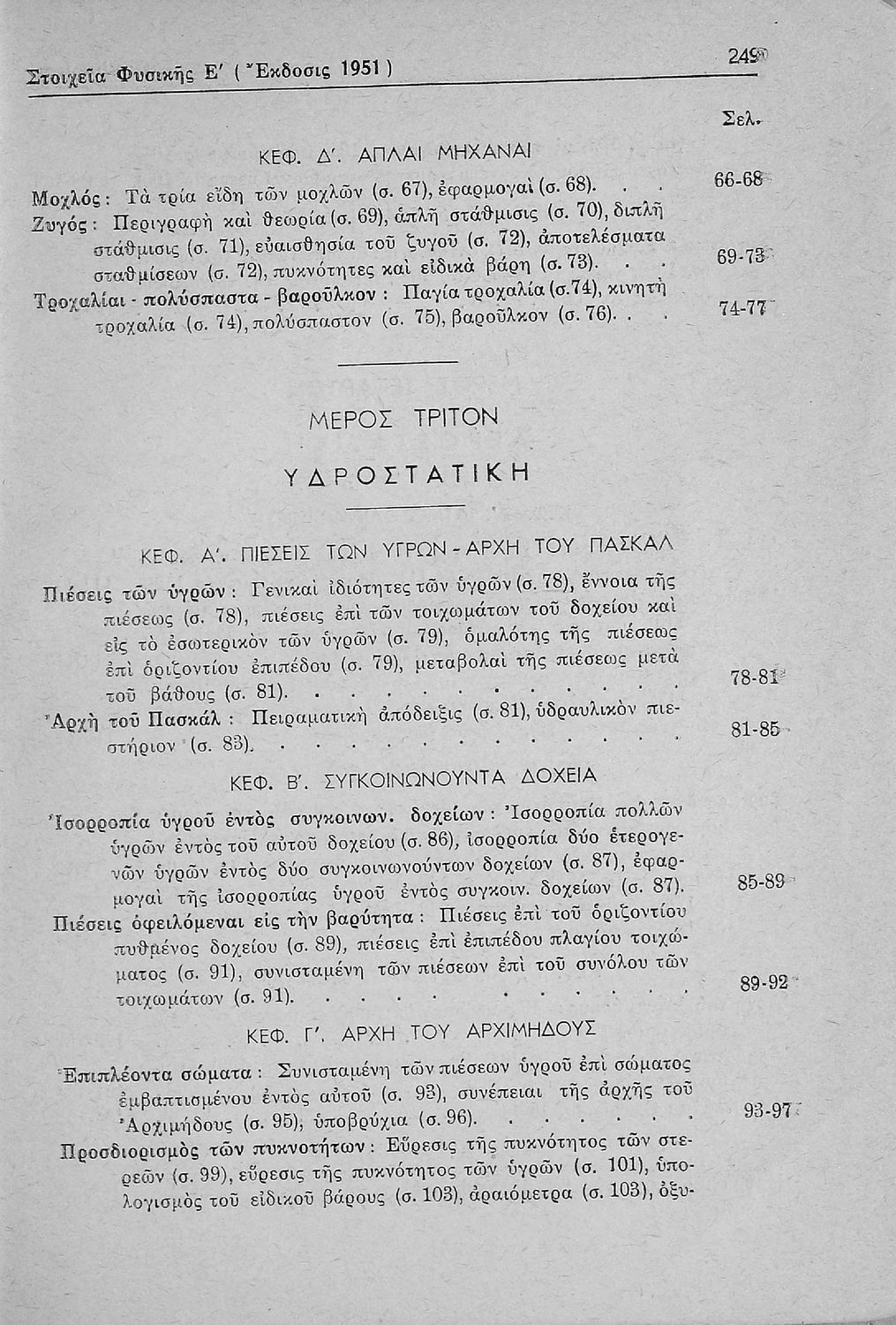Σχολικό εγχειρίδιο της Ε΄ Τάξης των Γυμνασίων Παλαιού Τύπου για το μάθημα της Φυσικής. Παρέχει βασικές γνώσεις της Φυσικής επιστήμης. Αναλύει τα φαινόμενα της μηχανικής, της βαρύτητας, της υδροστατικής της ...