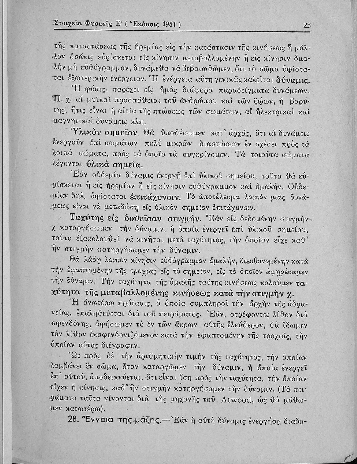 LDR 01738 2200193 4500 035 ## _a01-17652 040 ## _aΙνστιτούτο Εκπαιδευτικής Πολιτικής 041 ## _ael 100 ## _aΔιον. Π. Λεονταρίτης 110 ## _a17652 245 0# _aΣτοιχεία Φυσικής δια την Ε΄ Τάξιν των Γυμνασίων Παλαιού Τύπου 260 ## _aΑθήνα _bΟργανισμός Εκδόσεως Σχολικών Βιβλίων _c1951 300 ## _a254 _bΣκίτσα, σχεδιαγράμματα (ασπρόμαυρα) 520 ## _aΣχολικό εγχειρίδιο της Ε΄ Γυμνασίου για το μάθημα της Φυσικής στο Γυμνάσιο . Παρέχει βασικές γνώσεις της φυσικής επιστήμης. Αναλύει τις κινήσεις, τη μηχανική, τη βαρύτητα, την υδροστατική πίεση, την αεροστατική, την θερμότητα, τη μετεωρολογία, την ακουστική. Αναφέρεται στην πρακτική εφαρμογή της φυσικής στην καθημερινότητά. Επίσης, περιλαμβάνει πολλά από τα όργανα, που χρησιμοποιούνται στη φυσική. Περιέχει εικόνες και σχεδιαγράμματα τα οποία βοηθούν τη διδασκαλία. 521 ## _aΕ' Γυμνασίου 522 ## _aΕλλάδα 546 ## _aΑπλή καθαρεύουσα 563 ## _aΜαλακό Εξώφυλλο 650 #4 _aΑδράνεια _aΑτμομηχανές _aΑτμόσφαιρα _aΒαρύτητα _aΚινήσεις _aΦυγόκεντρος δύναμη