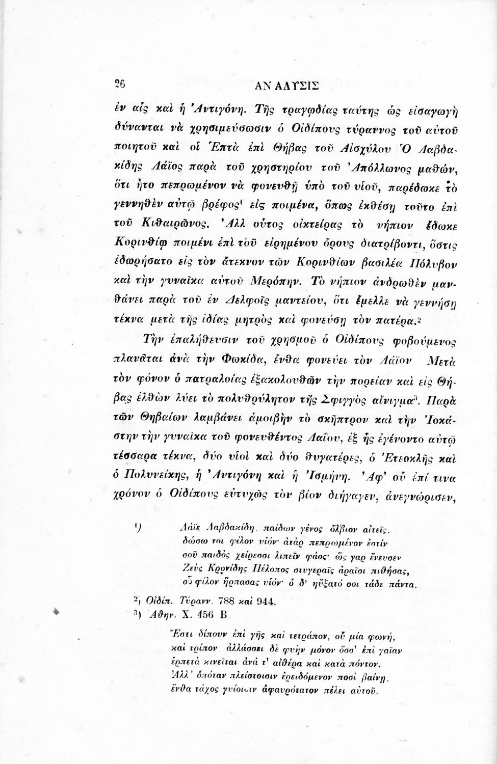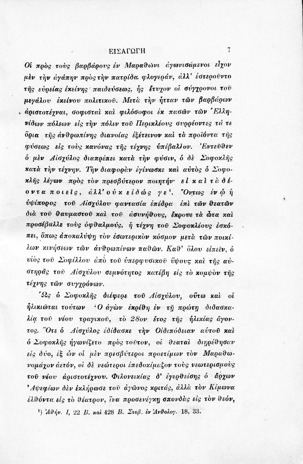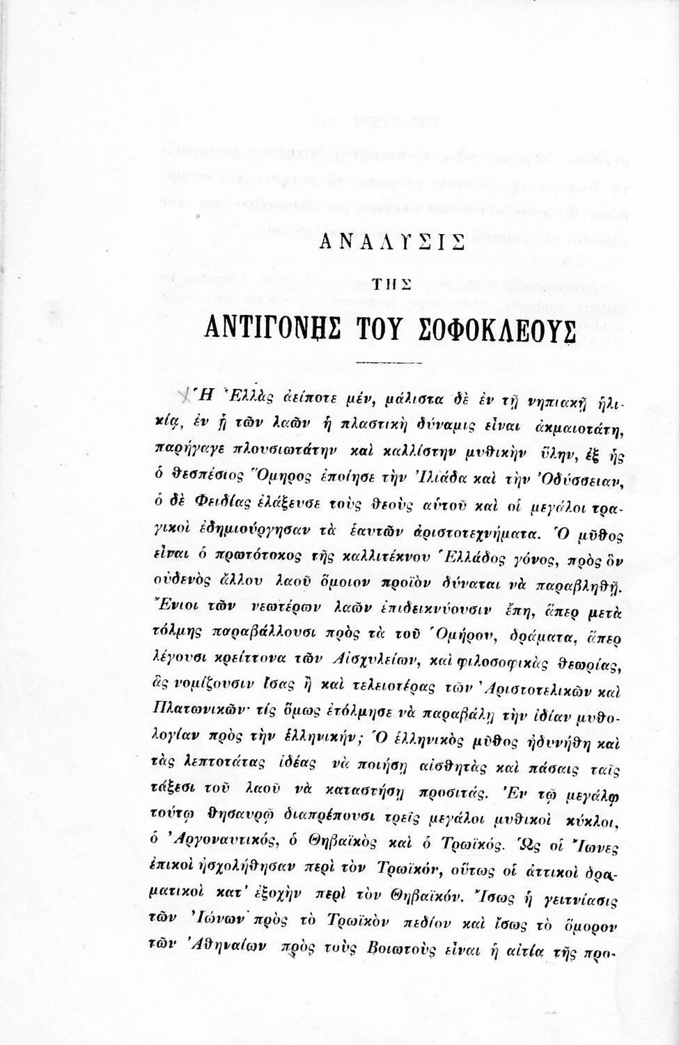 Παιδαγωγικό βοήθημα Αρχαίων Ελληνικών. Περιέχει τη τραγωδία του Σοφοκλή, την Αντιγόνη με σχόλια από τον Μιστριώτη που υπήρξε τακτικός καθηγητής των ελληνικών γραμμάτων στο εθνικό Πανεπιστήμιο.