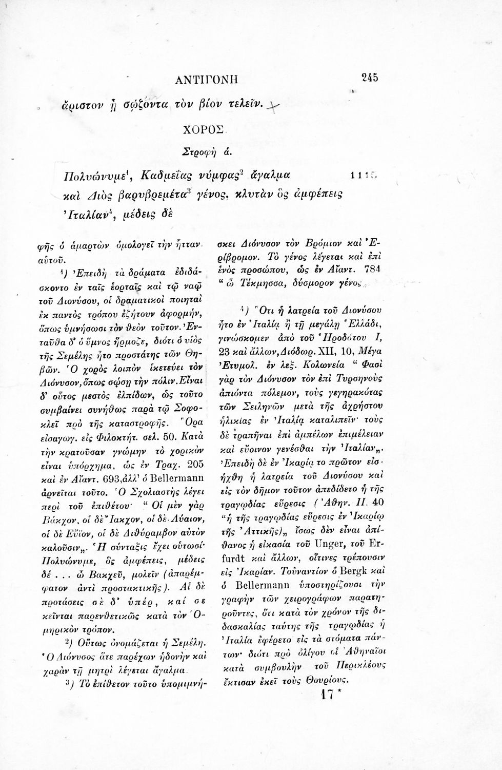 Τίτλος: Τραγωδίαι Σοφοκλέους εκδιδόμεναι μετά σχολίων Αντιγόνη