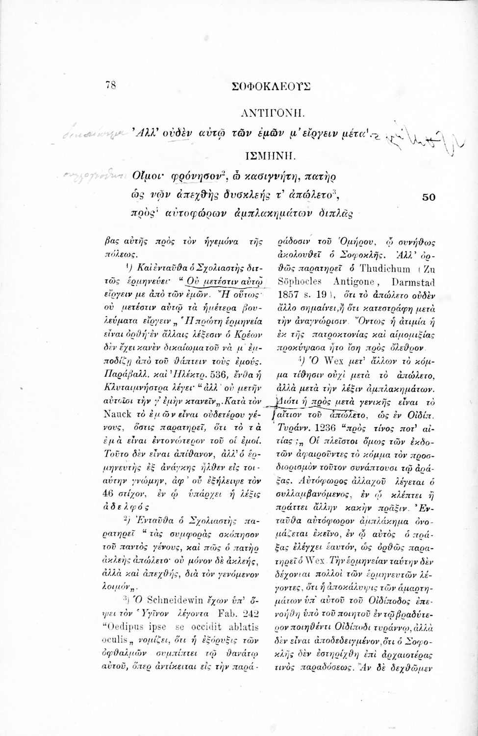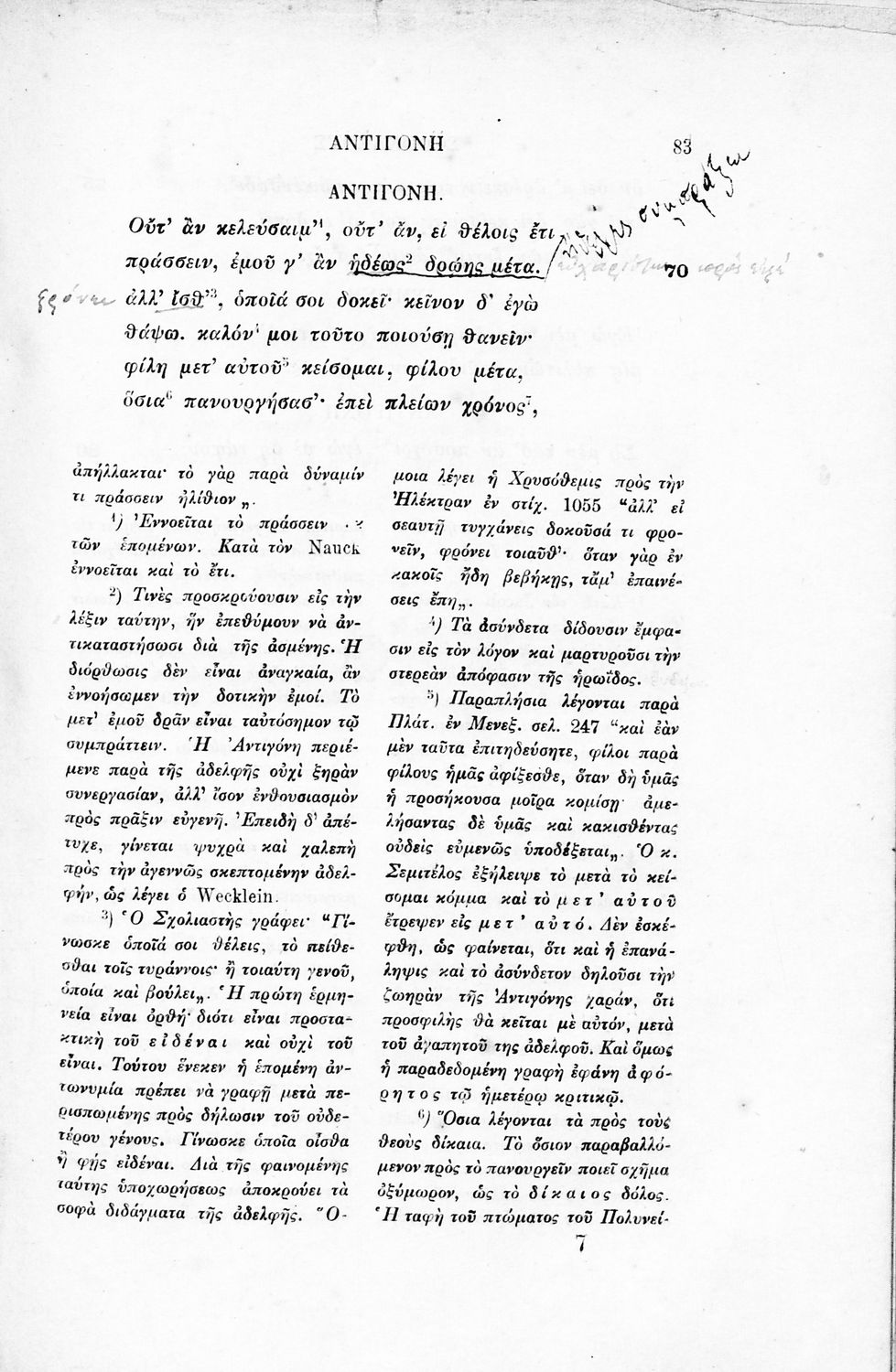 Τραγωδίαι Σοφοκλέους εκδιδόμεναι μετά σχολίων Αντιγόνη