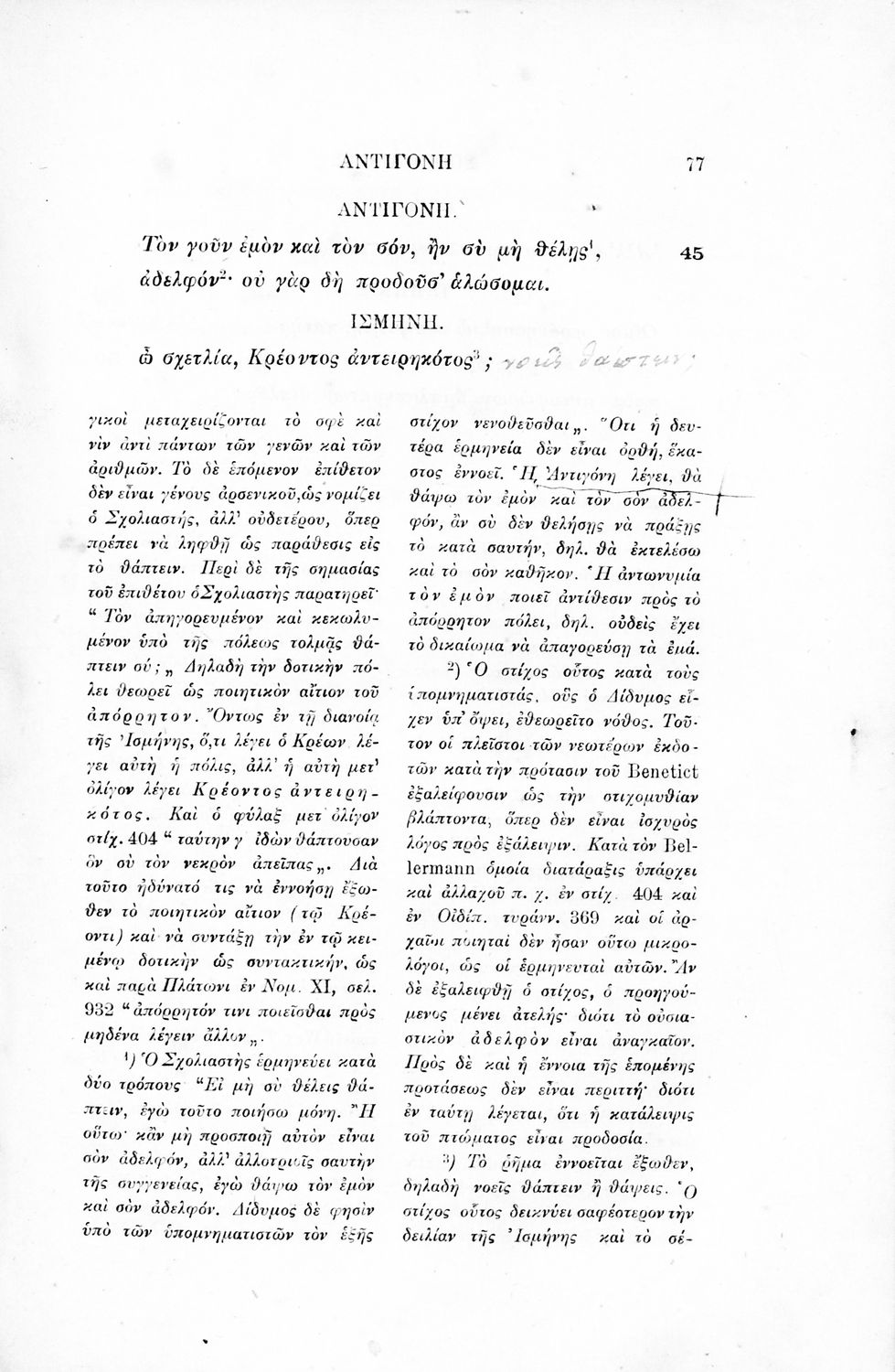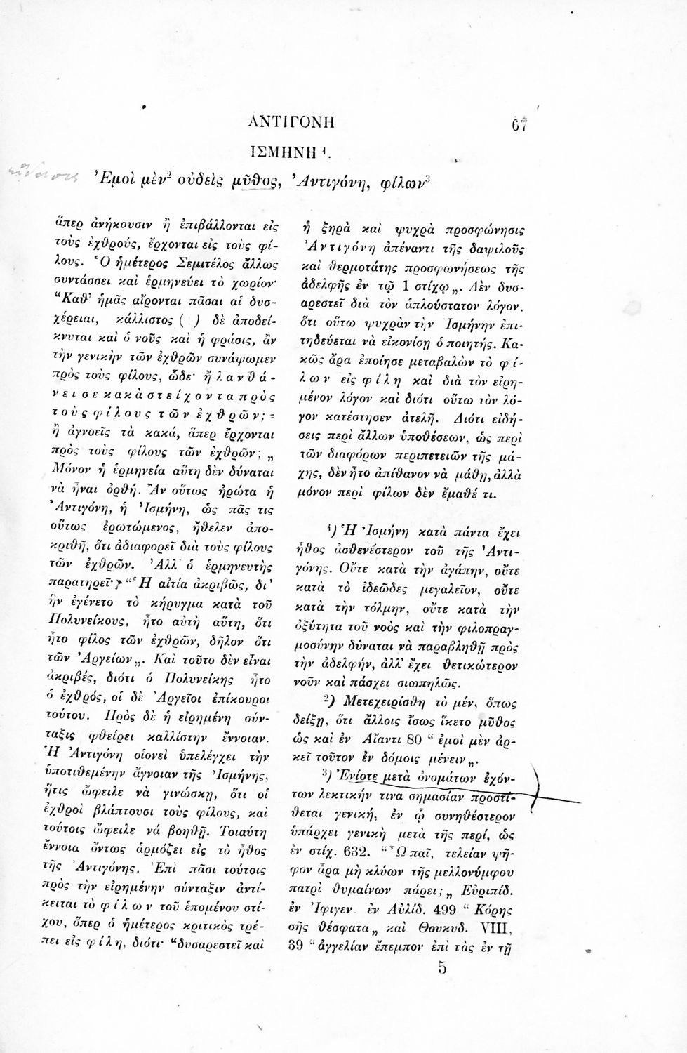 Τίτλος: Τραγωδίαι Σοφοκλέους εκδιδόμεναι μετά σχολίων Αντιγόνη