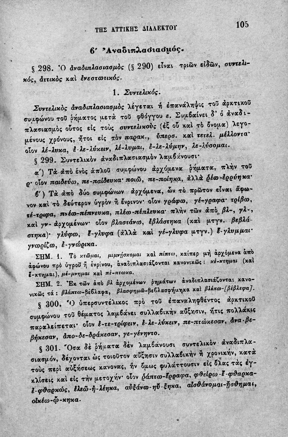 Σχολικό εγχειρίδιο Αρχαίων Ελληνικών για τα Ελληνικά Σχολεία, Παρθεναγωγεία και Γυμνάσια που περιέχει τους κανόνες γραμματικής και είναι χωρισμένο σε φθογγολογικό, τυπολογικό και ετυμολογικό μέρος.