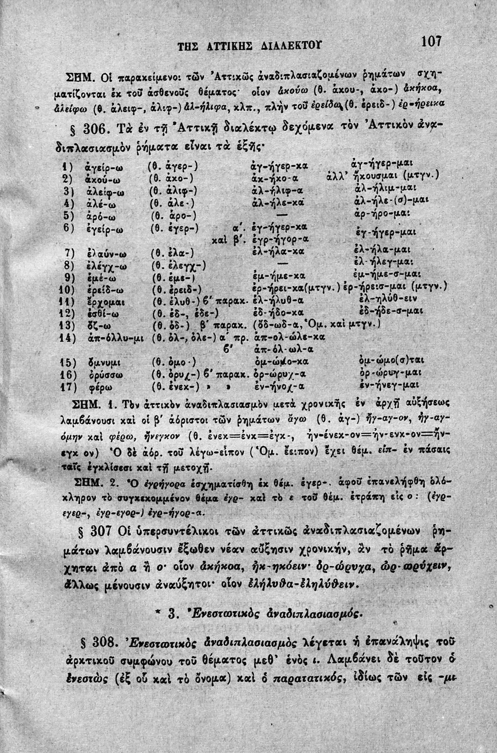 Μαθητικό βοήθημα Αρχαίων Ελληνικών για τα Γυμνάσια, Παρθεναγωγεία και Ελληνικά σχολεία το οποίο περιέχει κατάλογο ανωμάλων ρημάτων της Αττικής διαλέκτου.