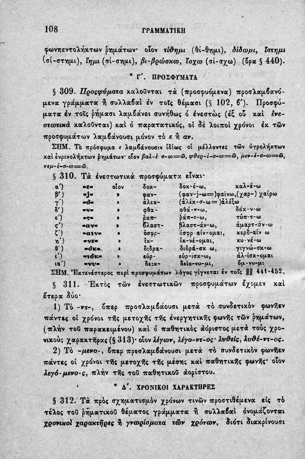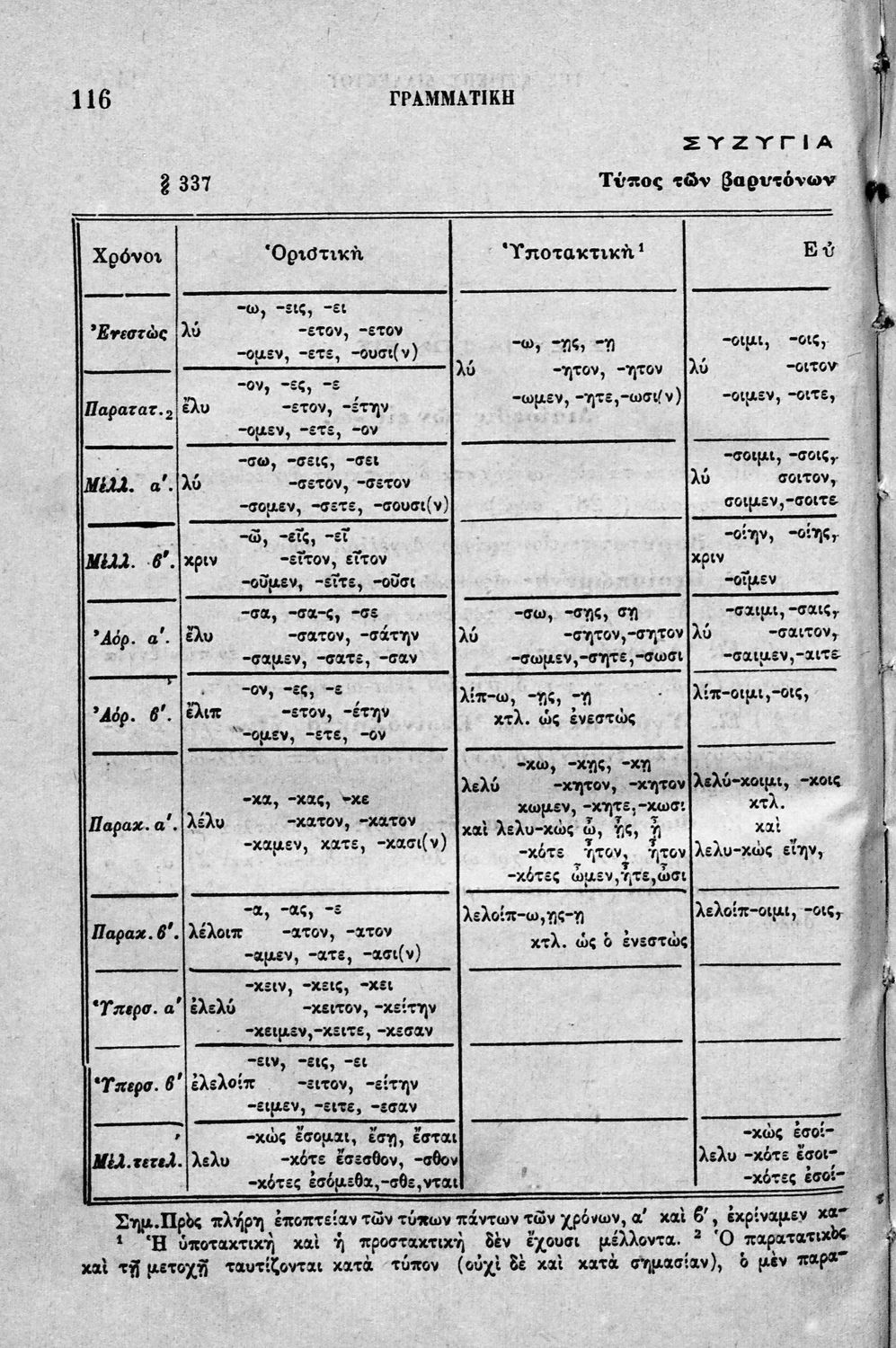 Σχολικό εγχειρίδιο Αρχαίων Ελληνικών για τα Ελληνικά Σχολεία και Παρθεναγωγεία που περιλαμβάνει κανόνες της γραμματικής της αρχαίας ελληνικής και είναι χωρισμένη στο φθογγολογικό και στο τυπολογικό μέρος.