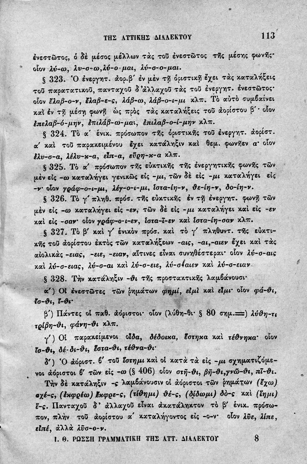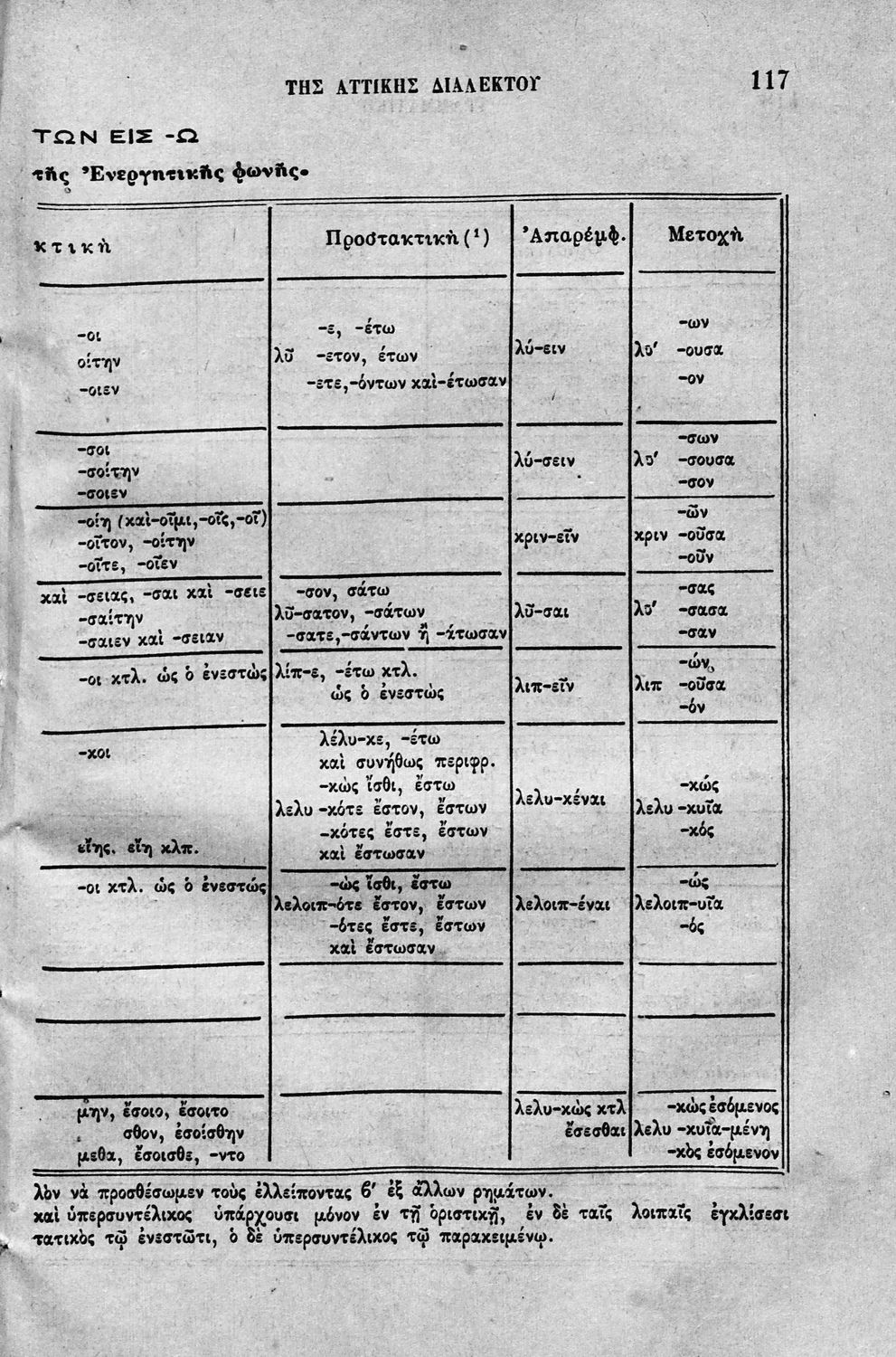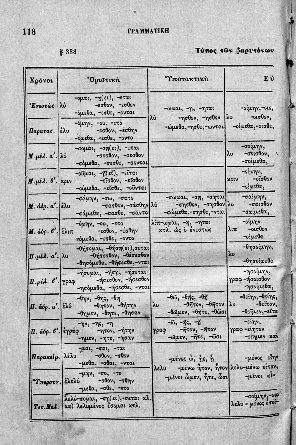Σχολικό εγχειρίδιο Αρχαίων Ελληνικών για τα Ελληνικά Σχολεία και Παρθεναγωγεία που περιέχει τους κανόνες γραμματικής και είναι χωρισμένο σε φθογγολογικό, τυπολογικό και ετυμολογικό μέρος.