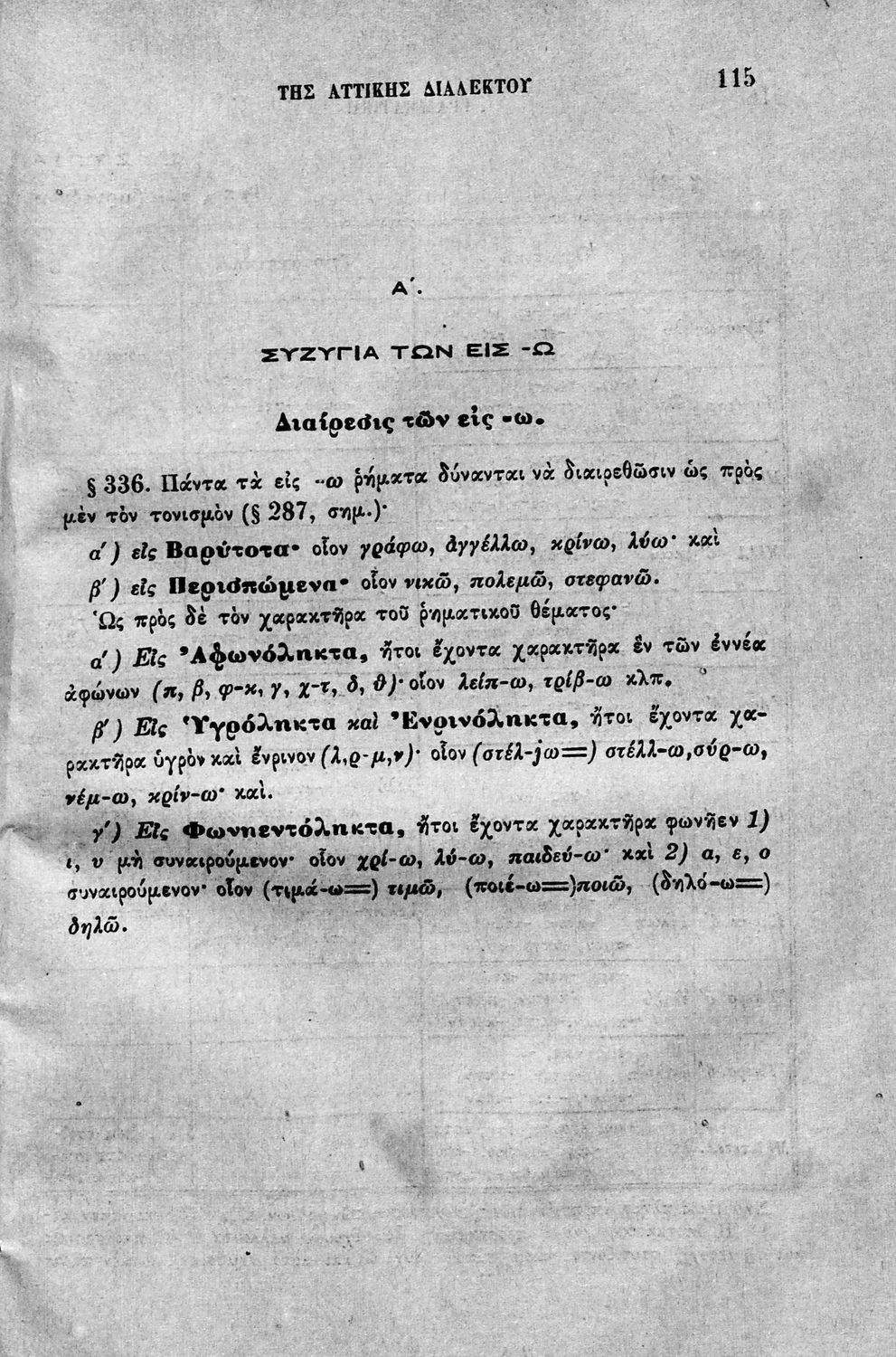Τίτλος: Γραμματική της αρχαίας ελληνικής γλώσσης μάλιστα δε της Αττικής διαλέκτου προς χρήσιν των μαθητών των Ελλην. Σχολείων, Παρθεναγωγείων και Γυμνασίων