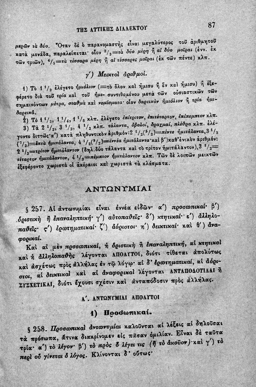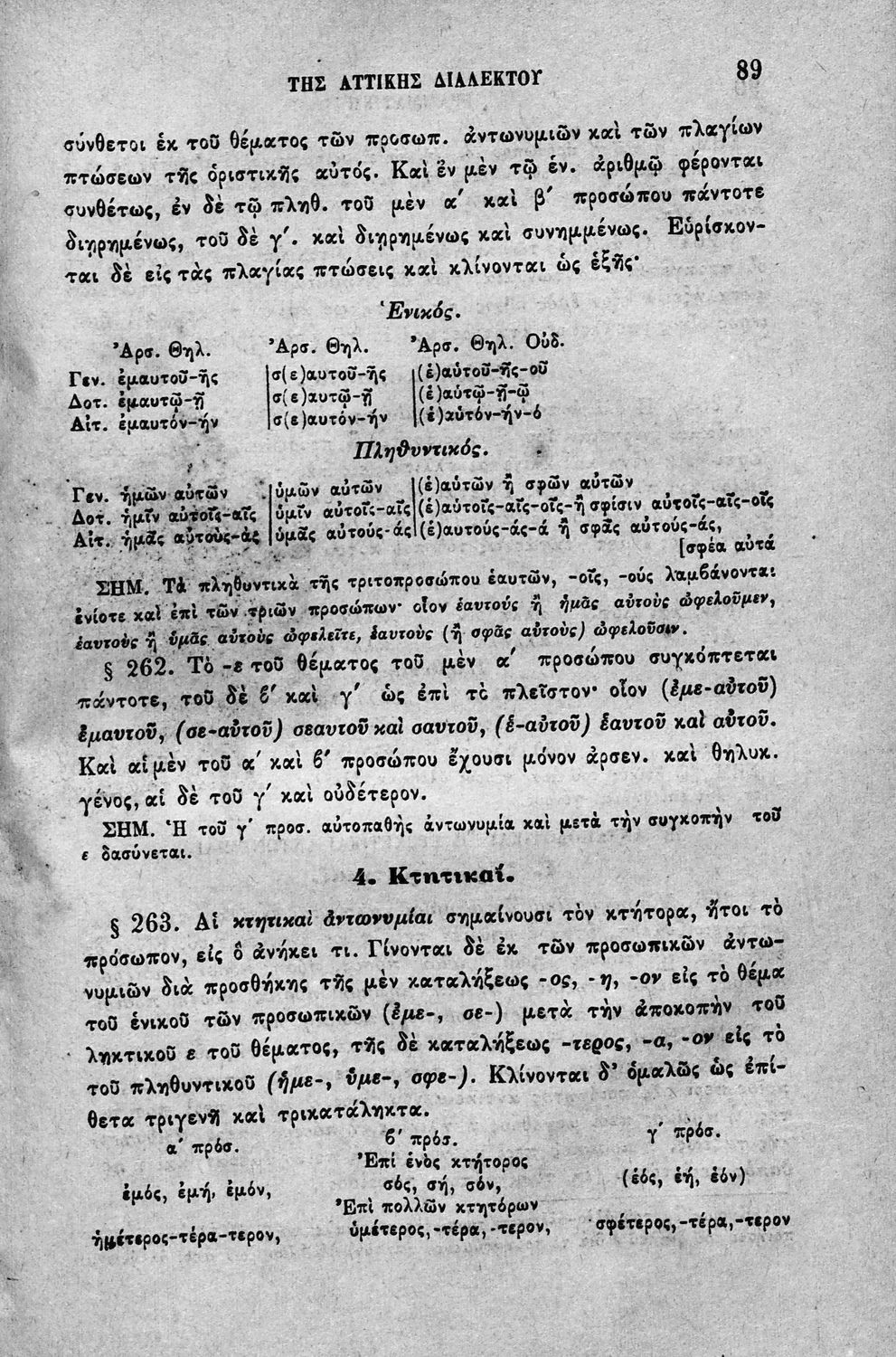 Γραμματική της αρχαίας ελληνικής γλώσσης μάλιστα δε της Αττικής διαλέκτου προς χρήσιν των μαθητών των Ελλην. Σχολείων, Παρθεναγωγείων και Γυμνασίων