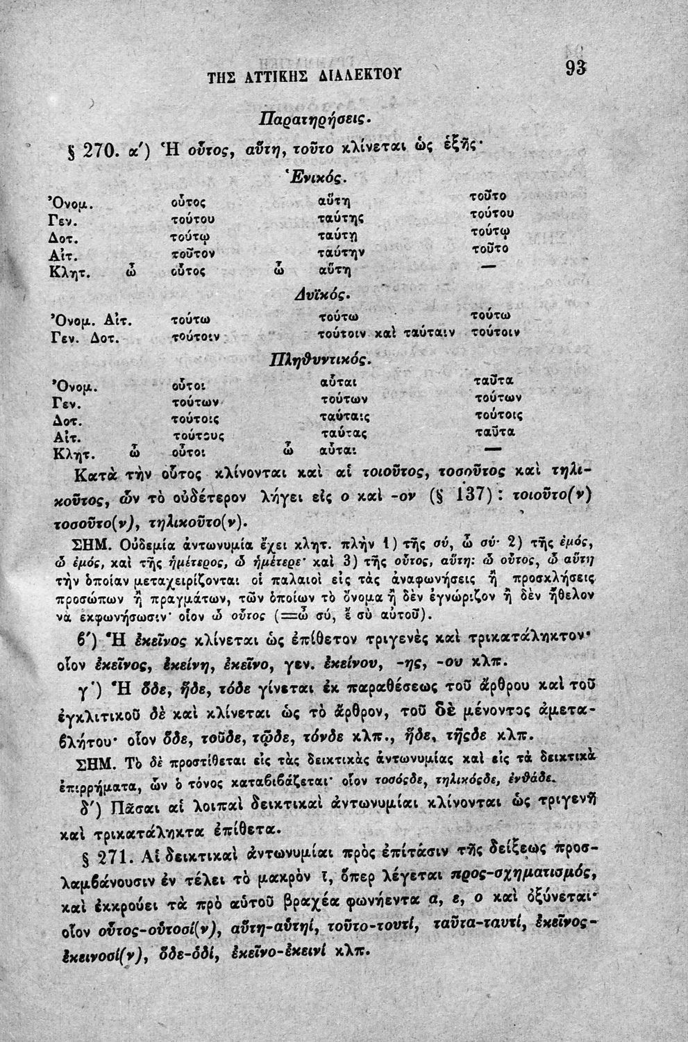 Τίτλος: Γραμματική της αρχαίας ελληνικής γλώσσης μάλιστα δε της Αττικής διαλέκτου προς χρήσιν των μαθητών των Ελλην. Σχολείων, Παρθεναγωγείων και Γυμνασίων