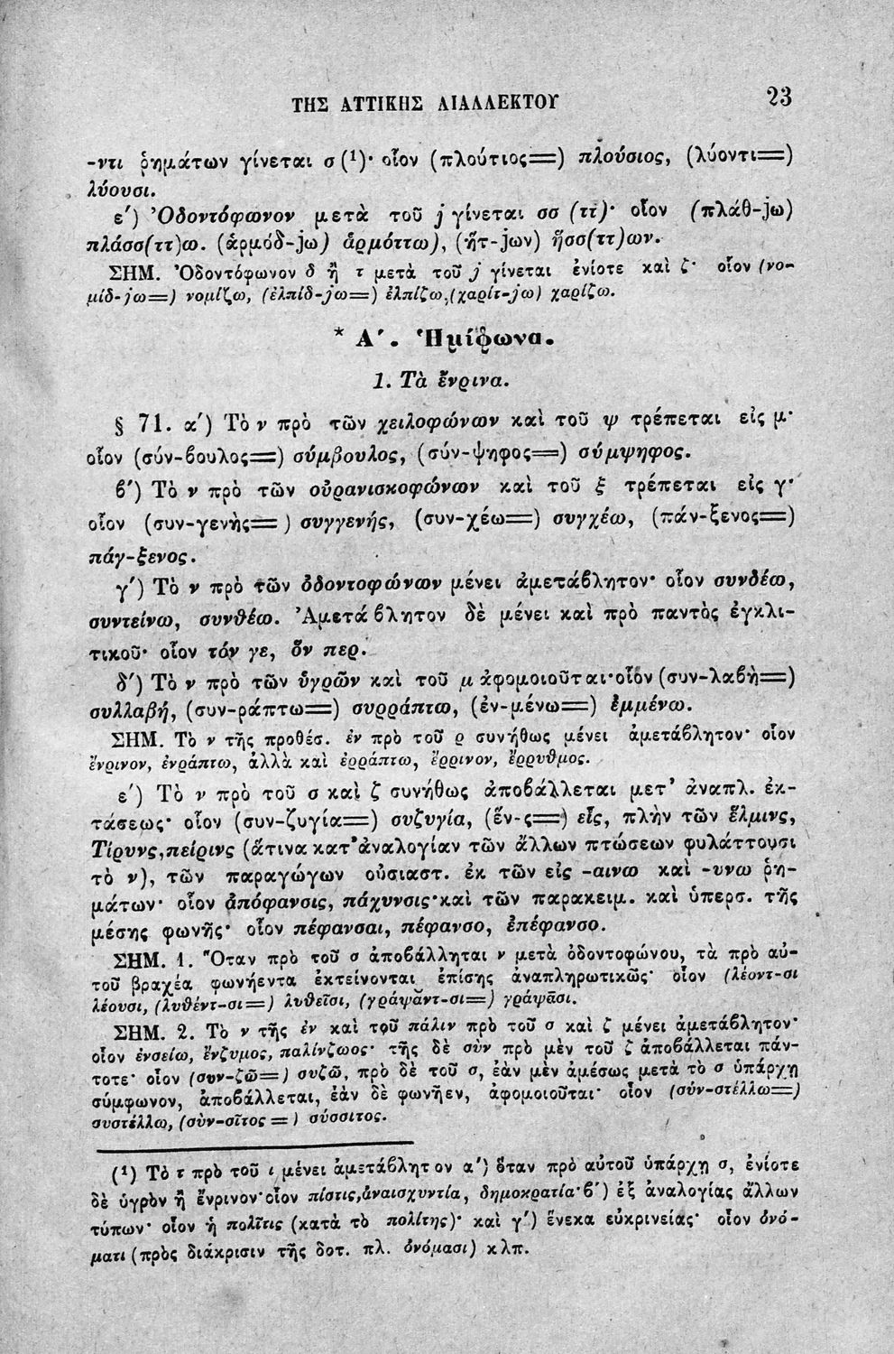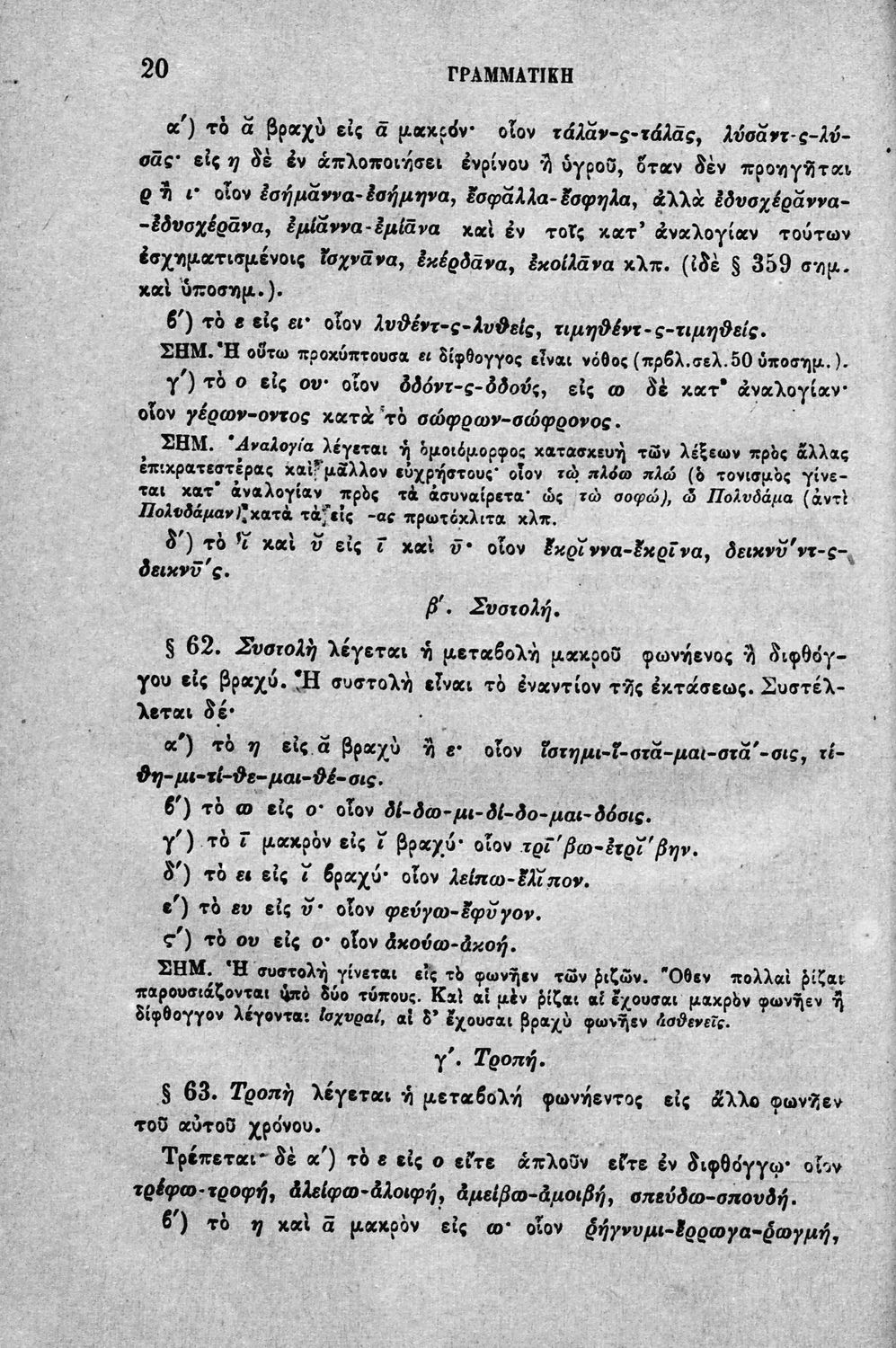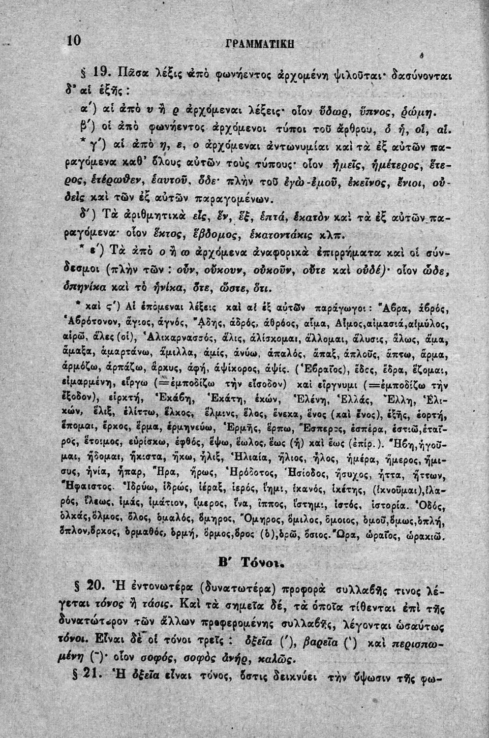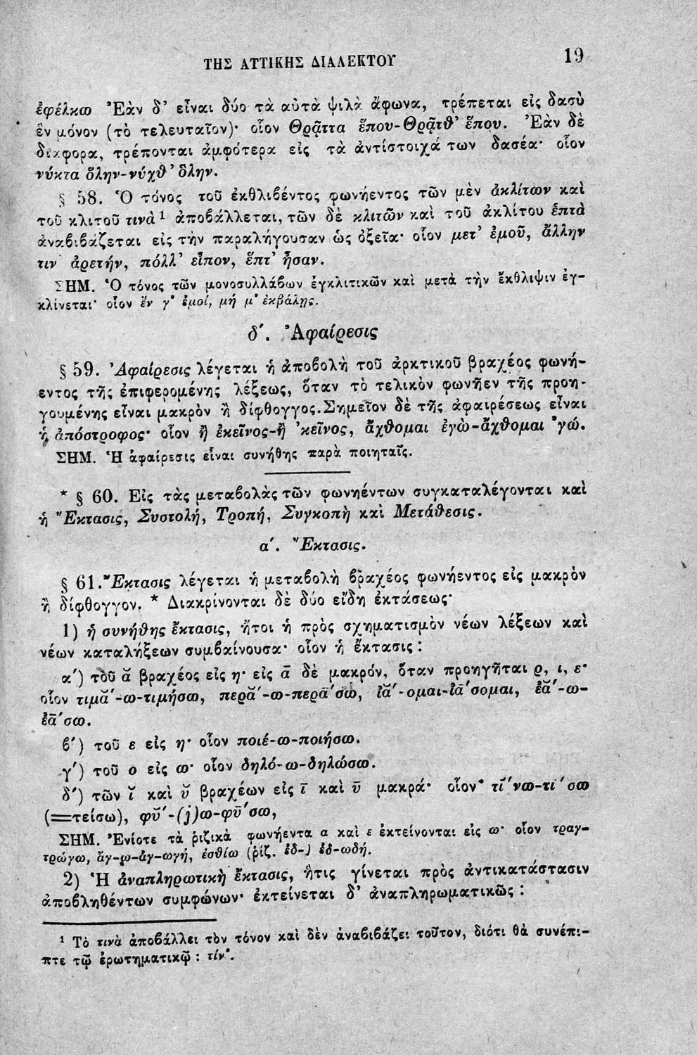 Σχολικό εγχειρίδιο Αρχαίων Ελληνικών για τα Ελληνικά Σχολεία και Παρθεναγωγεία που περιλαμβάνει κανόνες της γραμματικής της αρχαίας ελληνικής και είναι χωρισμένη στο φθογγολογικό και στο τυπολογικό μέρος.