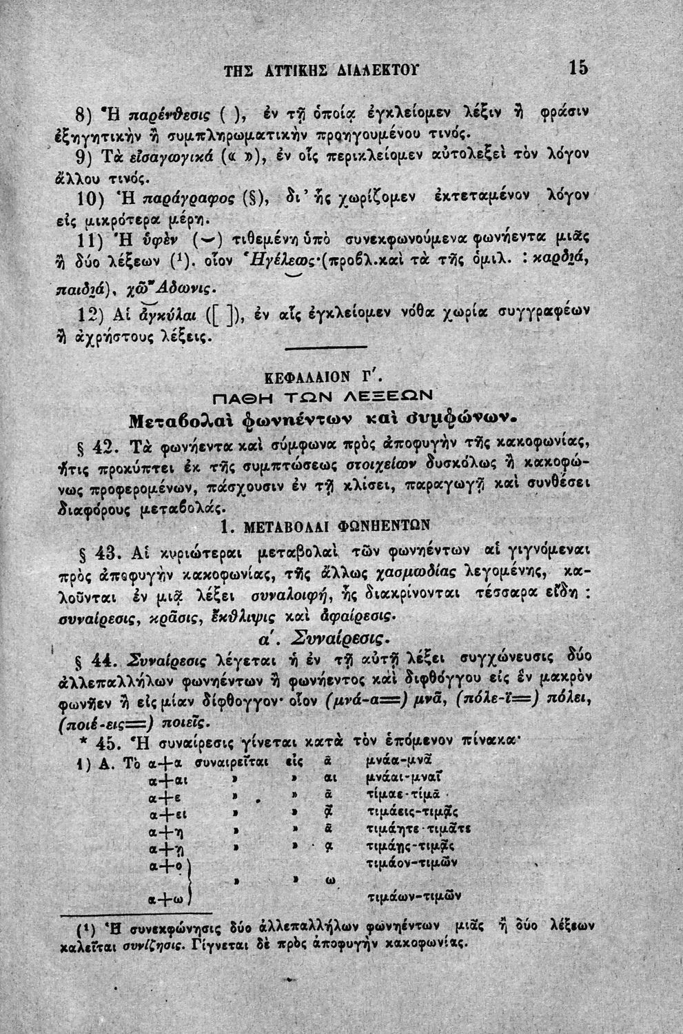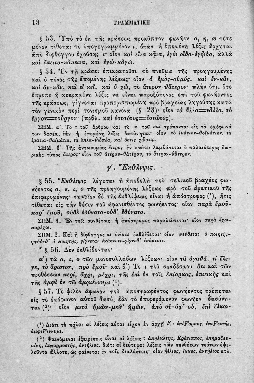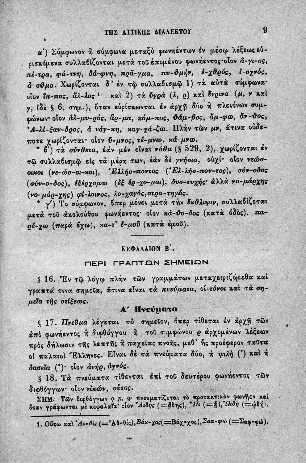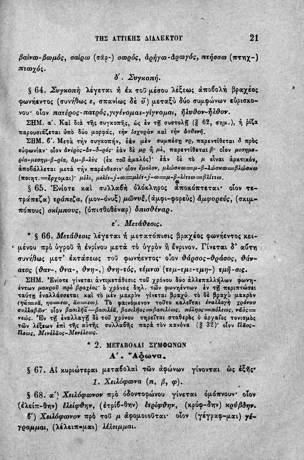 Σχολικό εγχειρίδιο Αρχαίων Ελληνικών για τα Ελληνικά Σχολεία, Παρθεναγωγεία και Γυμνάσια που περιέχει τους κανόνες γραμματικής και είναι χωρισμένο σε φθογγολογικό, τυπολογικό και ετυμολογικό μέρος.