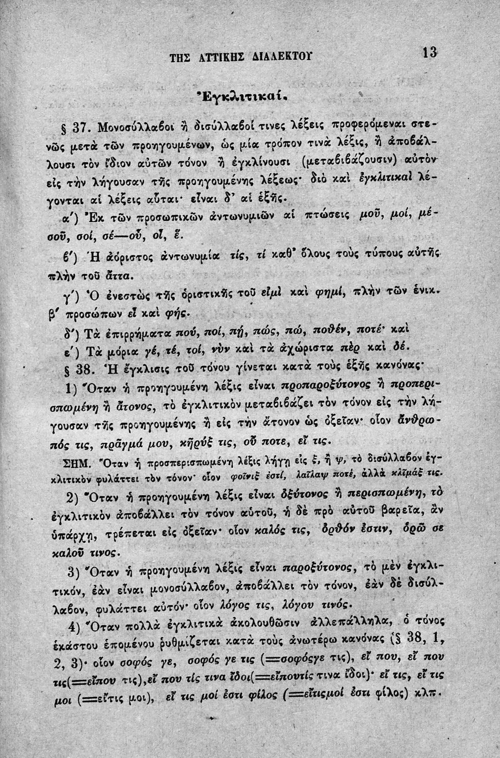 Τίτλος: Γραμματική της αρχαίας ελληνικής γλώσσης μάλιστα δε της Αττικής διαλέκτου προς χρήσιν των μαθητών των Ελλην. Σχολείων, Παρθεναγωγείων και Γυμνασίων