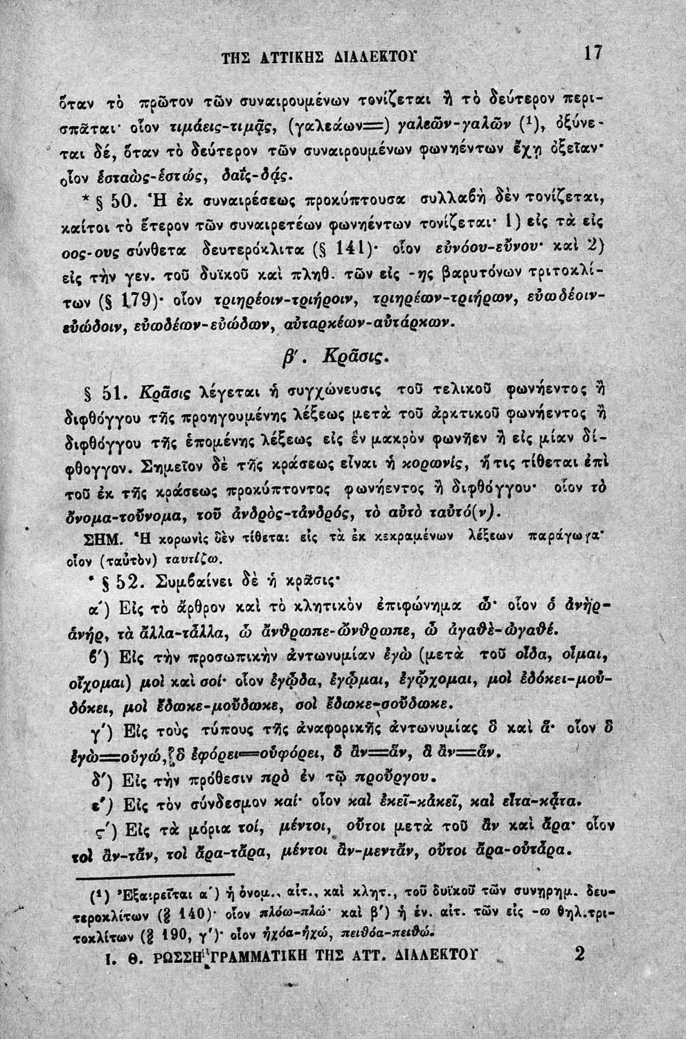 Γραμματική της αρχαίας ελληνικής γλώσσης μάλιστα δε της Αττικής διαλέκτου προς χρήσιν των μαθητών των Ελλην. Σχολείων, Παρθεναγωγείων και Γυμνασίων