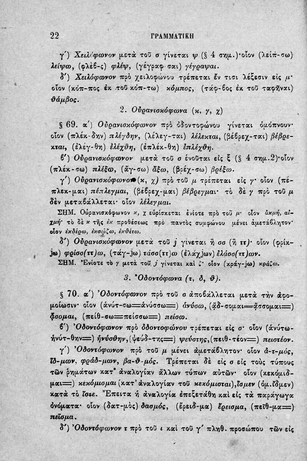 Σχολικό εγχειρίδιο Αρχαίων Ελληνικών για τα Ελληνικά Σχολεία και Παρθεναγωγεία που αποτελεί γραμματική της αρχαίας ελληνικής και είναι χωρισμένο στο φθογγολογικό και το τυπολογικό μέρος.
