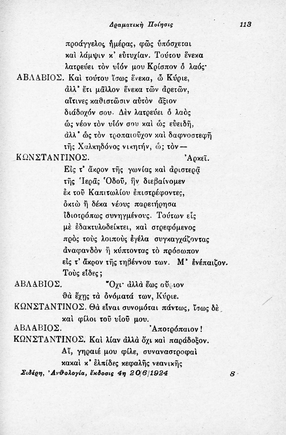 Τίτλος: Νεοελληνική Ανθολογία επική ποίησις-δραματική ποίησις-λυρική ποίησις προς χρήσιν των τριών τάξεων των διδασκαλείων και ανάγνωσιν κατ΄ οίκον υπό των μαθητών της Γ΄ και Δ΄ τάξεων των Γυμνασίων