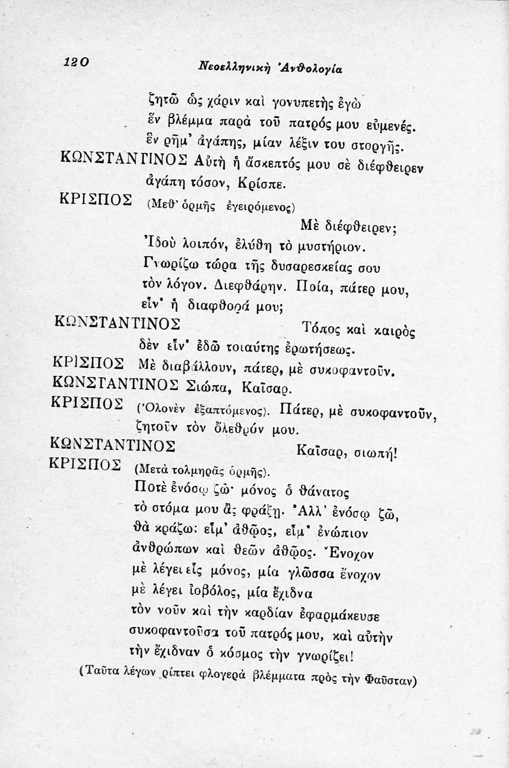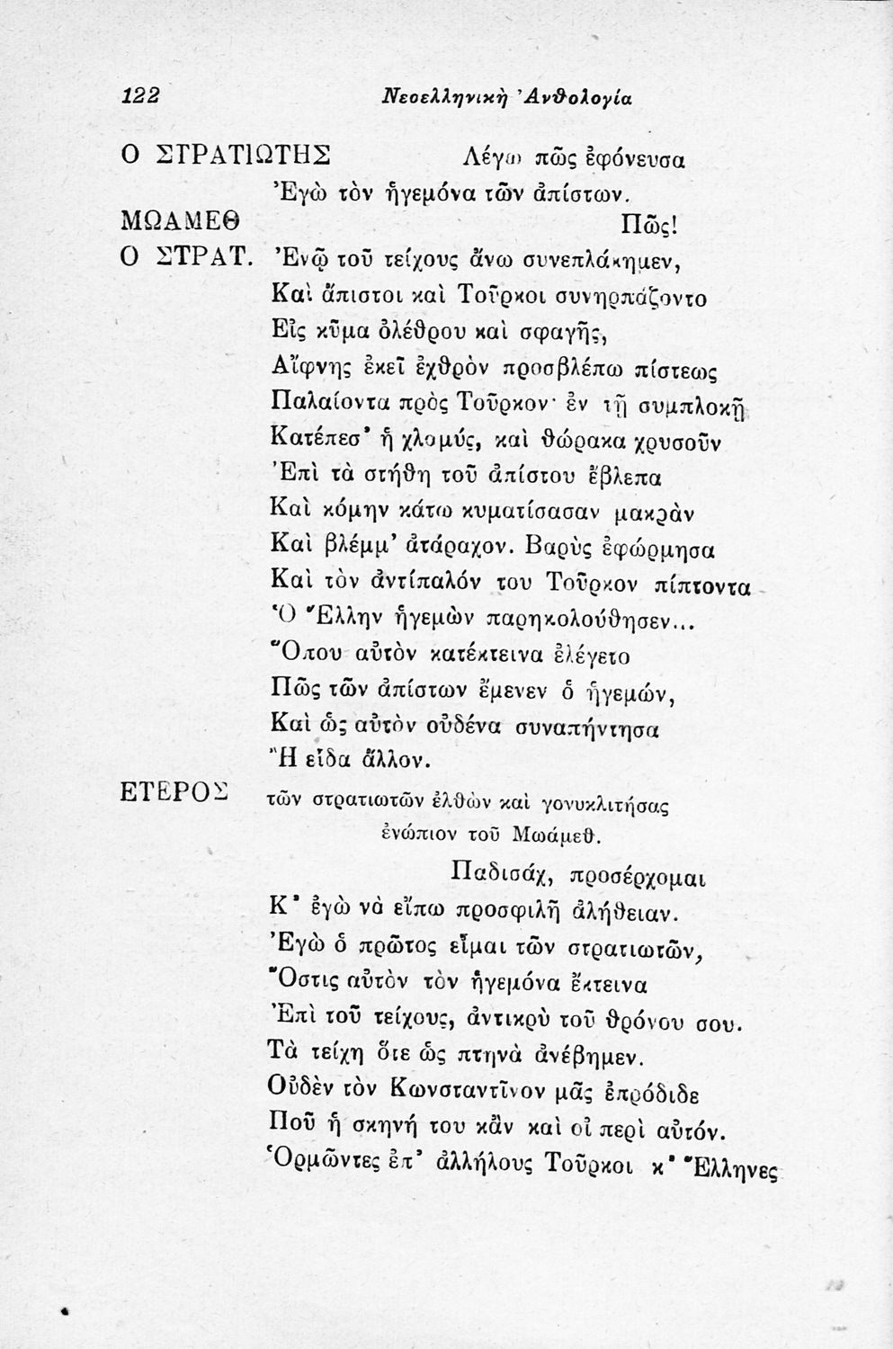 Νεοελληνική Ανθολογία επική ποίησις-δραματική ποίησις-λυρική ποίησις προς χρήσιν των τριών τάξεων των διδασκαλείων και ανάγνωσιν κατ΄ οίκον υπό των μαθητών της Γ΄ και Δ΄ τάξεων των Γυμνασίων