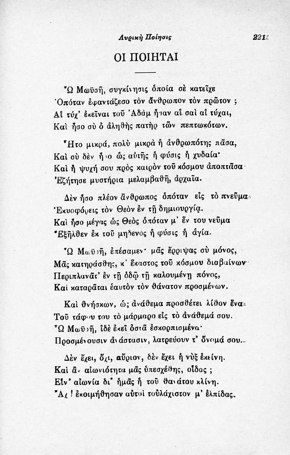 Σχολικό εγχειρίδιο Νέων Ελληνικών για τους μαθητές των Διδασκαλείων. Περιλαμβάνει ποιήματα Ελλήνων λογοτεχνών. Στο τέλος του βιβλίου υπάρχουν βιογραφίες των ποιητών.