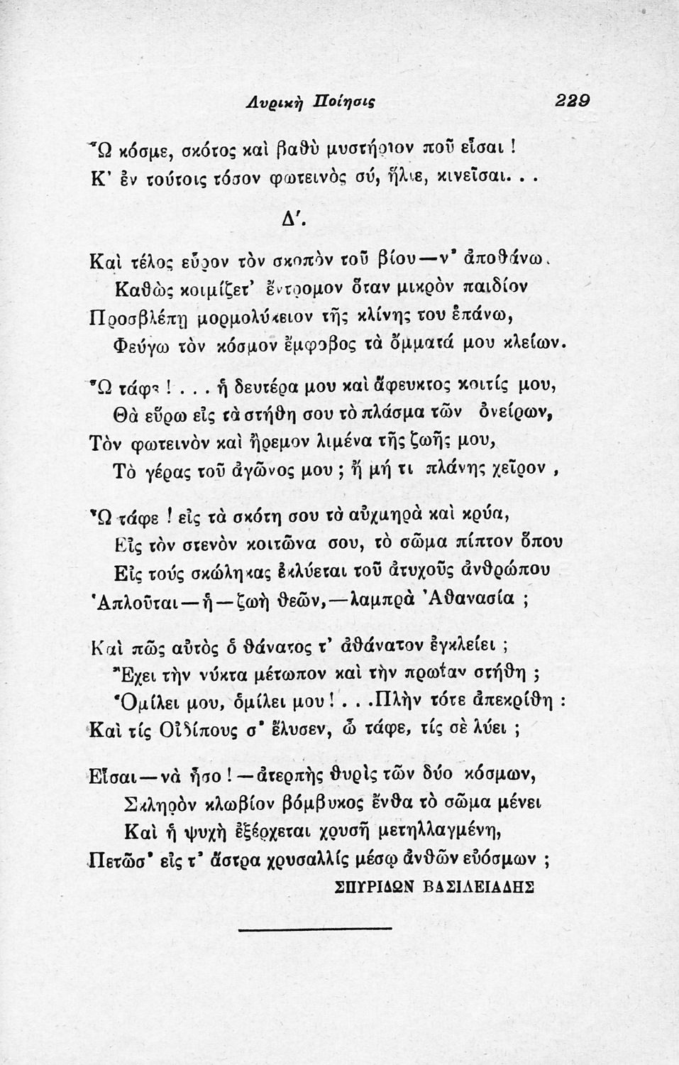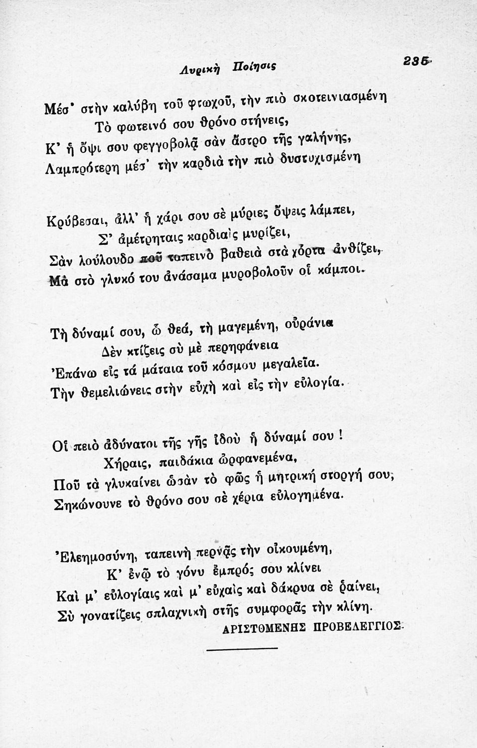 Σχολικό εγχειρίδιο Νέων Ελληνικών για τους μαθητές των Διδασκαλείων. Περιλαμβάνει ποιήματα Ελλήνων λογοτεχνών. Στο τέλος του βιβλίου υπάρχουν βιογραφίες των ποιητών.