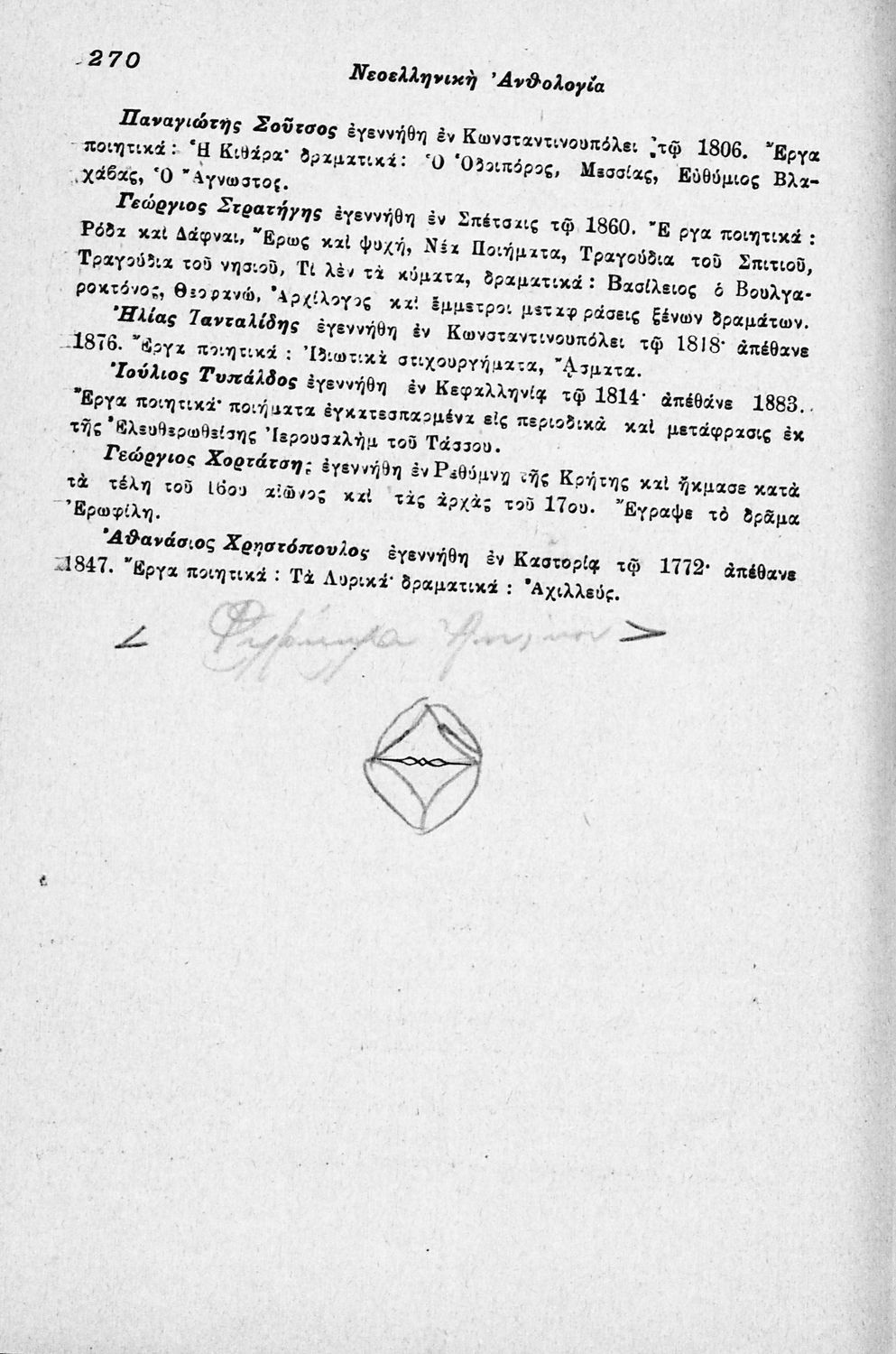 520 ## _aΣχολικό εγχειρίδιο Νέων Ελληνικών για τις τρεις τάξεις των Διδασκαλείων και Γ΄, Δ΄ Γυμνασίου. Ανθολόγιο νεοελληνικής ποίησης με αποσπάσματα από επικά, λυρικά και δραματικά ποιήματα. Περιέχει παράρτημα δυσνόητων λέξεων και βιογραφίες των ποιητών. Η θεματολογία είναι γύρω από την οικογενειακή ζωή και τα ιστορικά γεγονότα της χώρας.