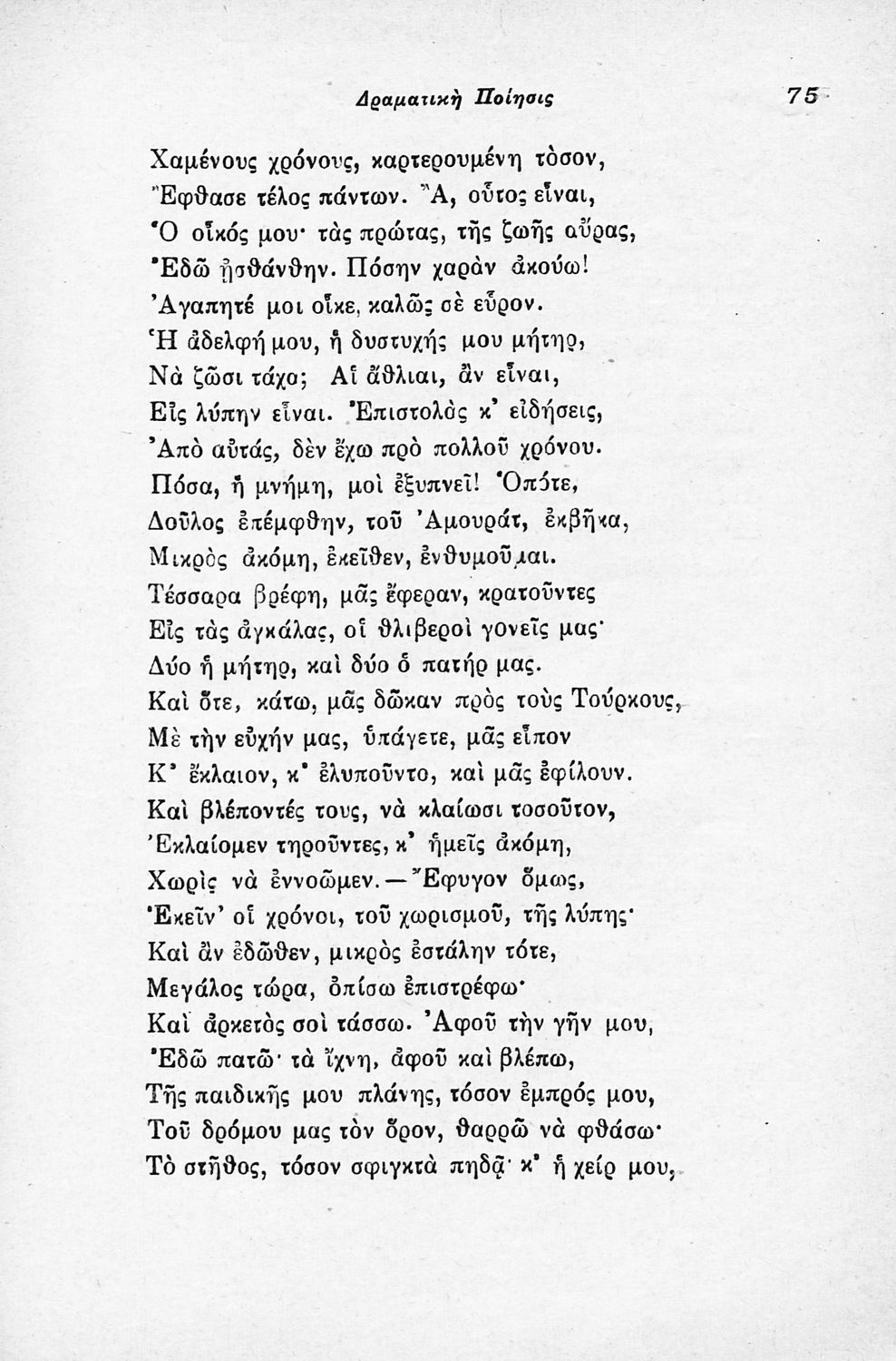 Σχολικό εγχειρίδιο Νέων Ελληνικών για τις τρεις τάξεις των Διδασκαλείων και Γ΄, Δ΄ Γυμνασίου. Ανθολόγιο νεοελληνικής ποίησης με αποσπάσματα από επικά, λυρικά και δραματικά ποιήματα. Περιέχει παράρτημα δυσνόητων λέξεων και βιογραφίες των ποιητών. Η θεματολογία είναι γύρω από την οικογενειακή ζωή και τα ιστορικά γεγονότα της χώρας.