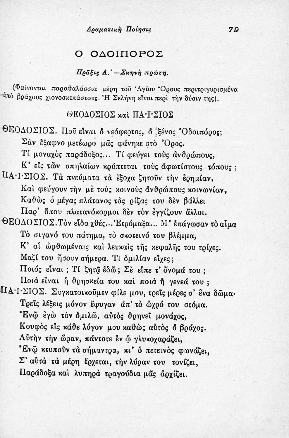 Σχολικό εγχειρίδιο Νέων Ελληνικών για τους μαθητές των Διδασκαλείων. Περιλαμβάνει ποιήματα Ελλήνων λογοτεχνών. Στο τέλος του βιβλίου υπάρχουν βιογραφίες των ποιητών.