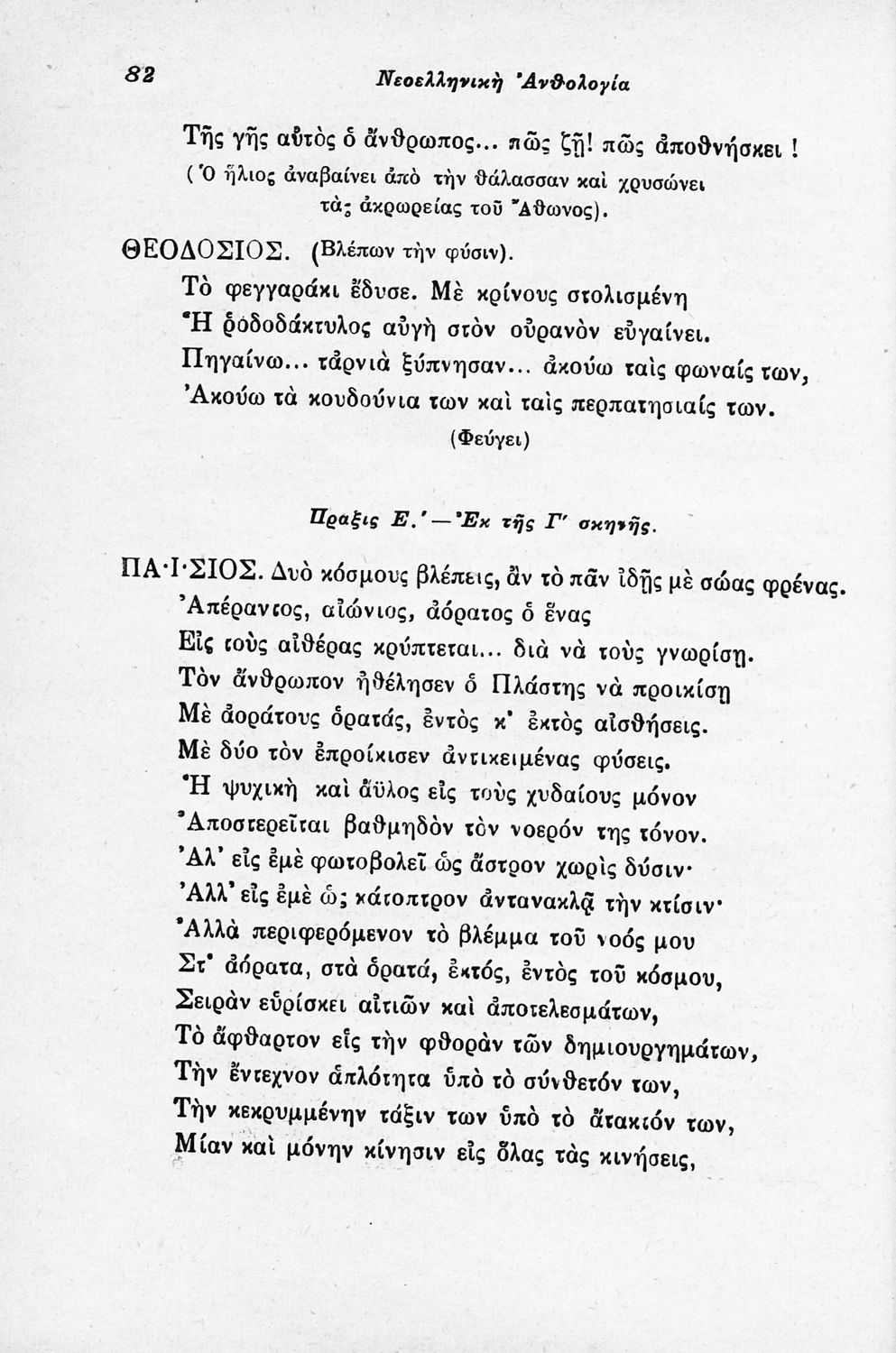 Νεοελληνική Ανθολογία επική ποίησις-δραματική ποίησις-λυρική ποίησις προς χρήσιν των τριών τάξεων των διδασκαλείων και ανάγνωσιν κατ΄ οίκον υπό των μαθητών της Γ΄ και Δ΄ τάξεων των Γυμνασίων