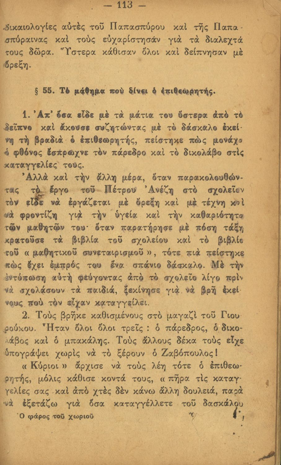 Ο Φάρος του χωριού, Αναγνωστικό Δ΄ Δημοτικού