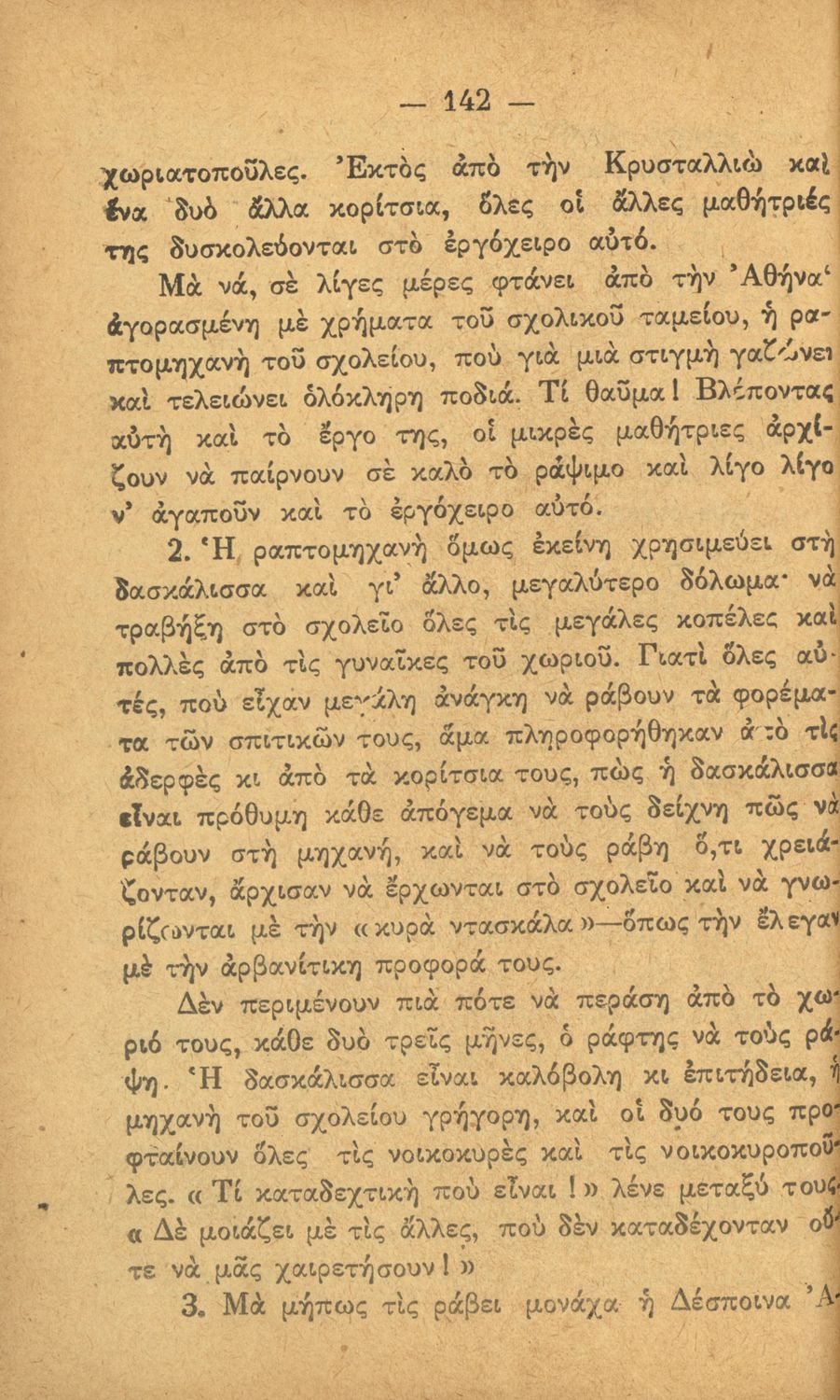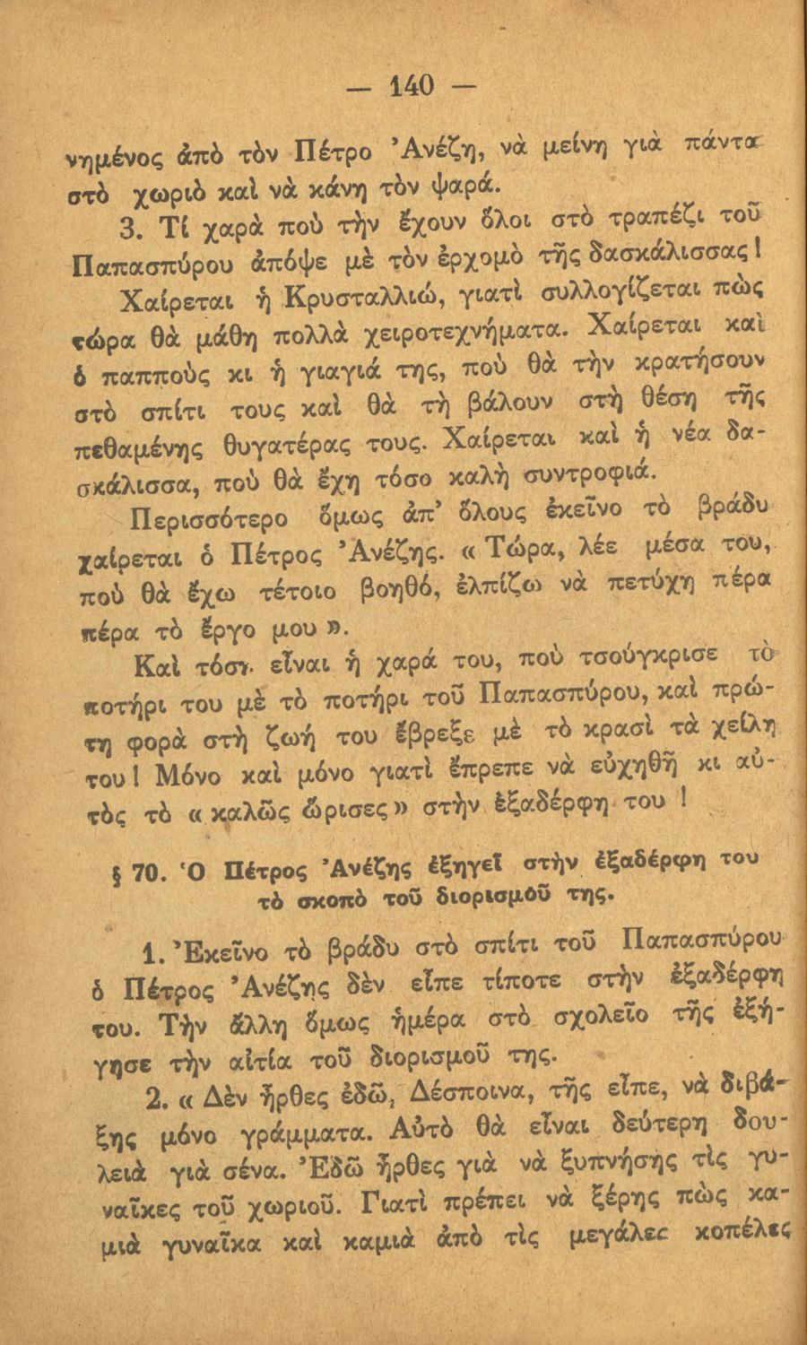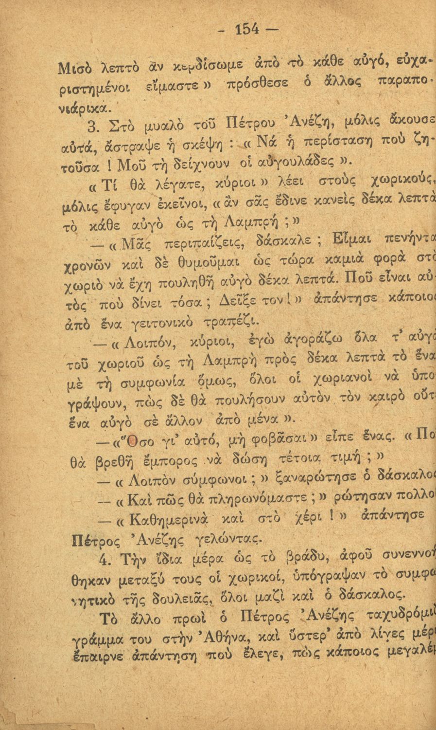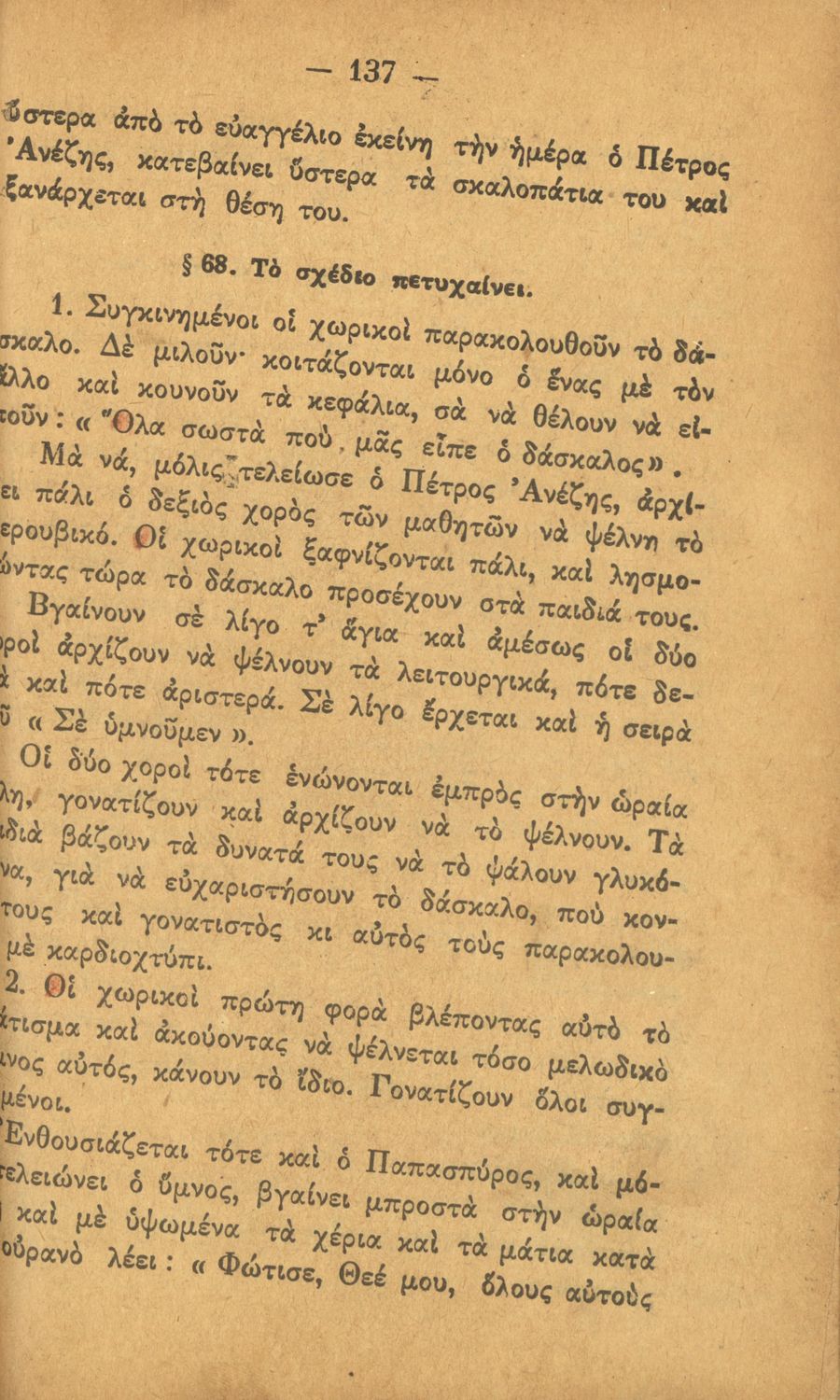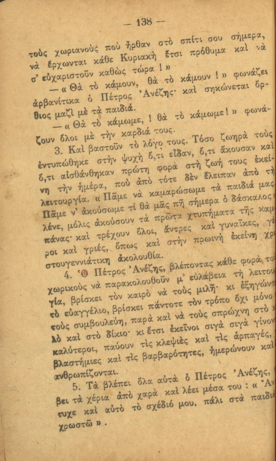 Αναγνωστικό Δ΄ Δημοτικού που περιέχει πεζά και ποιήματα με περιεχόμενο διδακτικό και ηθικοπλαστικό εμπνευσμένα από την ελληνική ιστορία και μυθολογία, και την αγροτική και κοινωνική ζωή.