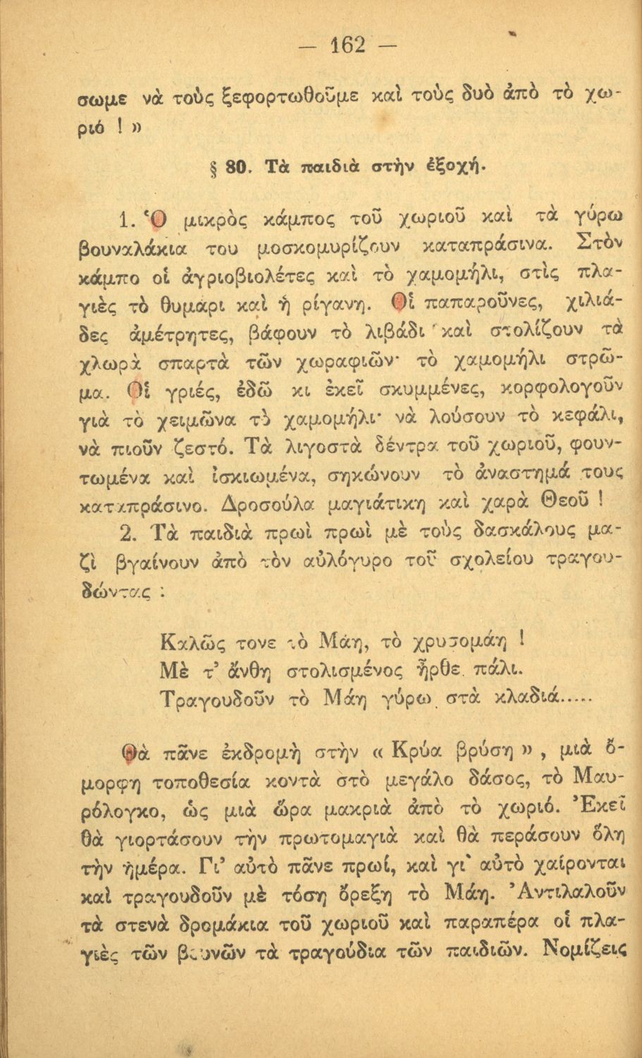 Αναγνωστικό για την Δ΄ τάξη του Δημοτικού. Περιλαμβάνει ένα κείμενο στο οποίο παρεμβάλλονται ποιήματα δημοτικά και Ελλήνων ποιητών.
