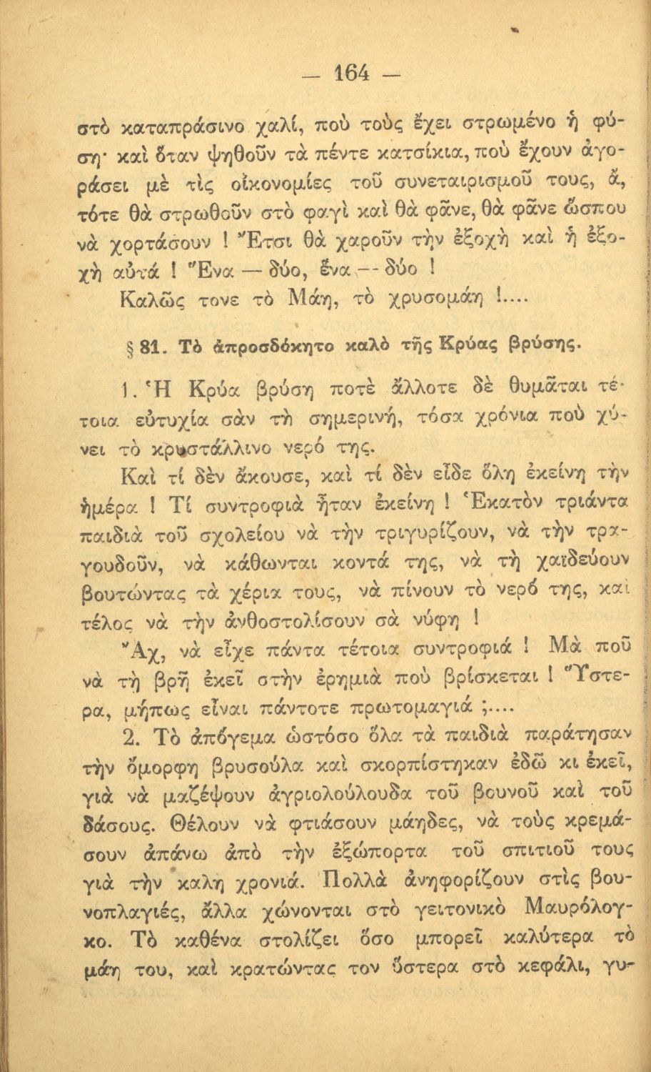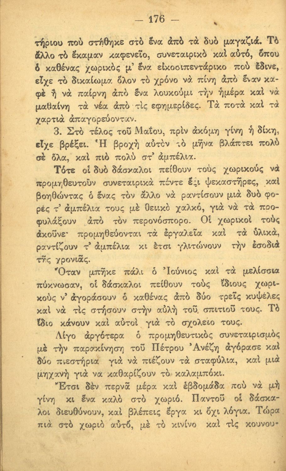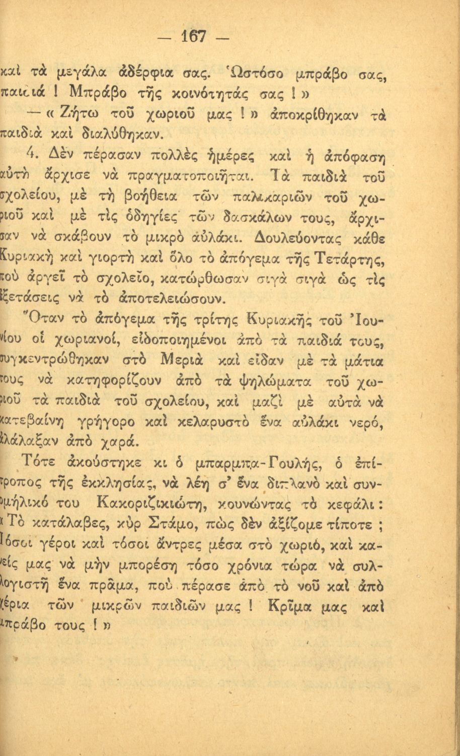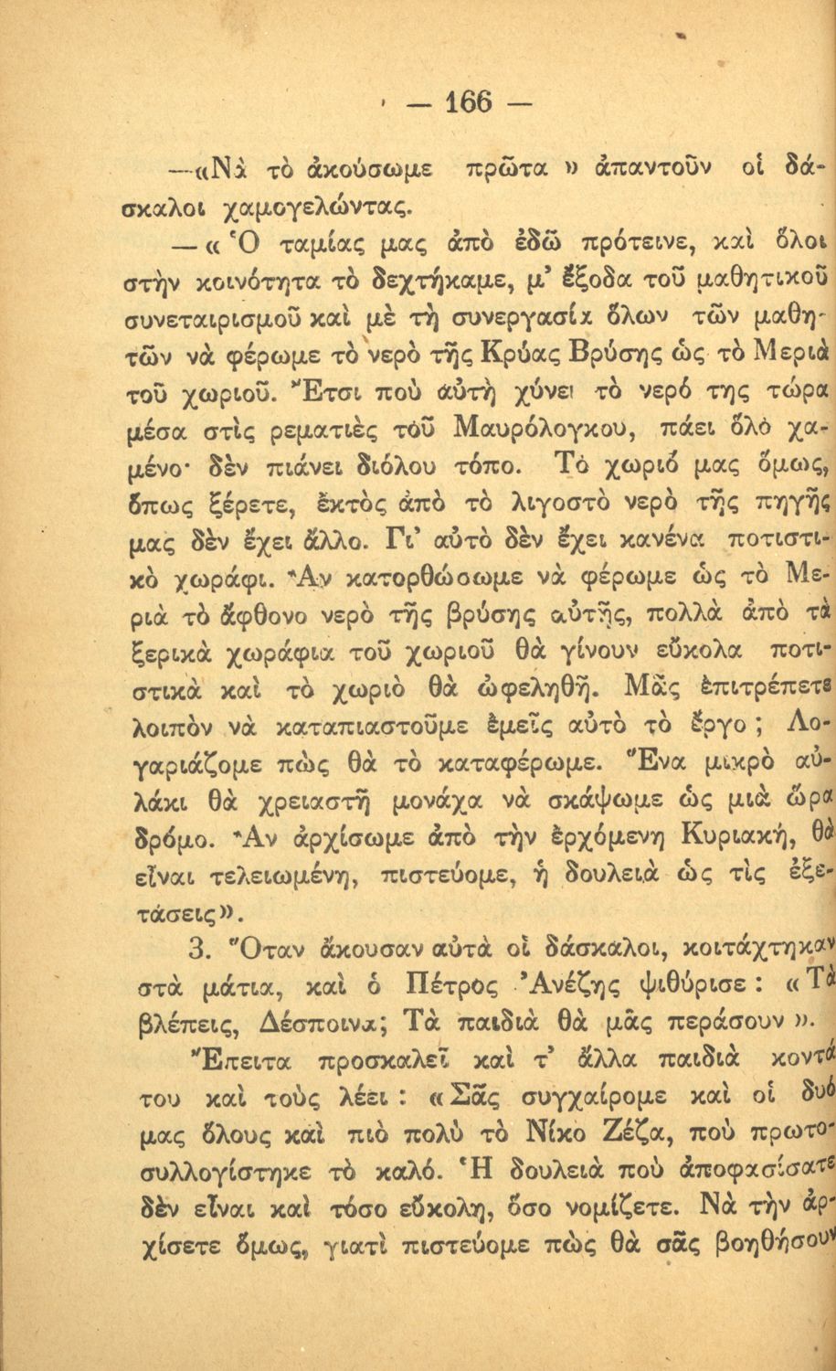Αναγνωστικό Δ΄ Δημοτικού που περιέχει πεζά και ποιήματα με περιεχόμενο διδακτικό και ηθικοπλαστικό εμπνευσμένα από την ελληνική ιστορία και μυθολογία, και την αγροτική και κοινωνική ζωή.