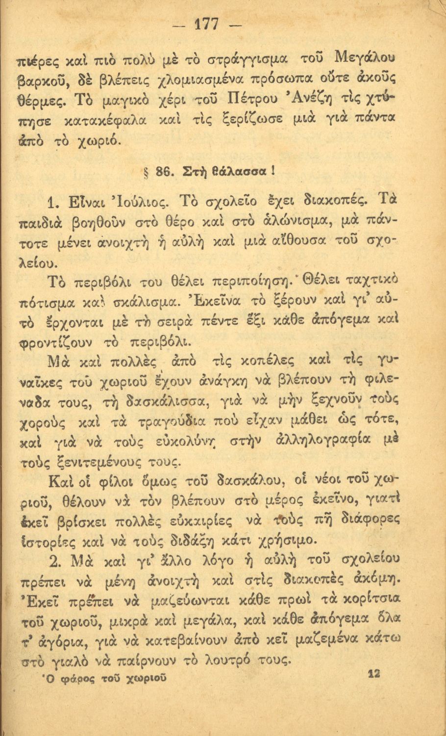 Ο Φάρος του χωριού, Αναγνωστικό Δ΄ Δημοτικού