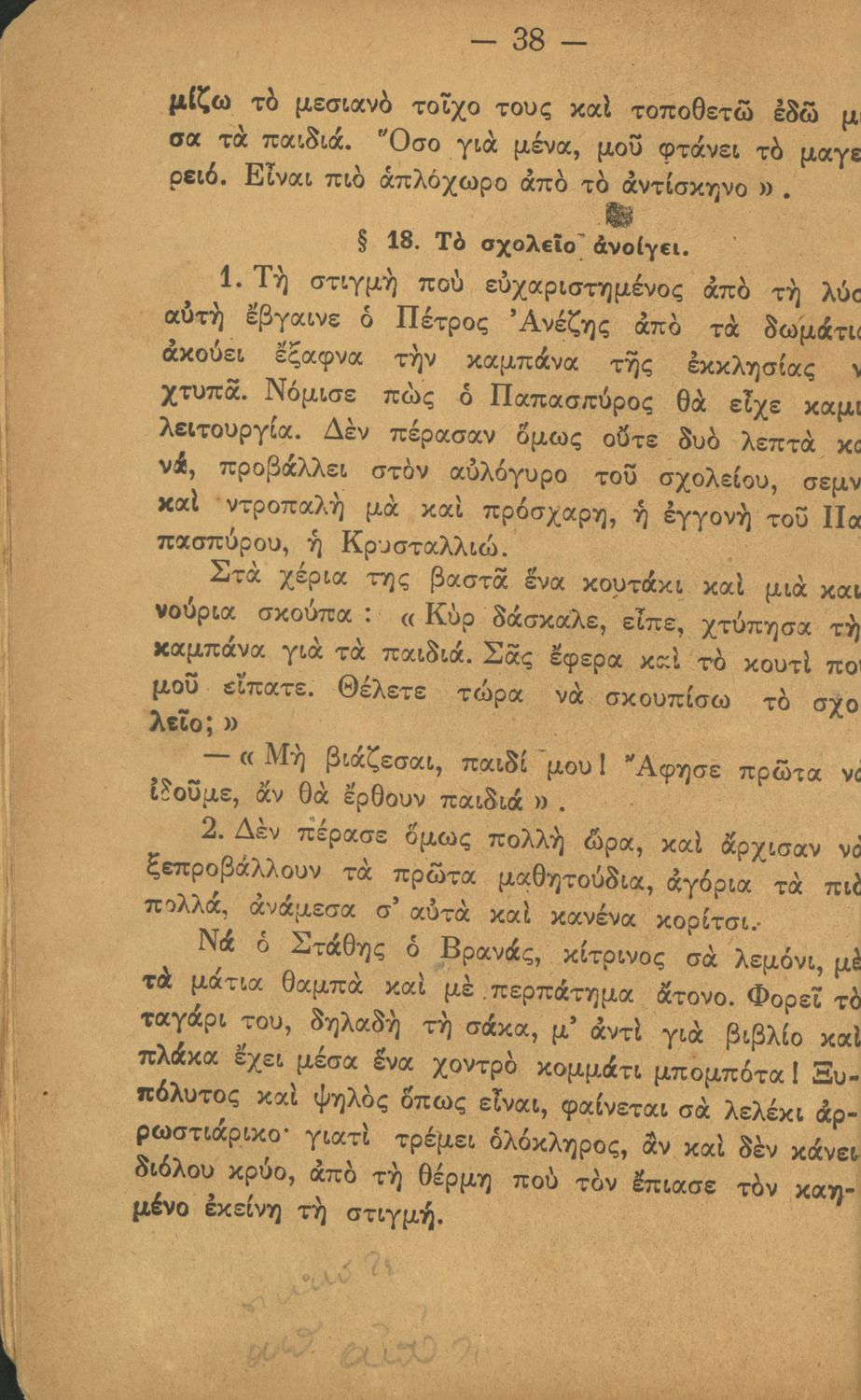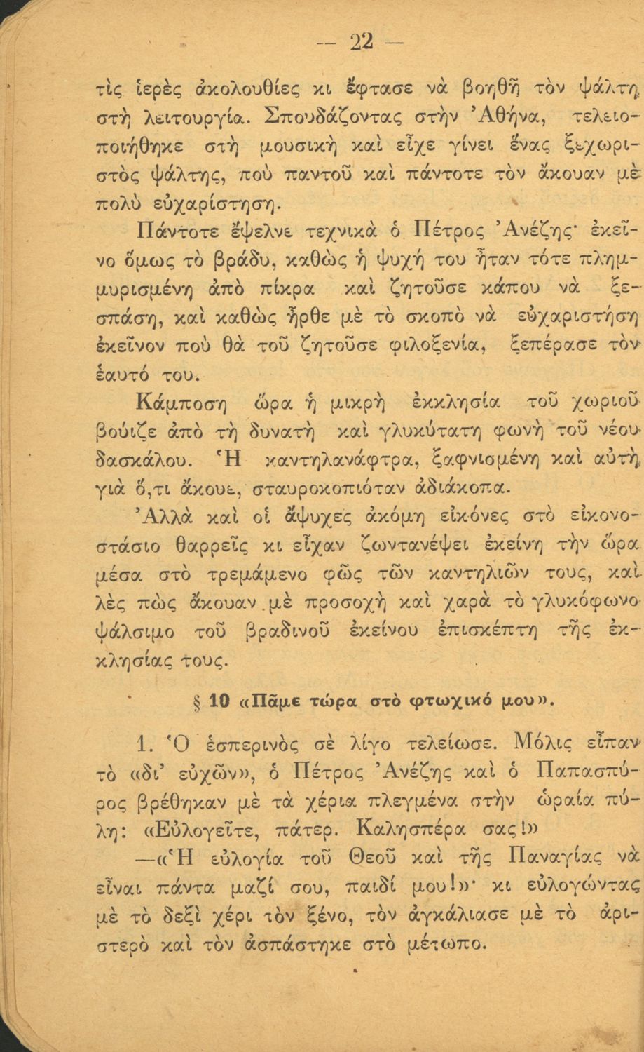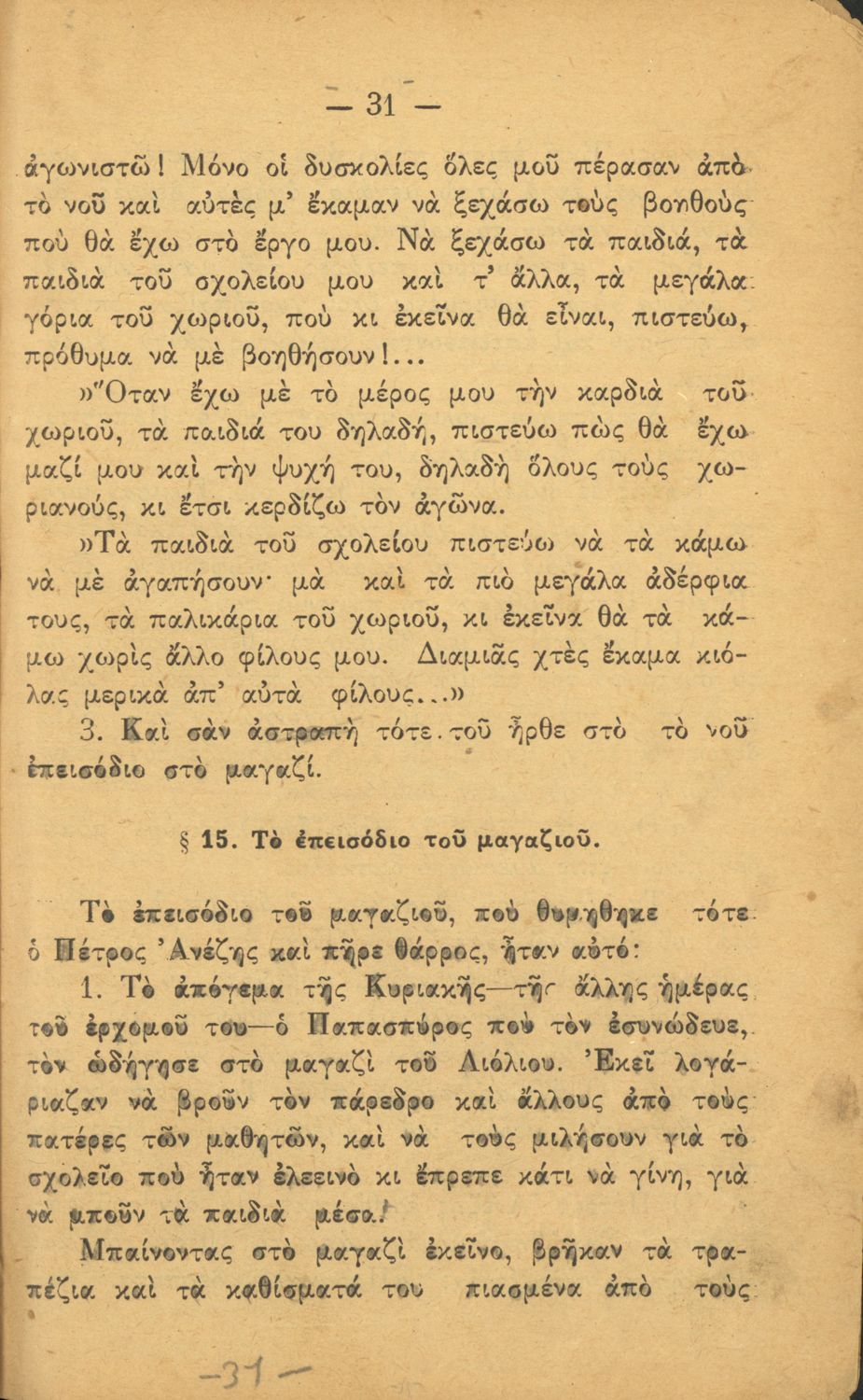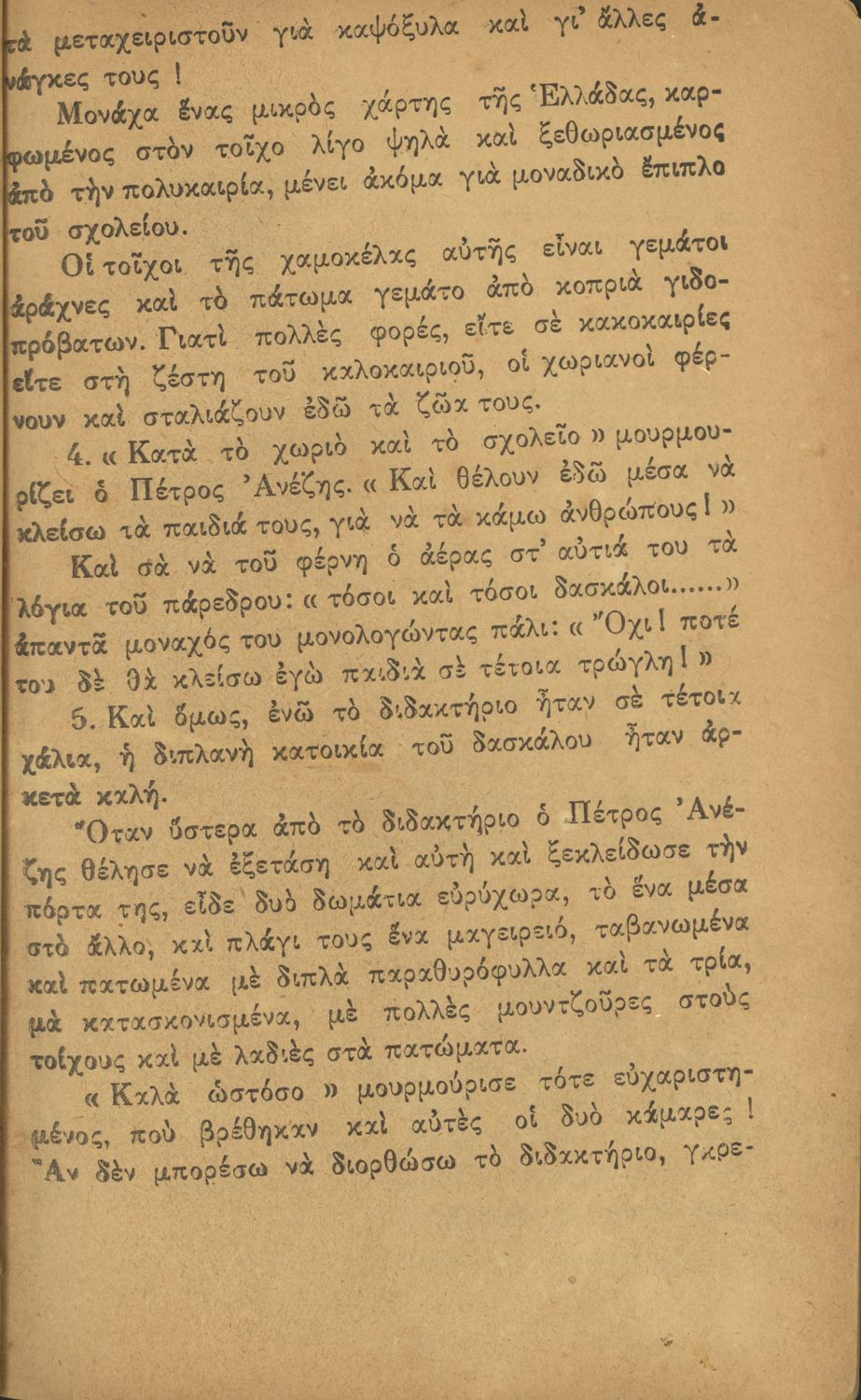 Αναγνωστικό Δ΄ Δημοτικού που περιέχει πεζά και ποιήματα με περιεχόμενο διδακτικό και ηθικοπλαστικό εμπνευσμένα από την ελληνική ιστορία και μυθολογία, και την αγροτική και κοινωνική ζωή.