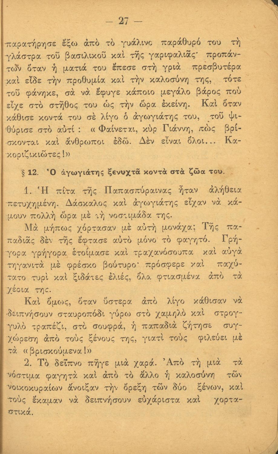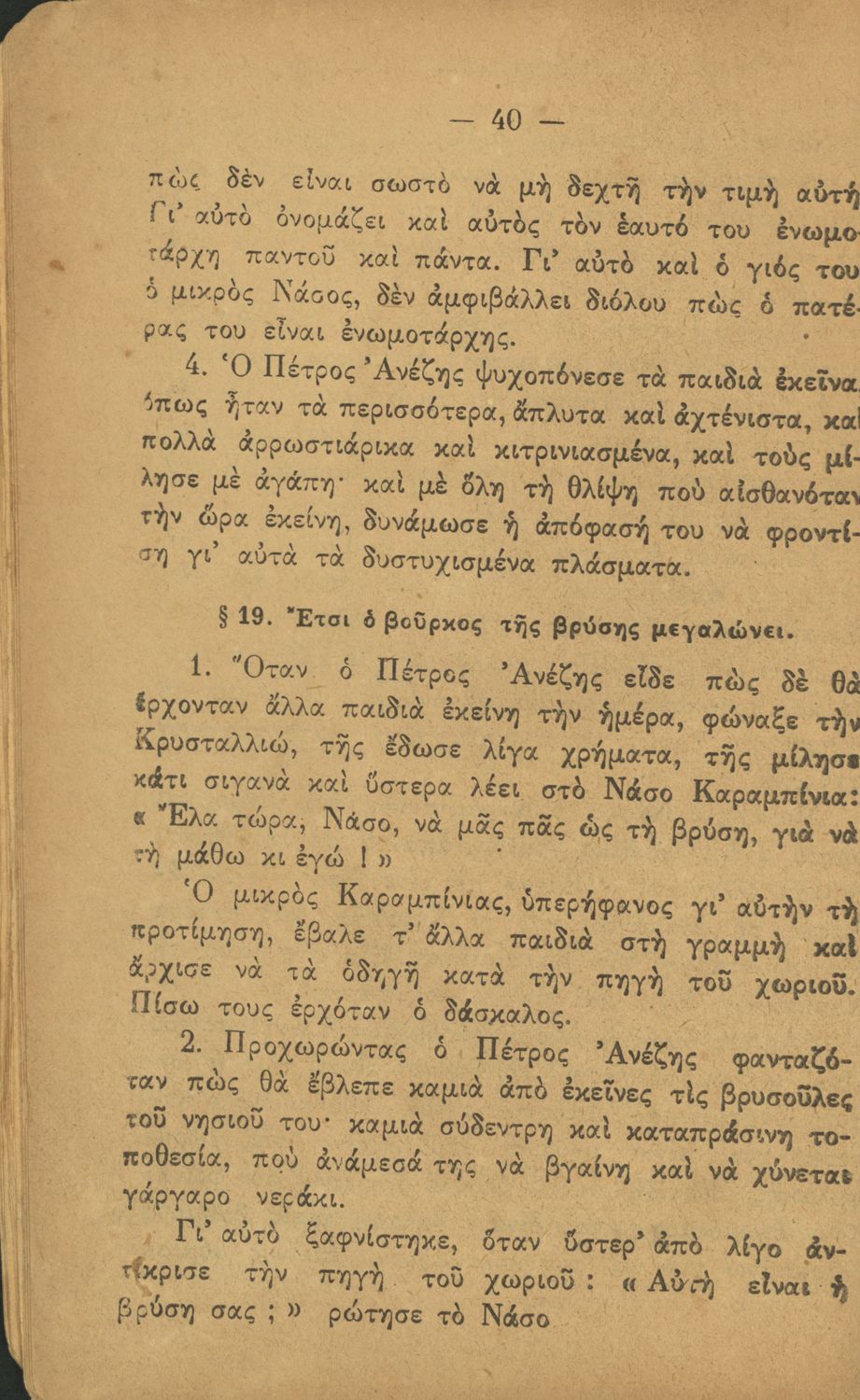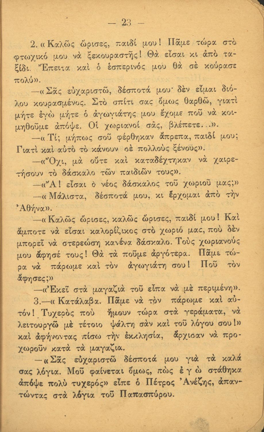 Αναγνωστικό Δ΄ Δημοτικού που περιέχει πεζά και ποιήματα με περιεχόμενο διδακτικό και ηθικοπλαστικό εμπνευσμένα από την ελληνική ιστορία και μυθολογία, και την αγροτική και κοινωνική ζωή.